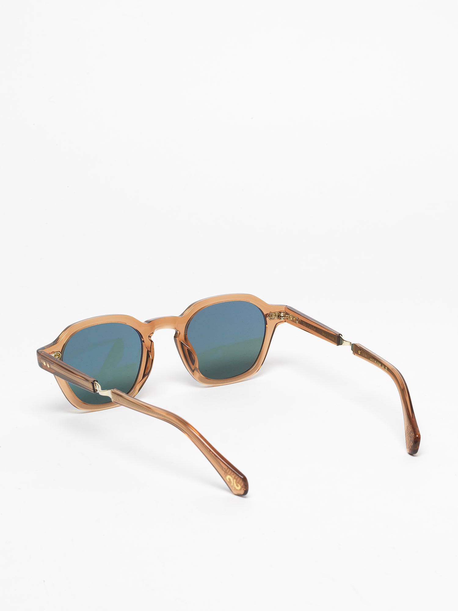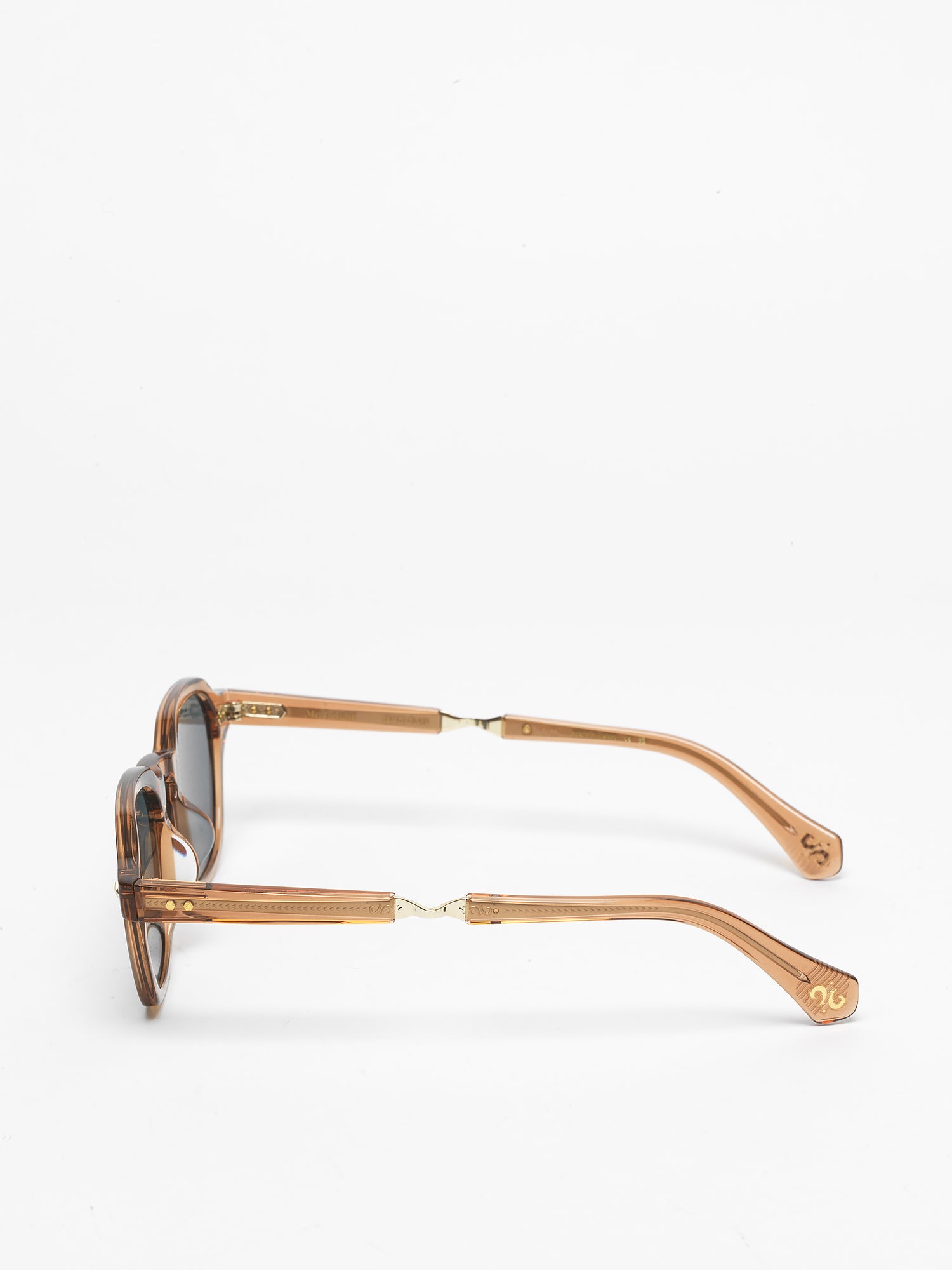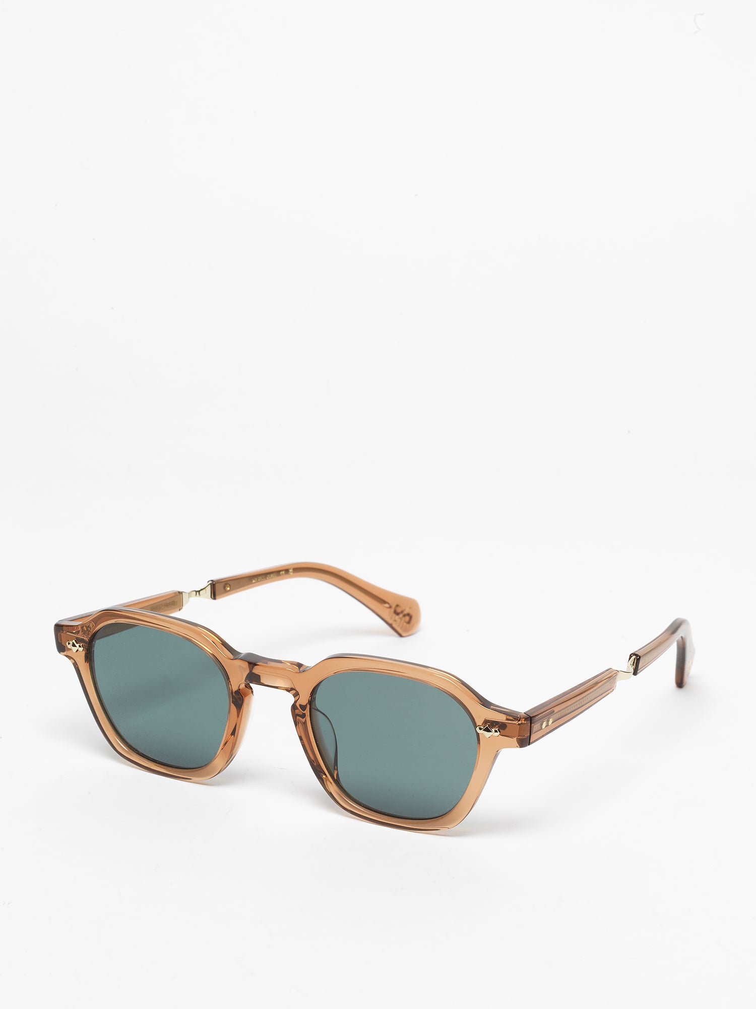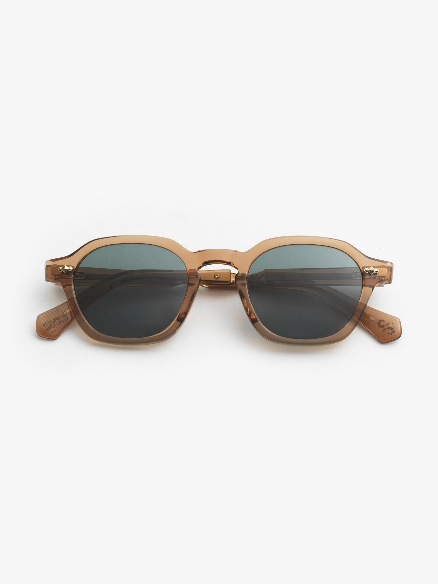 - custom hexagon riveted pins at temple