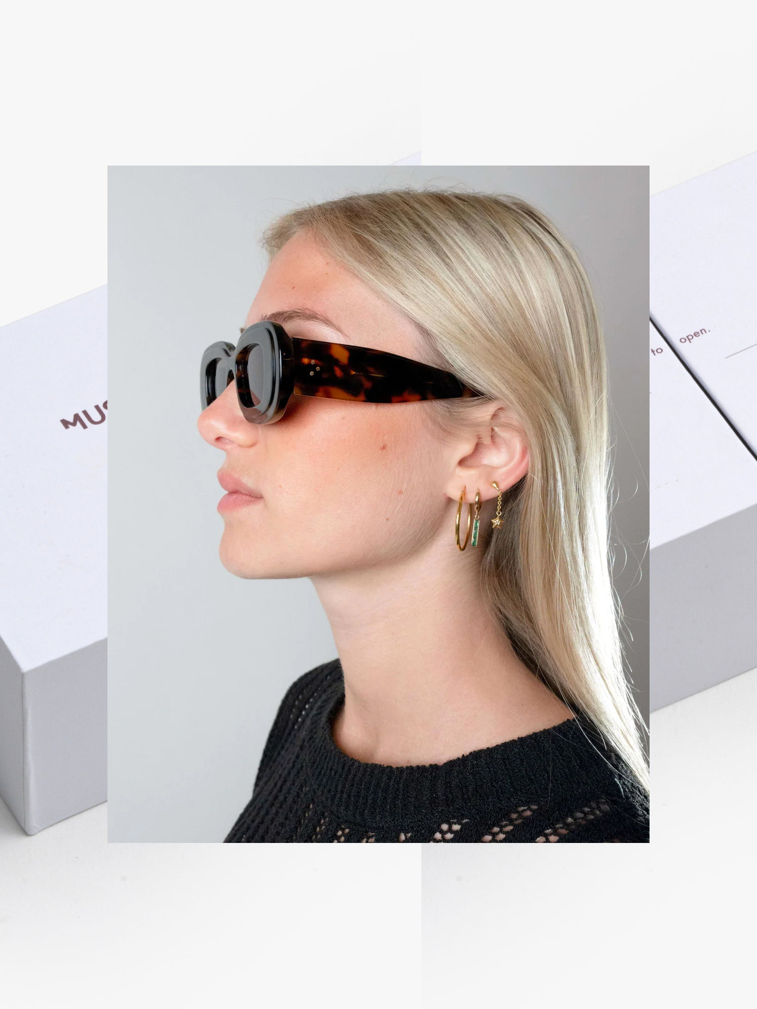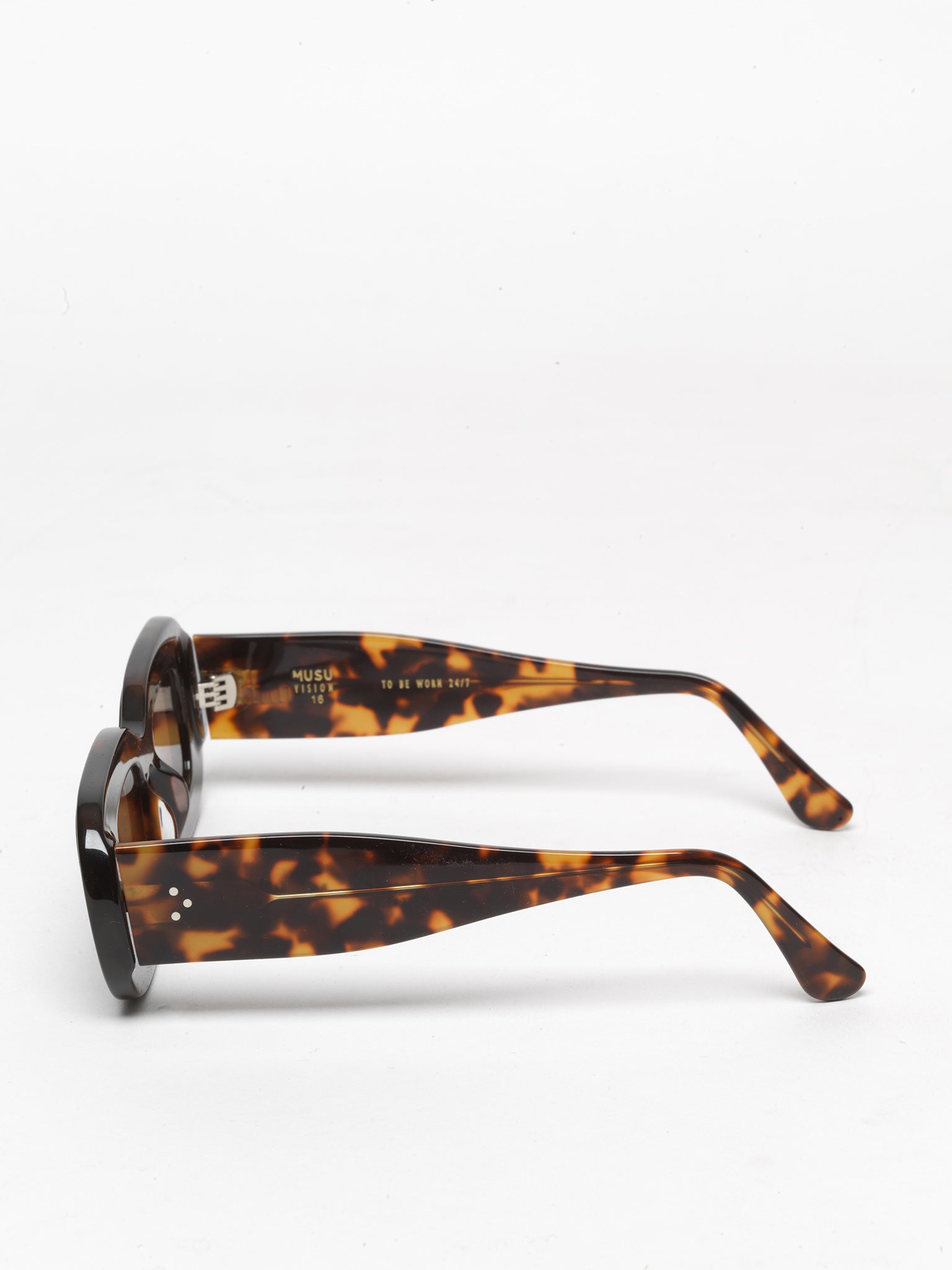 • includes the Musu eyewear packaging, made from 100% recycled cardboard, the storage case is made from recycled vegan leather (60% leather fibre - scrap and waste leather fibre mainly from the unwanted by-products of industrial glove manufacturers - 30% polymer - a natural binder from rubber trees -, and 10% coating - water-based polyurethane coating)