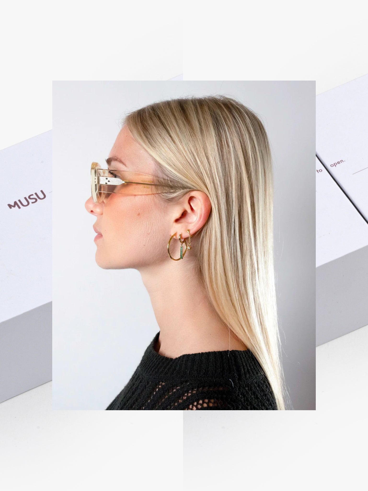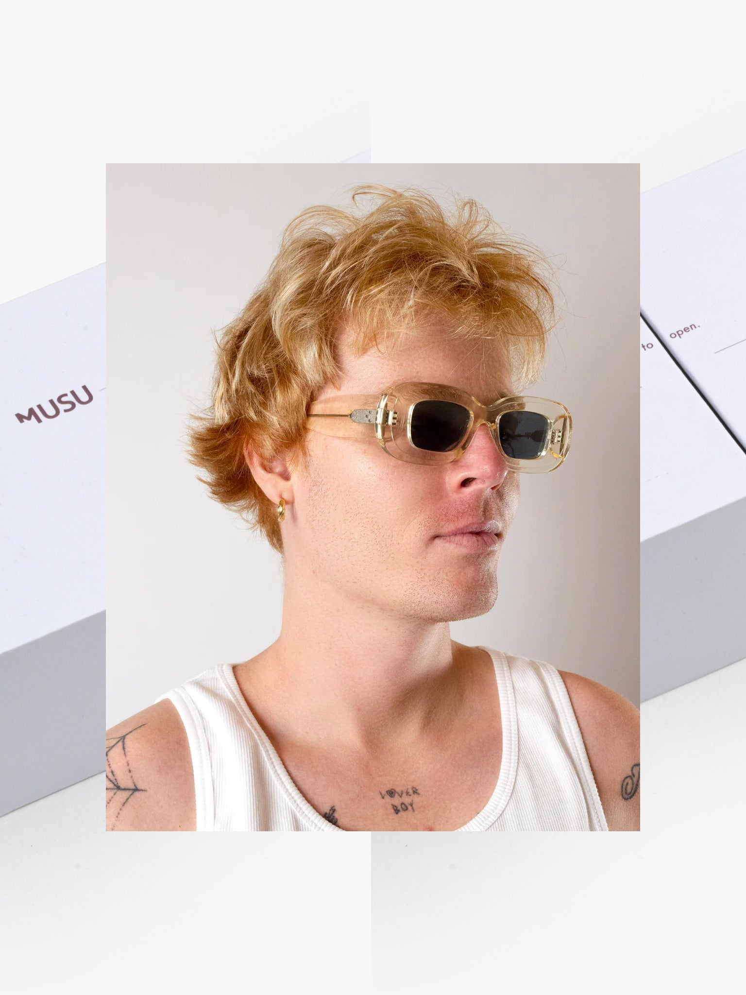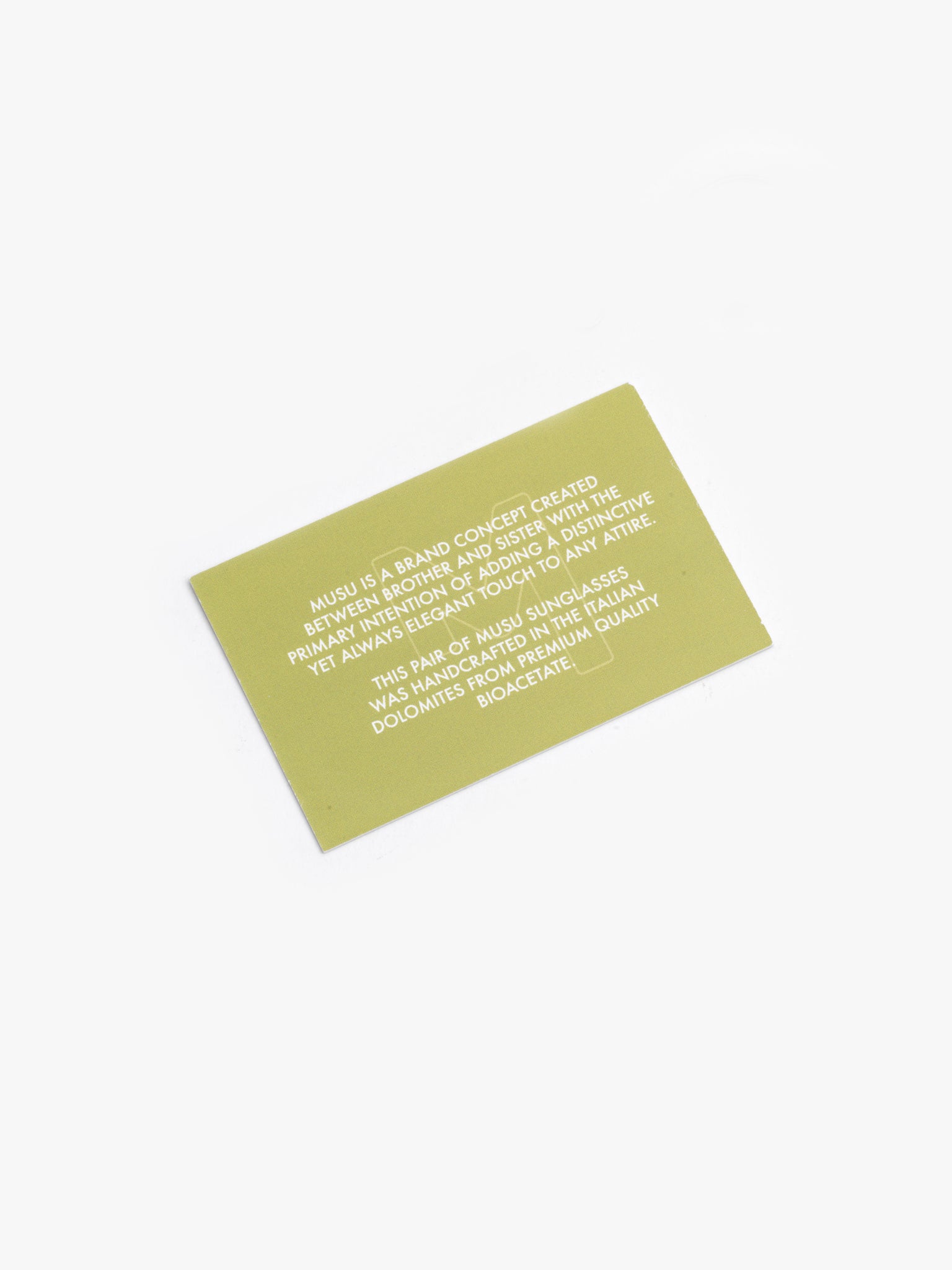 - includes the Musu eyewear packaging, made from 100% recycled cardboard, the storage case is made from recycled vegan leather (60% leather fibre - scrap and waste leather fibre mainly from the unwanted by-products of industrial glove manufacturers - 30% polymer - a natural binder from rubber trees -, and 10% coating - water-based polyurethane coating)