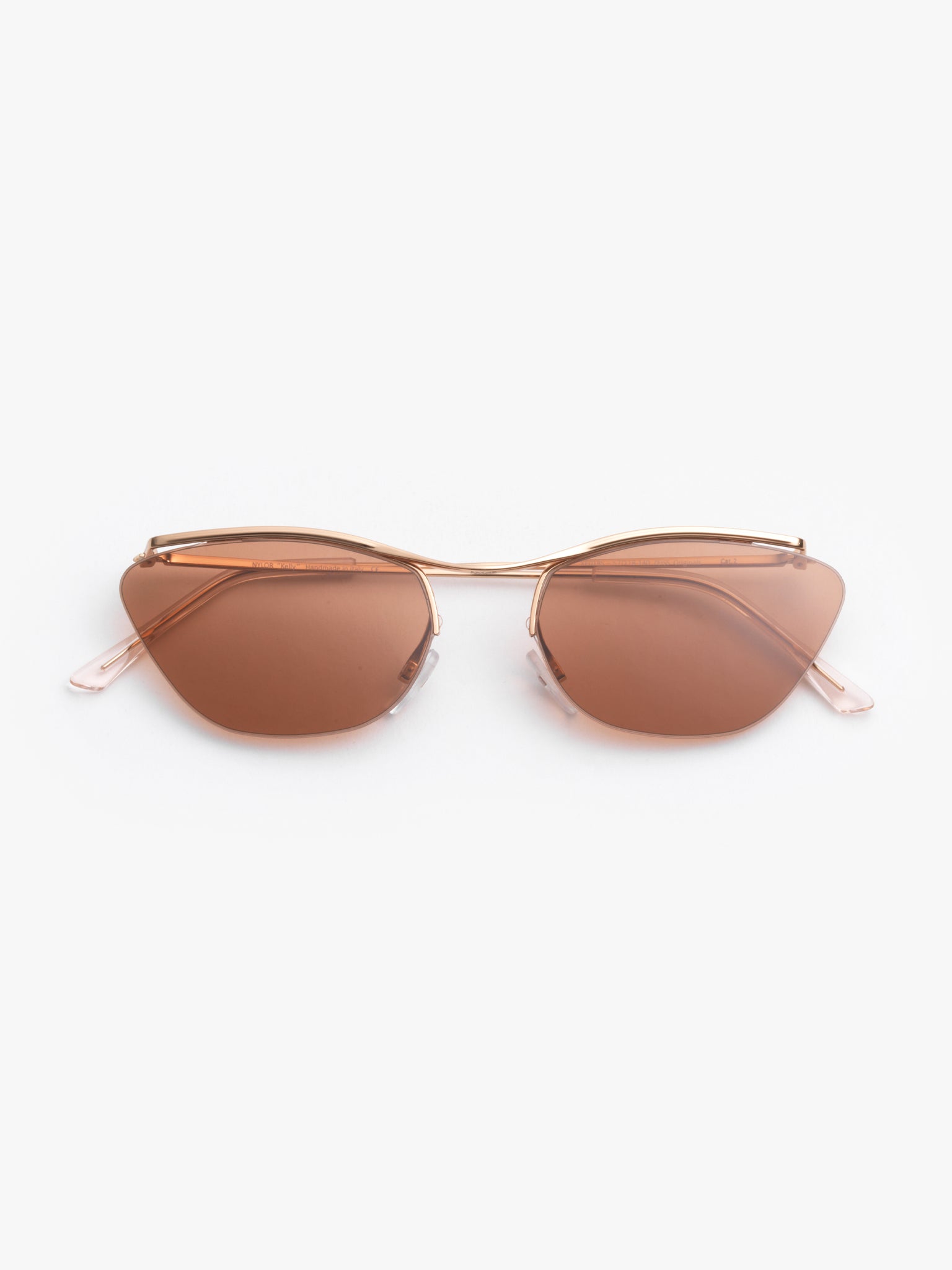 Favourite shape of Grace Kelly, emblematic frame of the 50s, the "cat-eye" fires the imagination from the glamorous pin-up to the Hollywood actress. This vintage model plays the feminine card with subtle variations of gold.