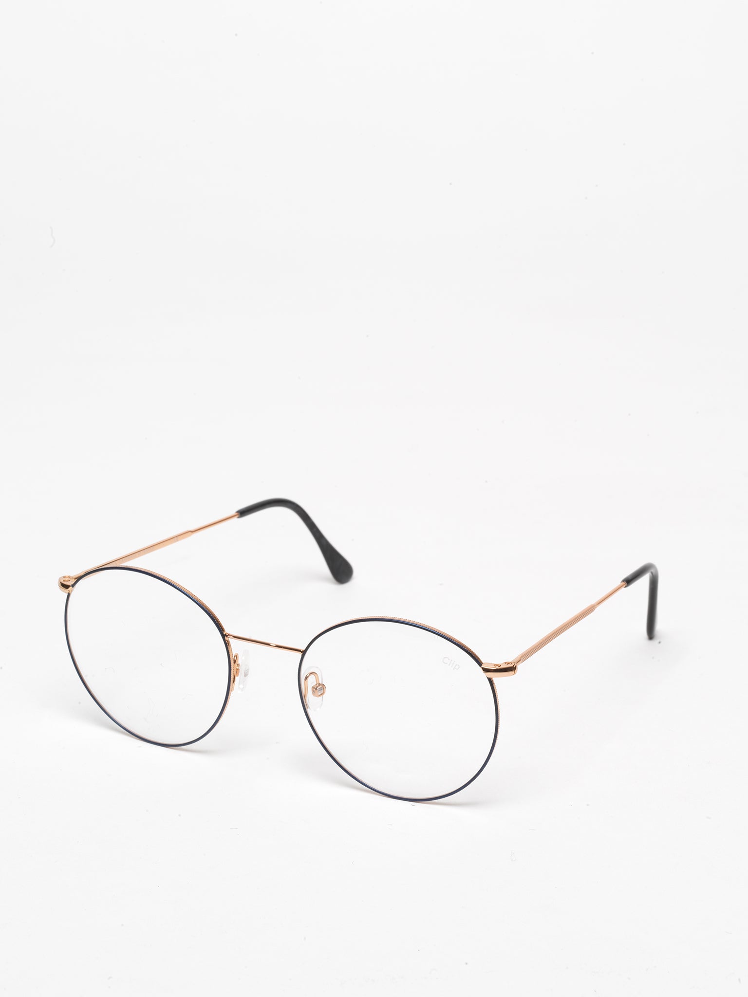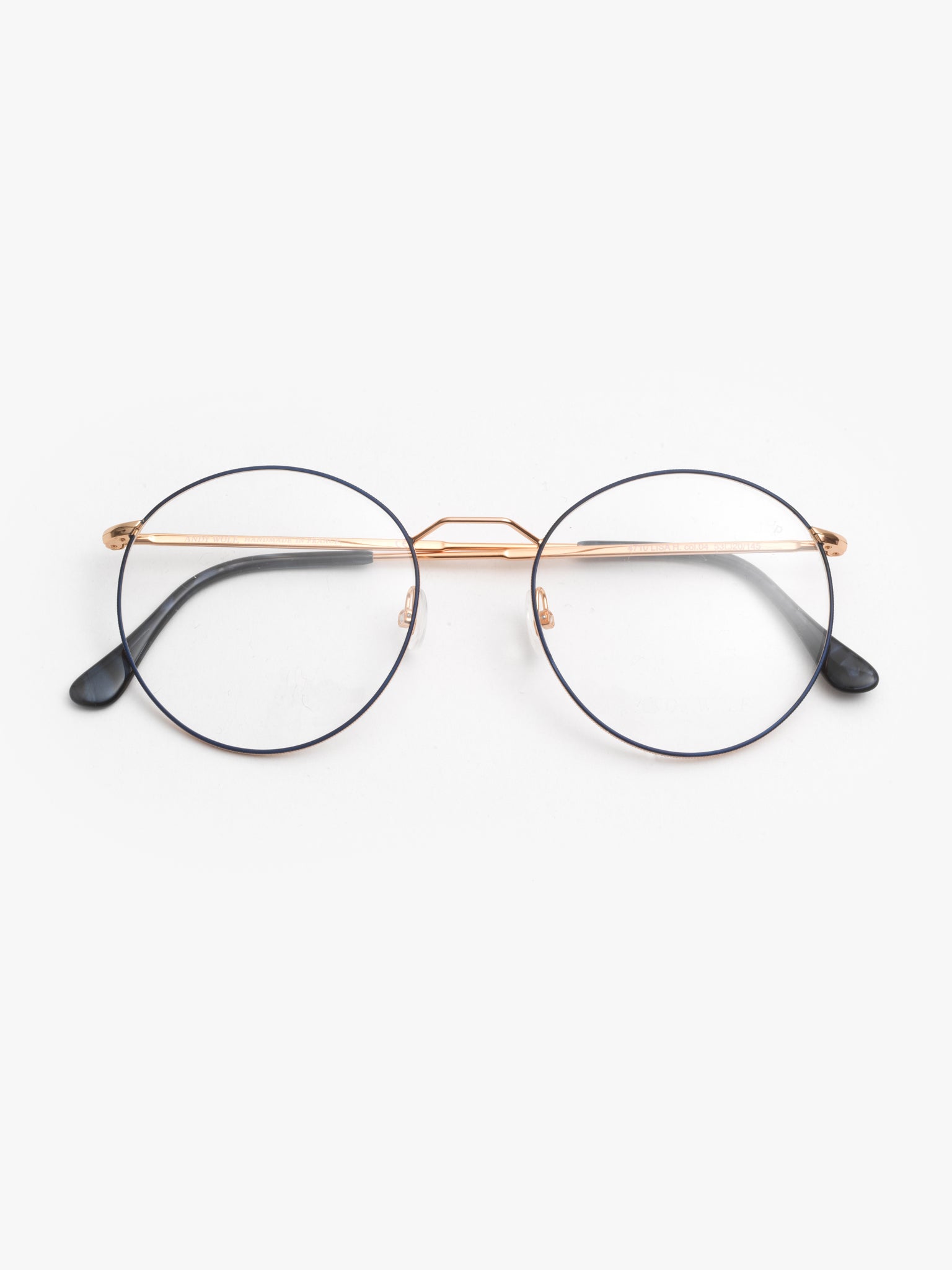 - shiny rose gold metal frame with blue enamel coating