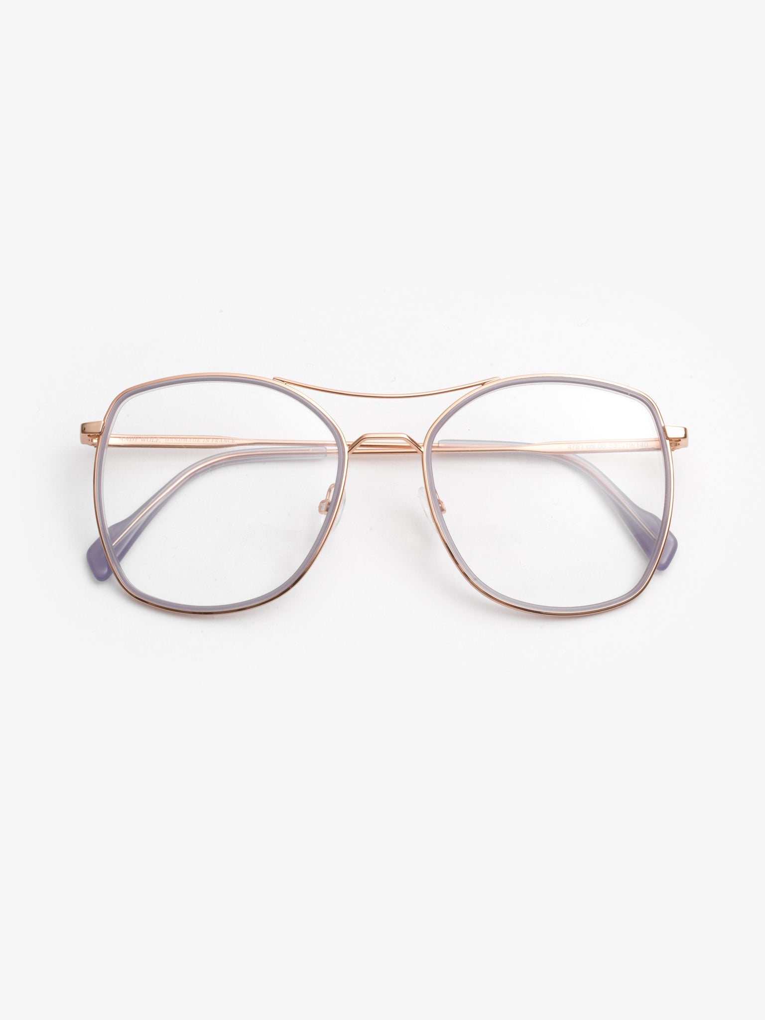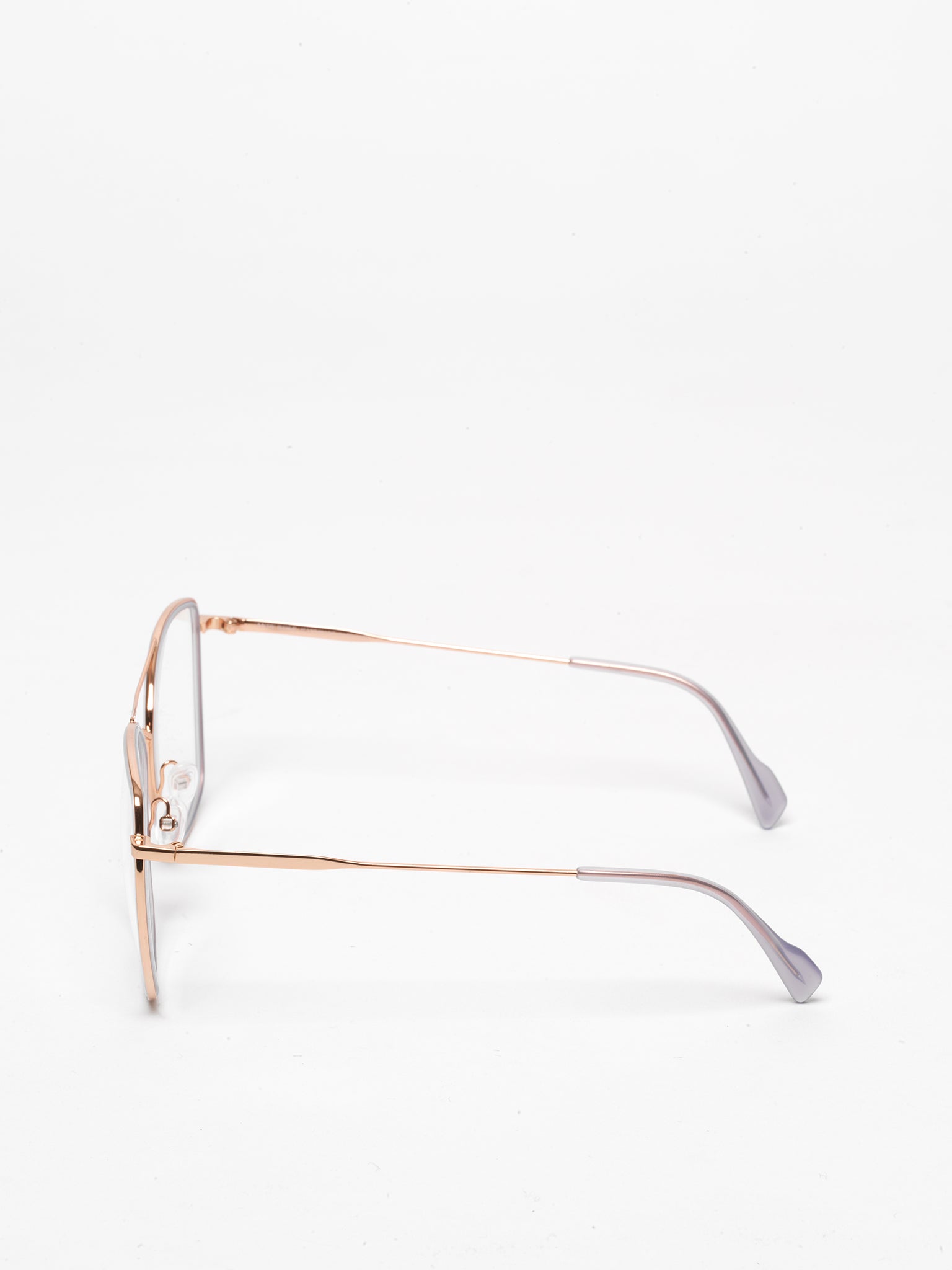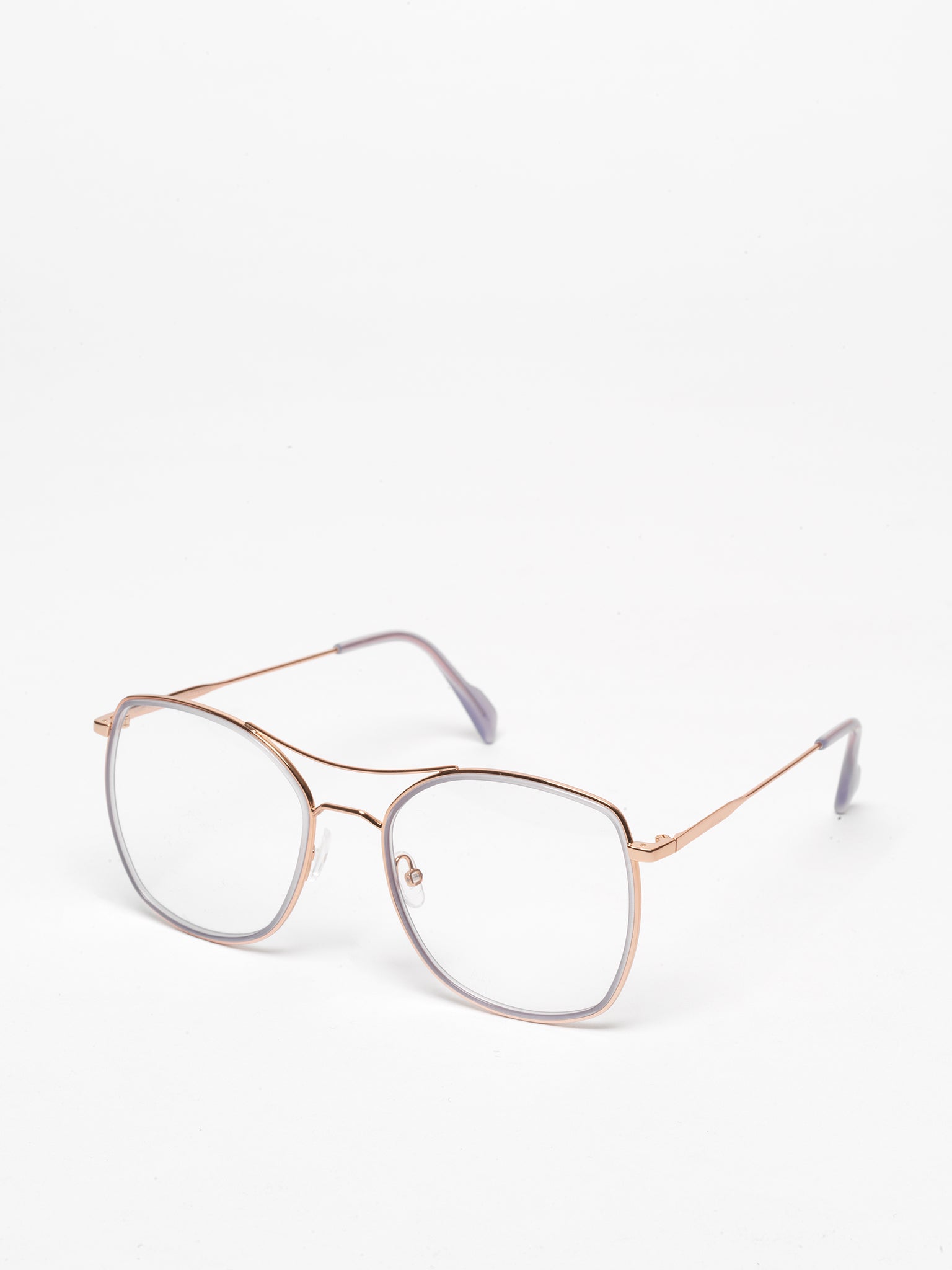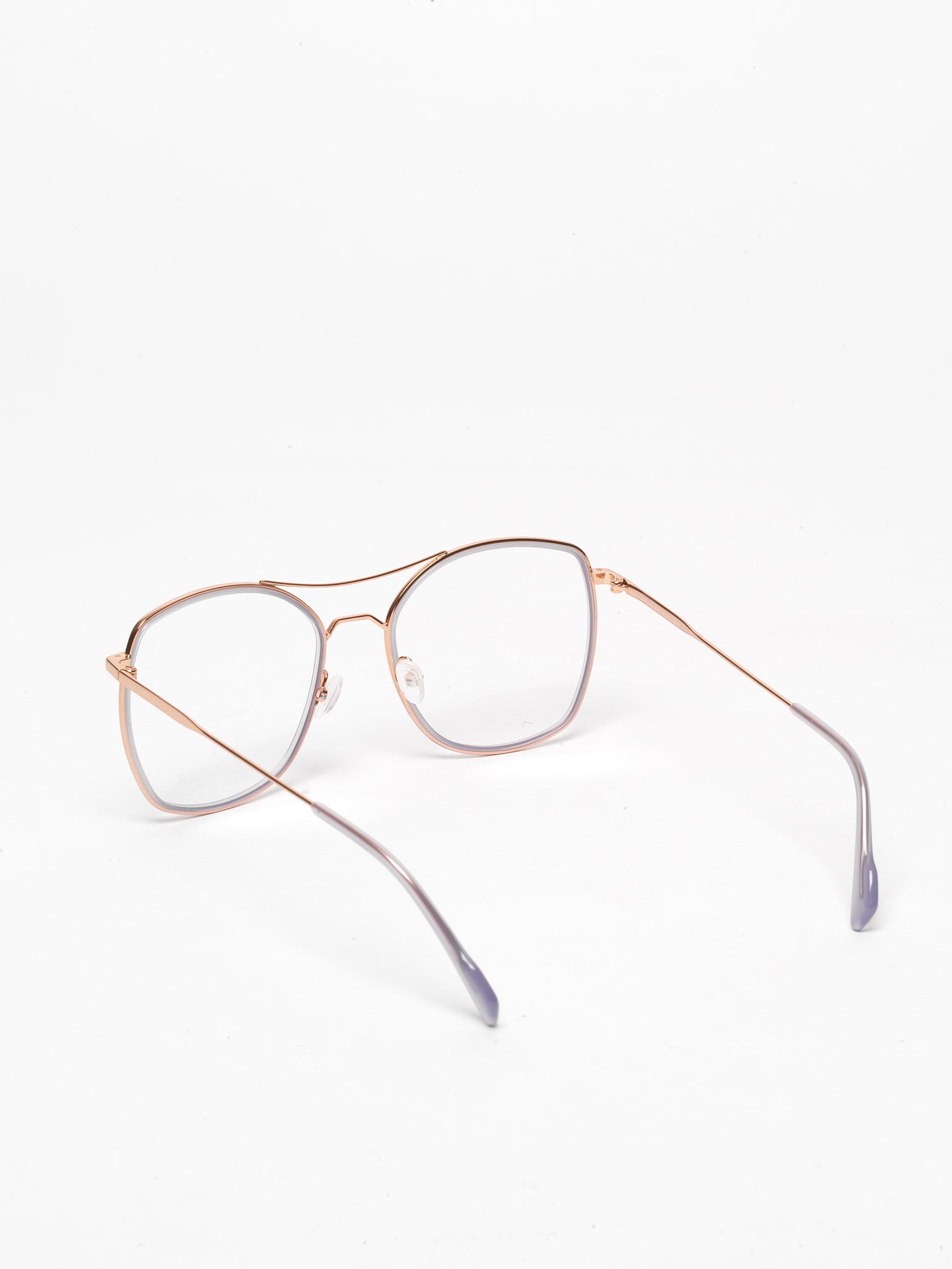 - rose gold metal with delicate purple acetate insert
