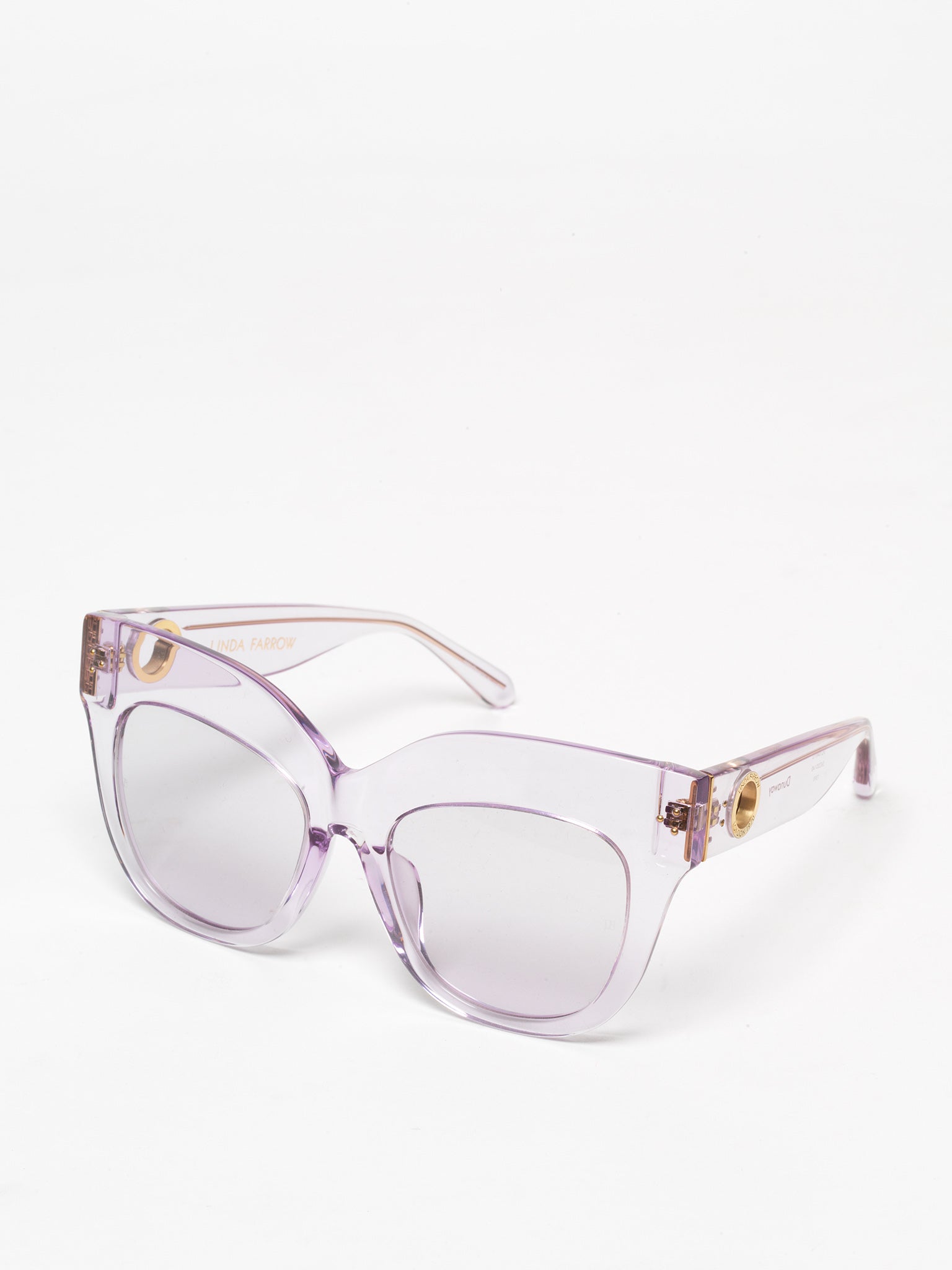 The oversized sunglasses bear the Linda Farrow signature gold plated titanium eyelet inset into the temple to celebrate the founding of the brand in 'LONDON 1970'. Sunset light lilac lenses offer anti-glare and 100% UV protection.