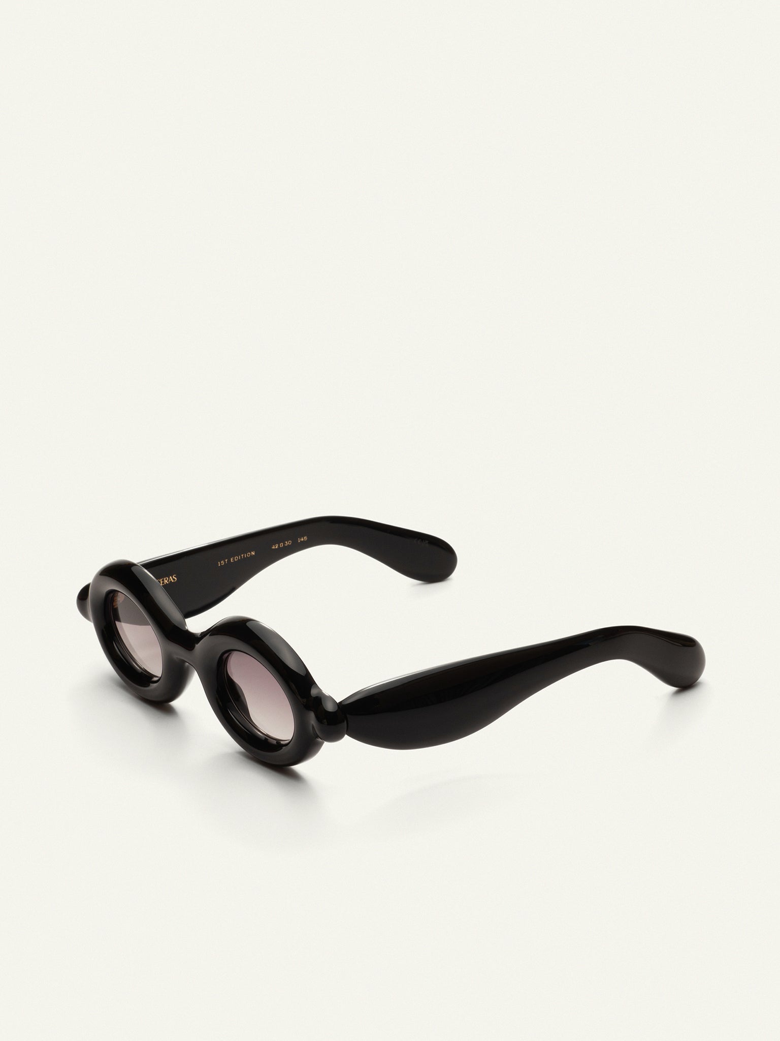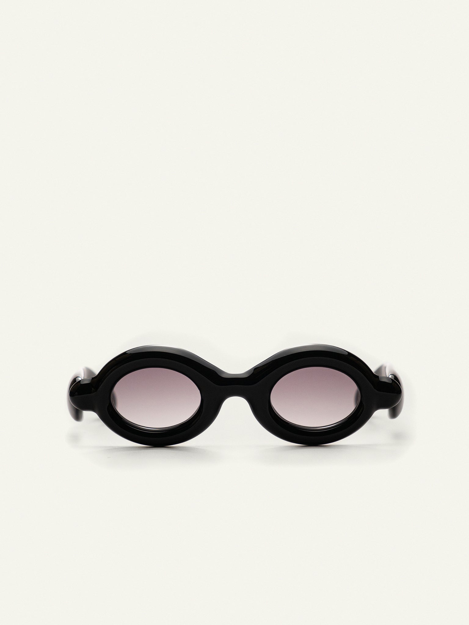 Exaggerated, inflated volumes with signature embellishment, including gold-plated wirecore, a 5-joint hinge system, and gold-tone engraving. A sculptural marvel for your face.
