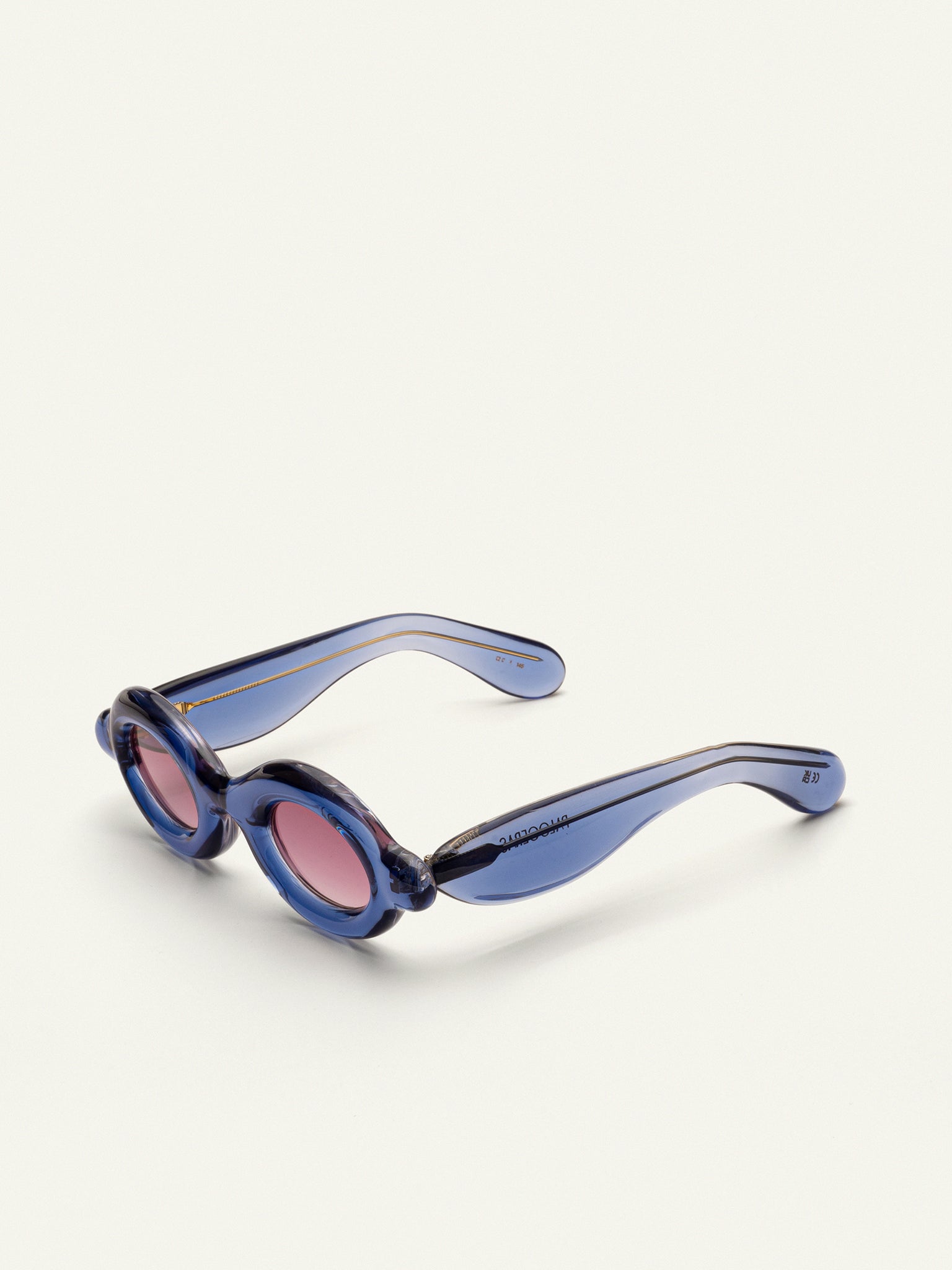 Exaggerated, inflated volumes with signature embellishment, including gold-plated wirecore, a 5-joint hinge system, and gold-tone engraving. A sculptural marvel for your face.