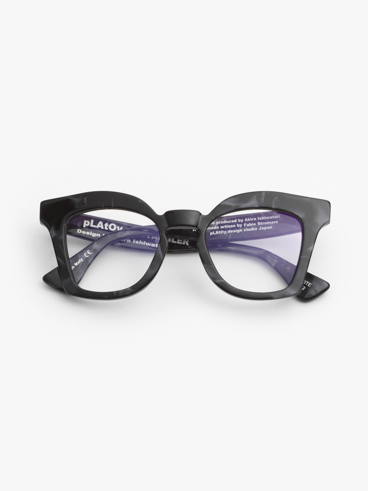 Iconic and distinctive cat-eye silhouette, featuring a rich and precious hue of marble black acetate.