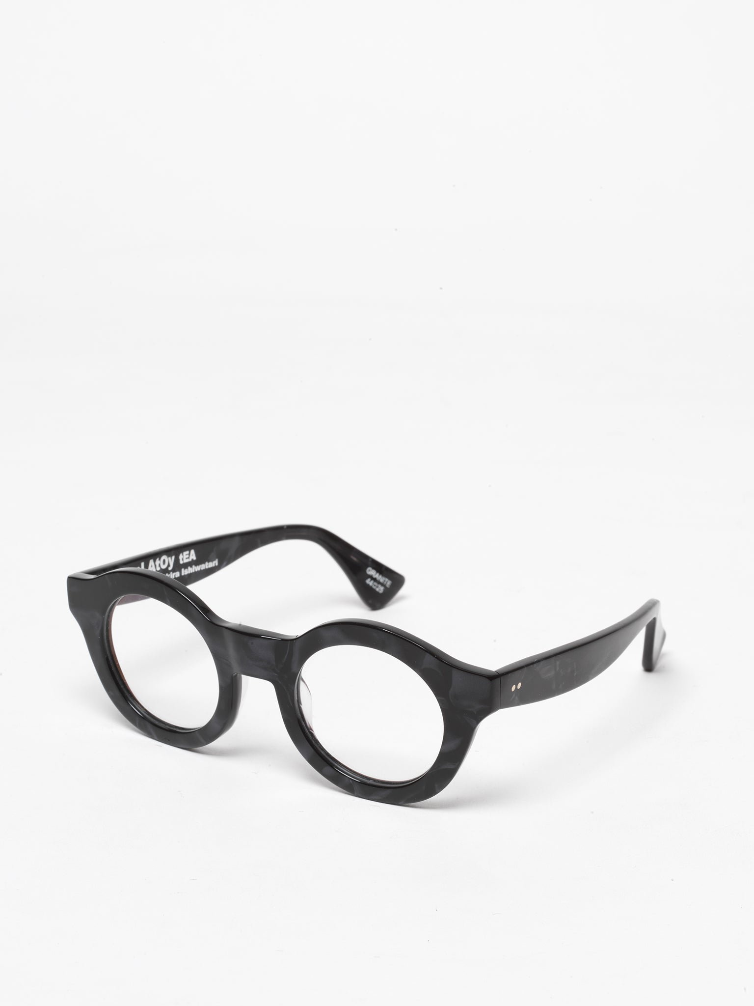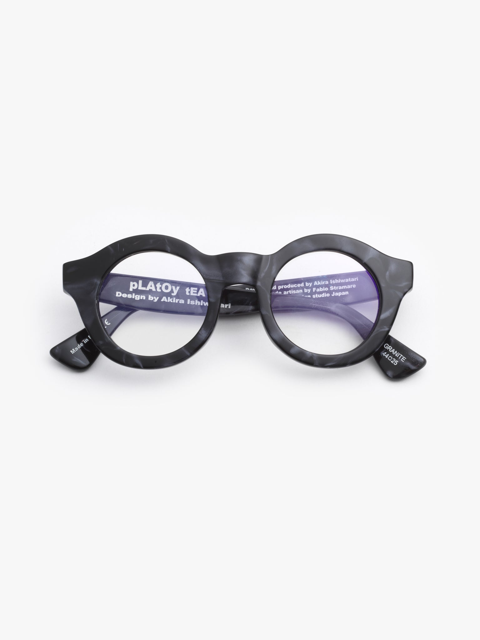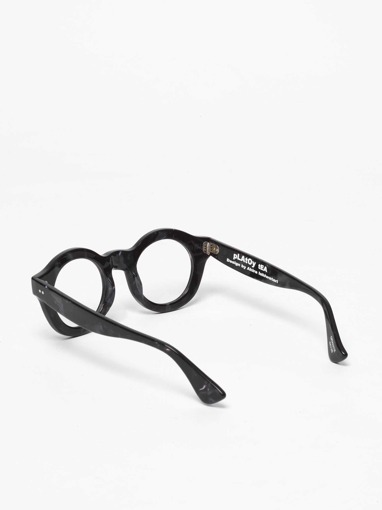 Iconic and distinctive round silhouette, featuring a rich and precious hue of marble black acetate.