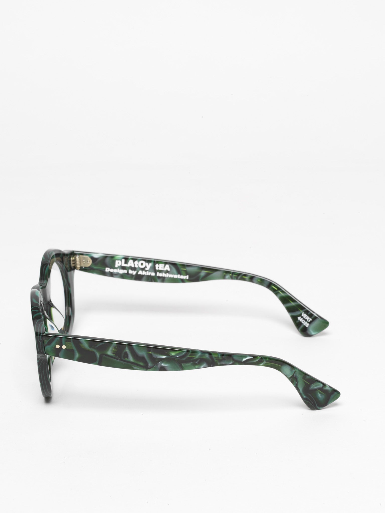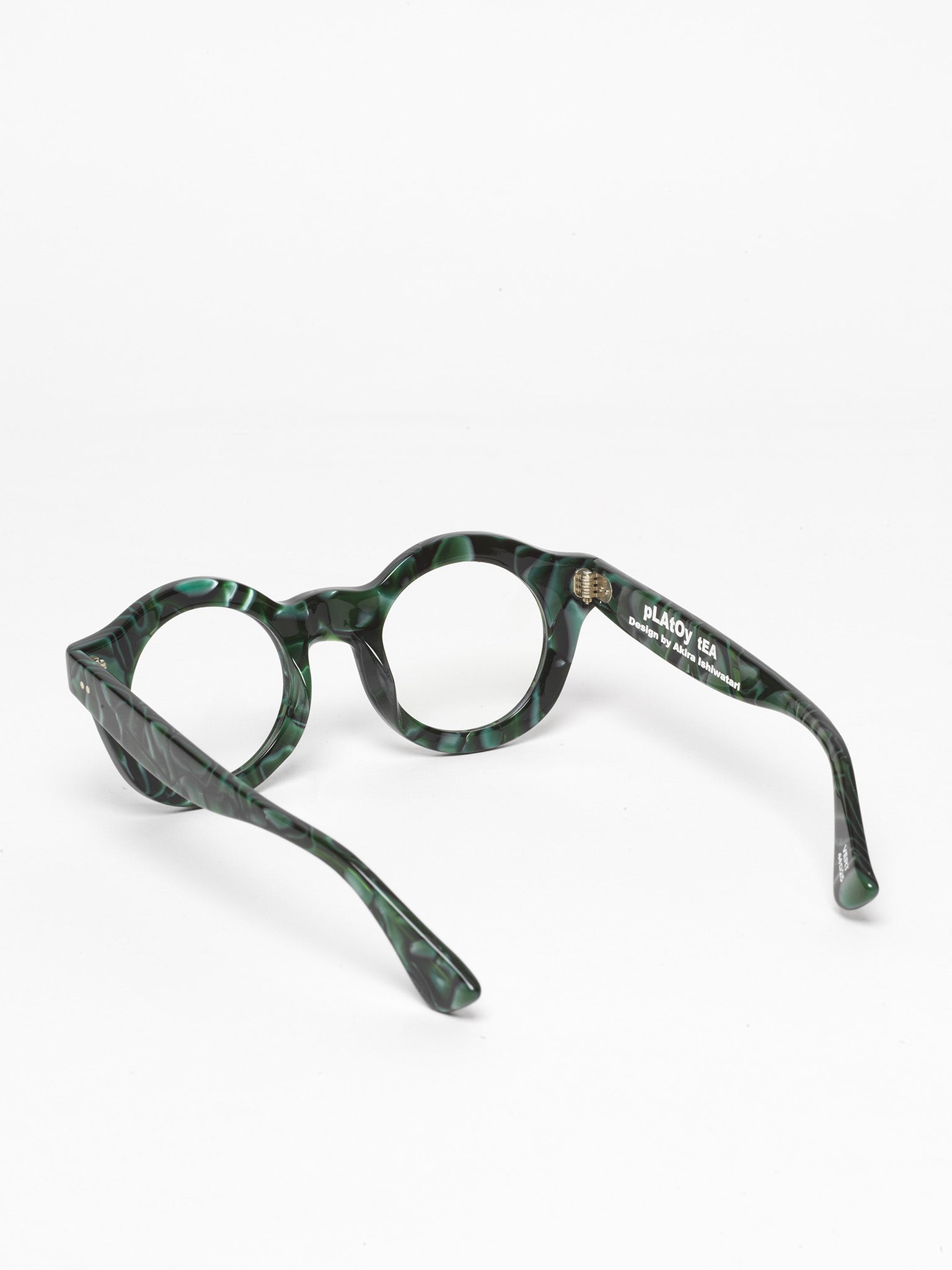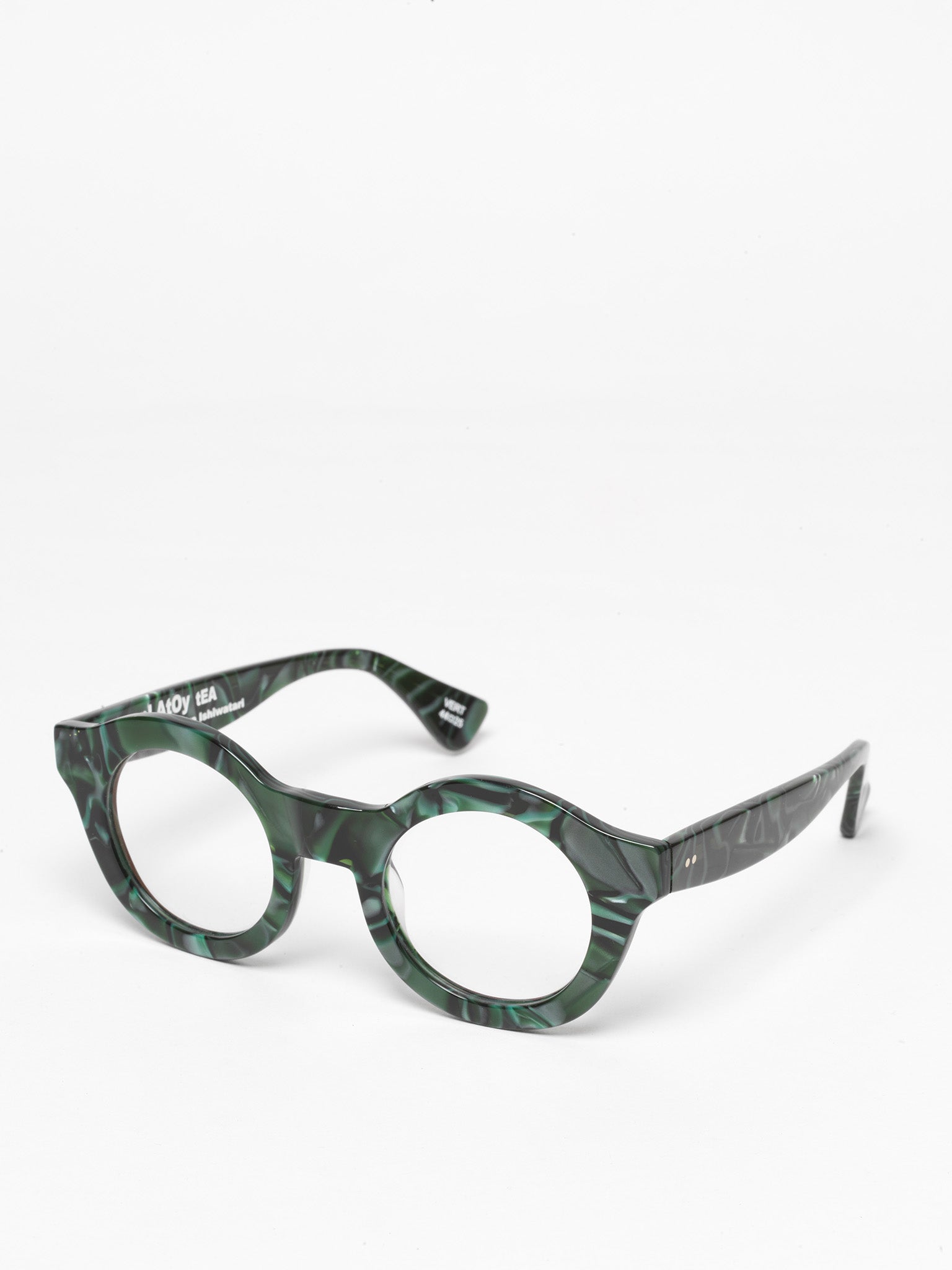 Iconic and distinctive round silhouette, featuring a rich and precious hue of marble green acetate