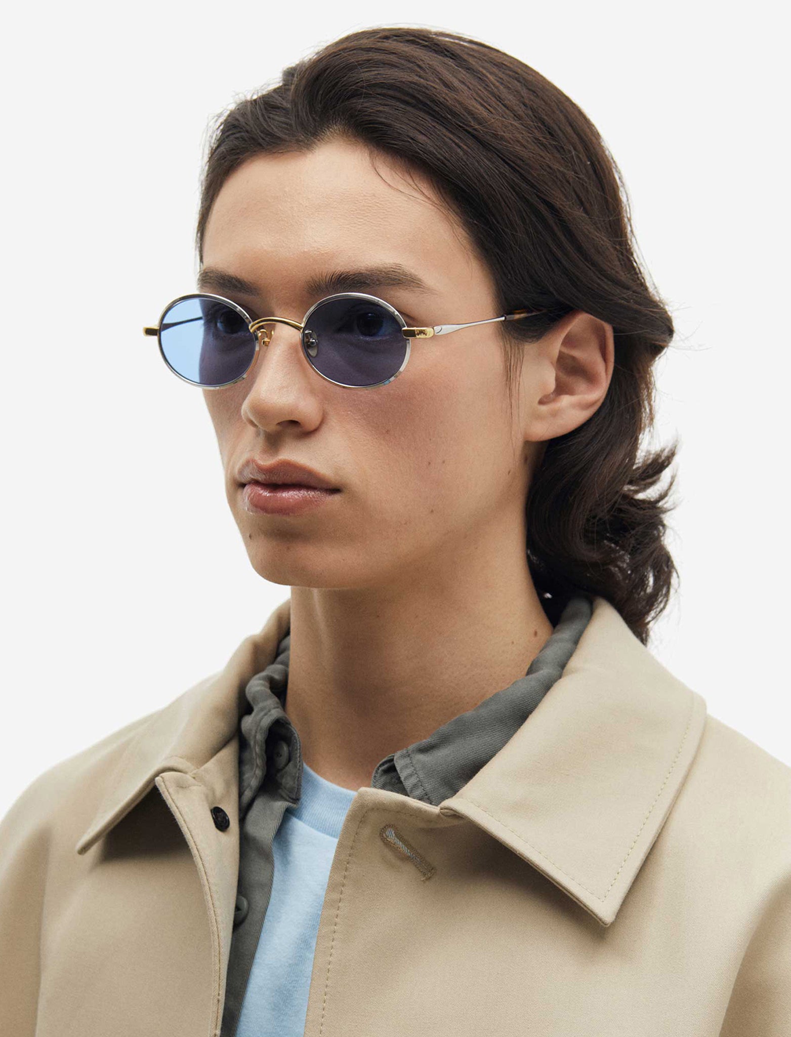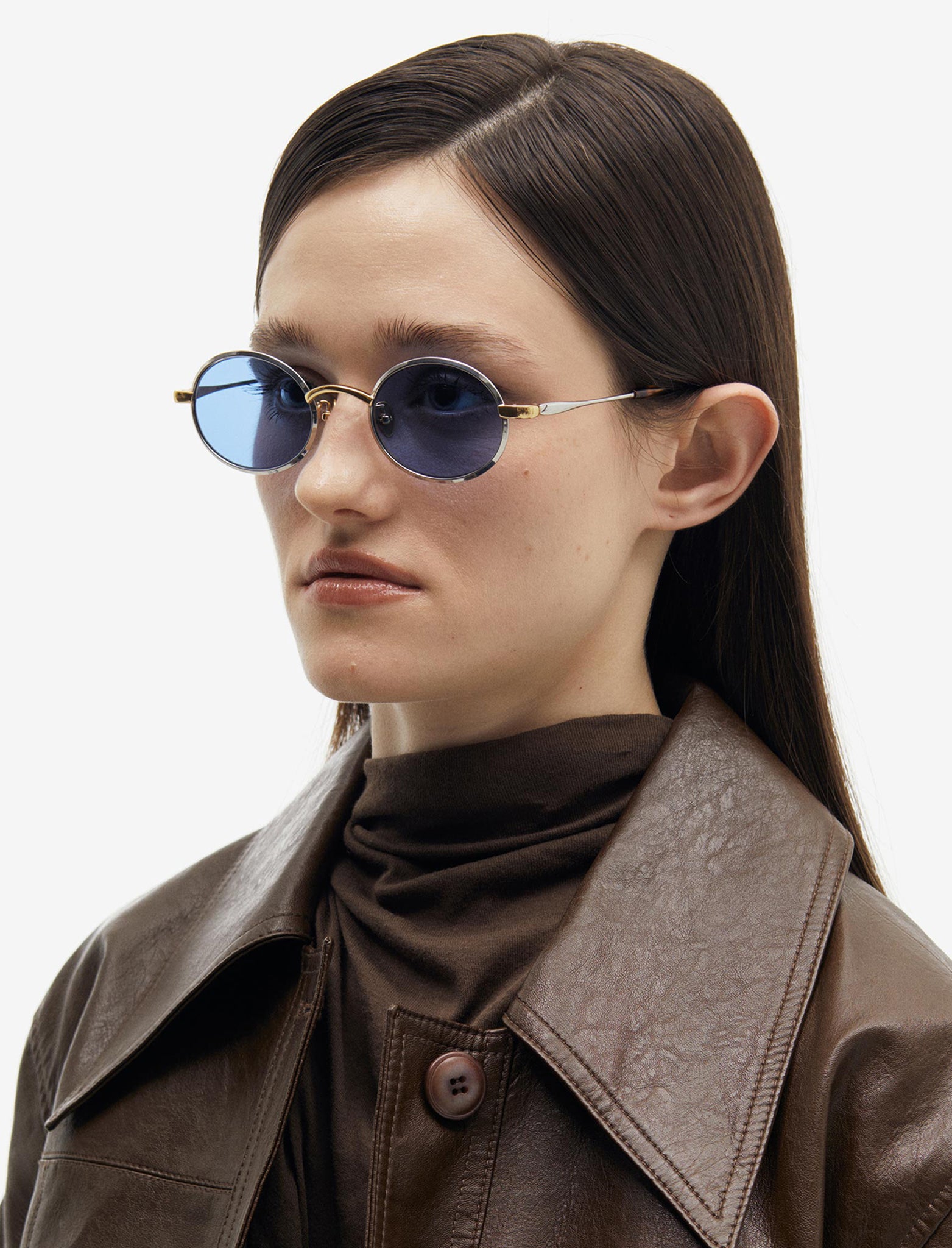 Crafted with an iconic design featuring unique structure and lines, these CLCC7 oval titanium sunglasses exude sophistication. The combination of voluminous metal rims and end-pieces in various metal colors adds a touch of wit to their detail.