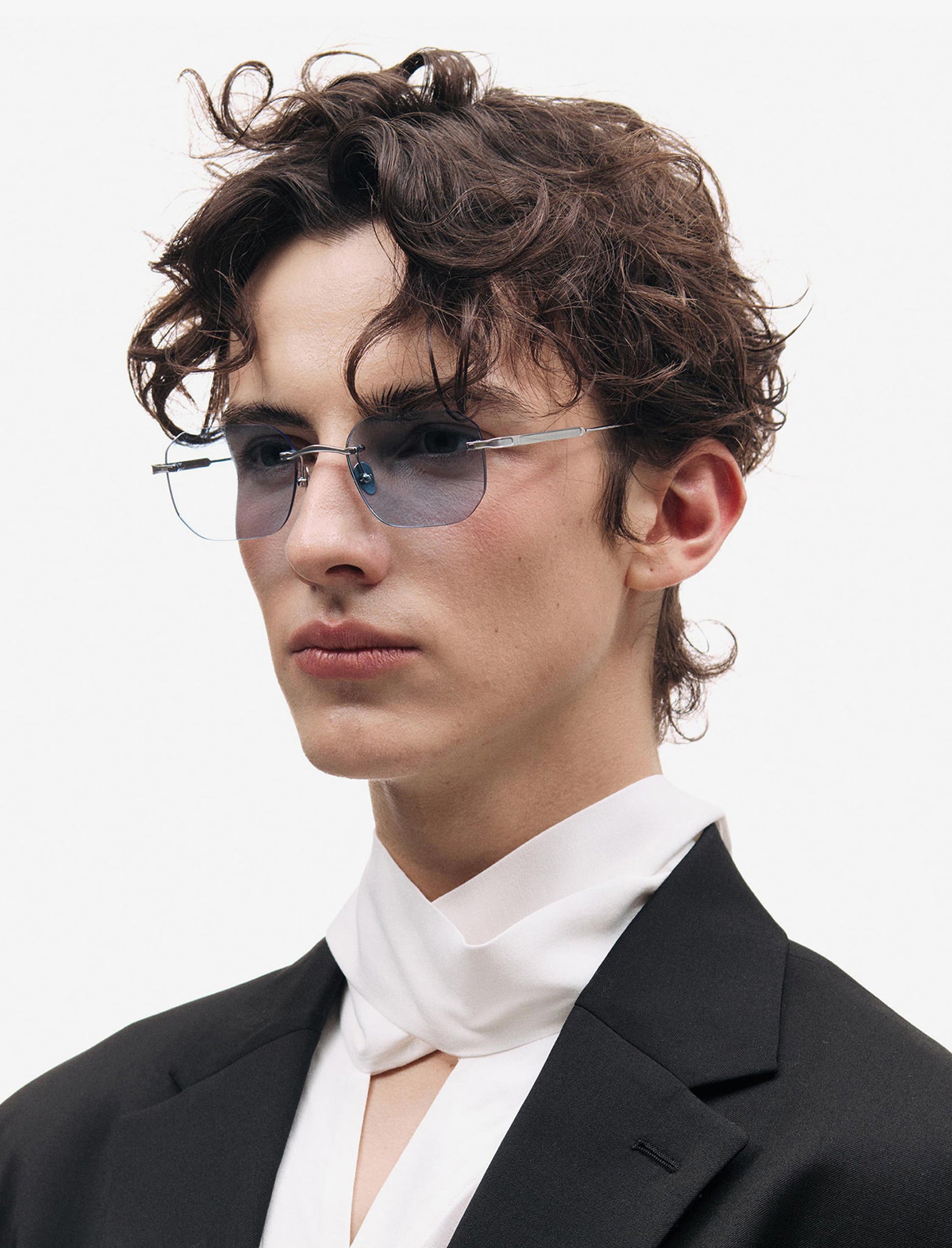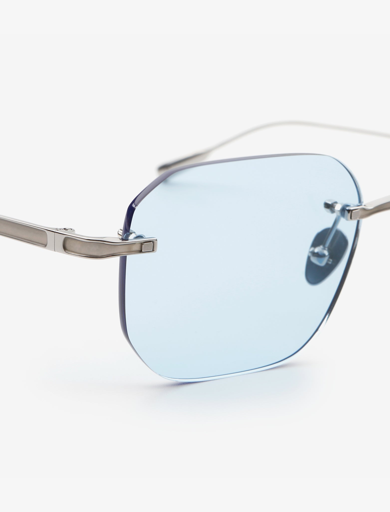 These HM12 rimless frames crafted from horizontal and curved lines, refine the distinctive silhouette. The concise metal line and embossed engraving add a touch of sophistication and signature style to the frames.