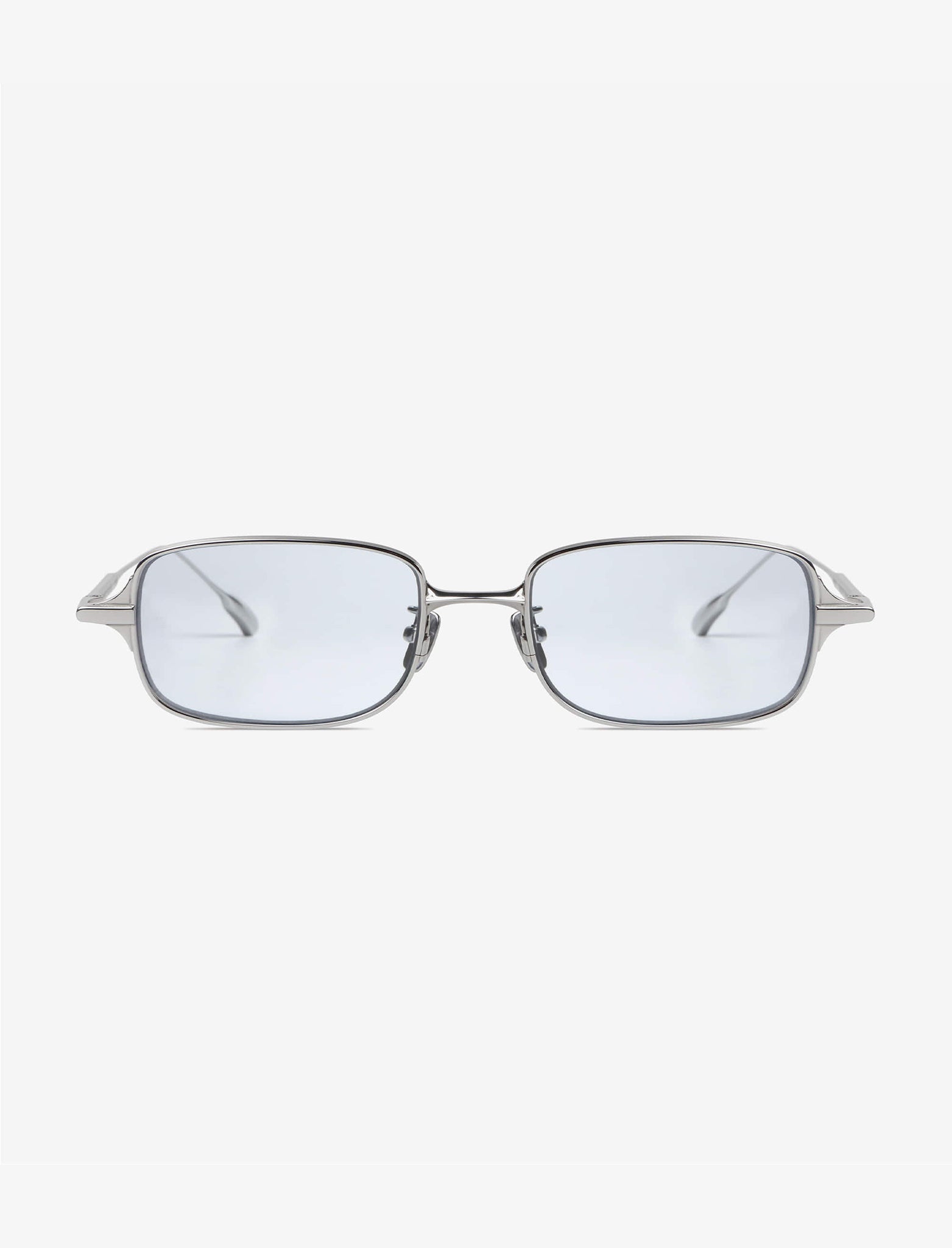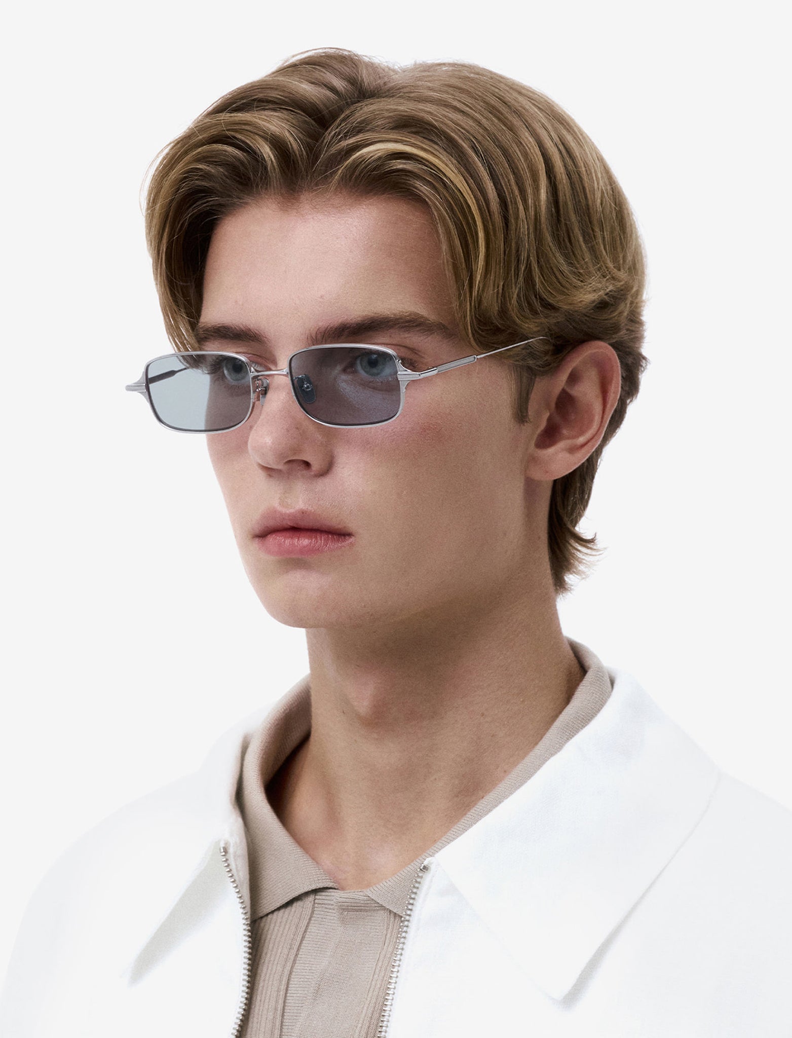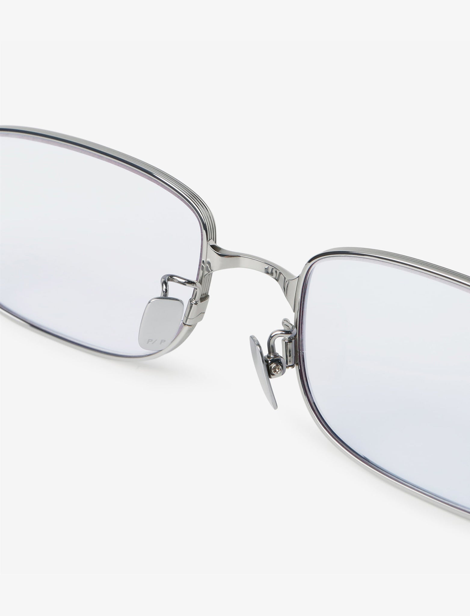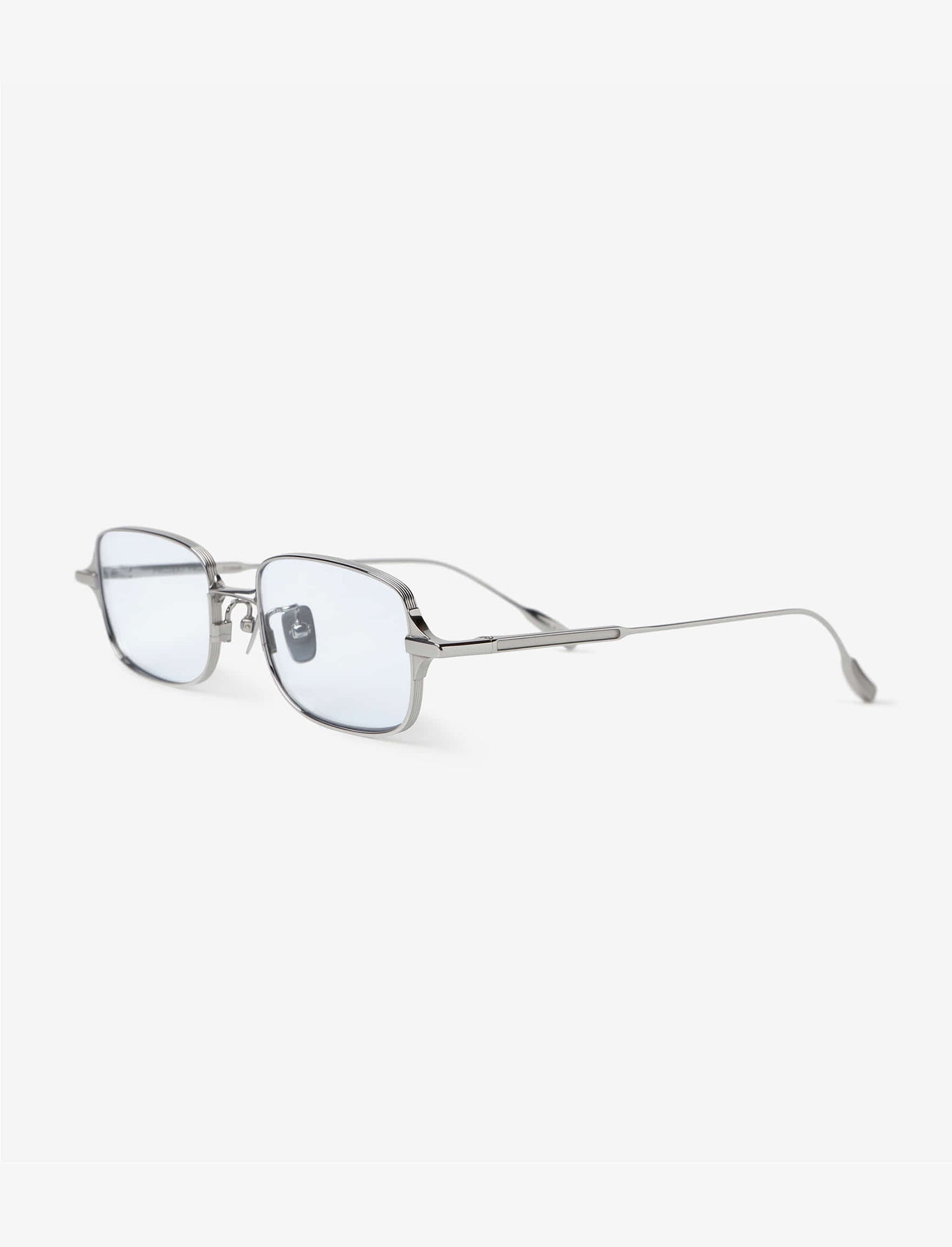 These ND9 thin square titanium sunglasses express an asymmetrical metal volume. The bold bridge and end-piece-to-temple details create a sense of layering metal, adding a distinctive touch of individuality.
