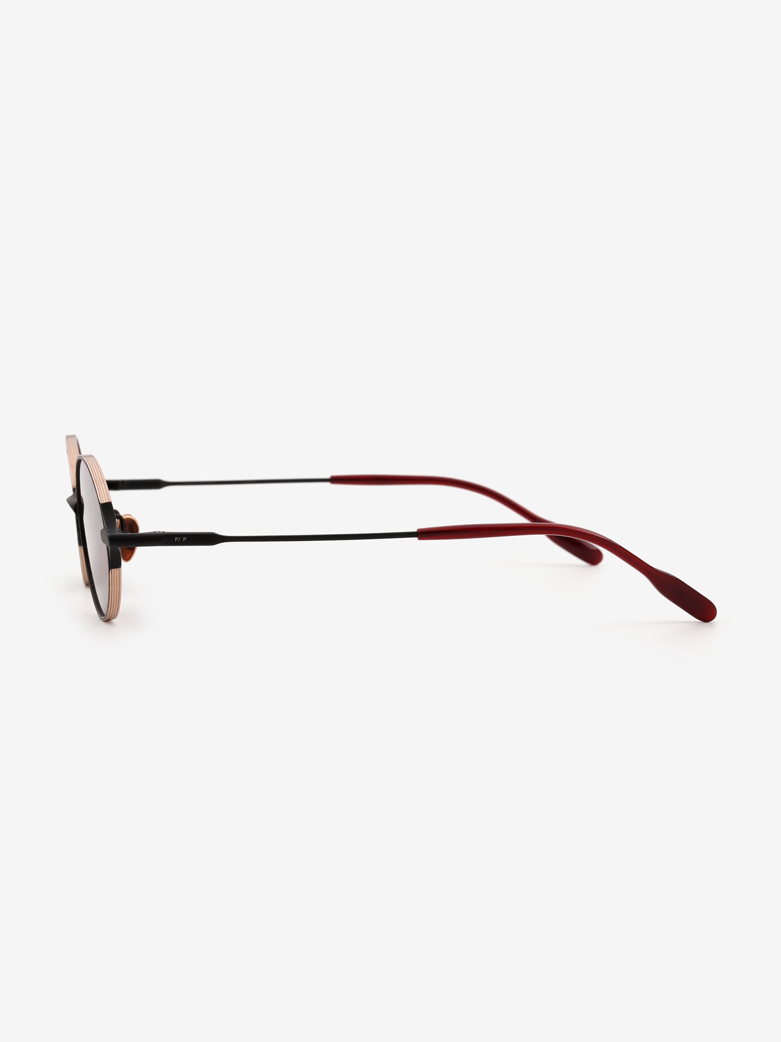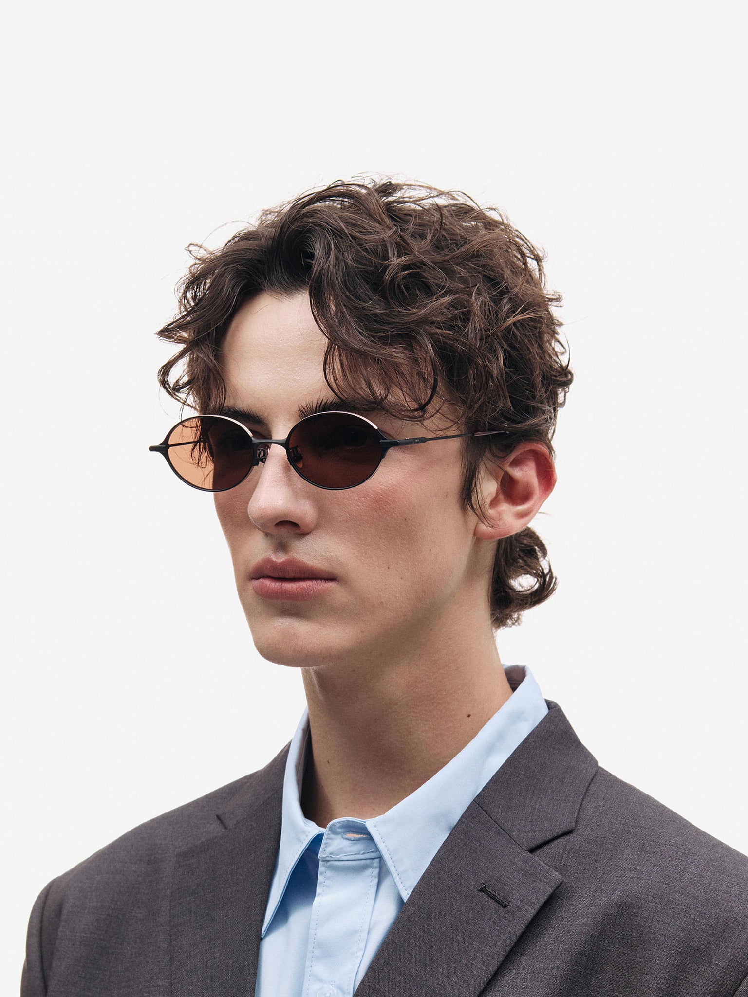 The HM11 oval titanium sunglasses showcase the refinement of metal craftsmanship. The striking contrast between the sleek metal lines and the prominent bridge-endpiece highlights their unique character.