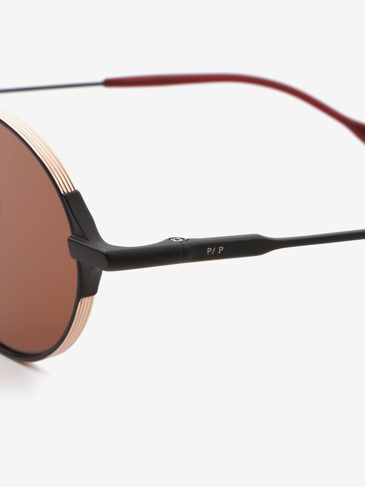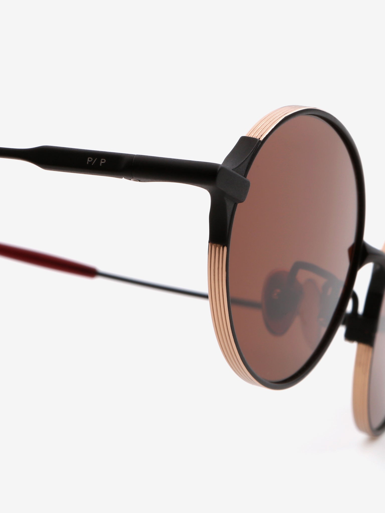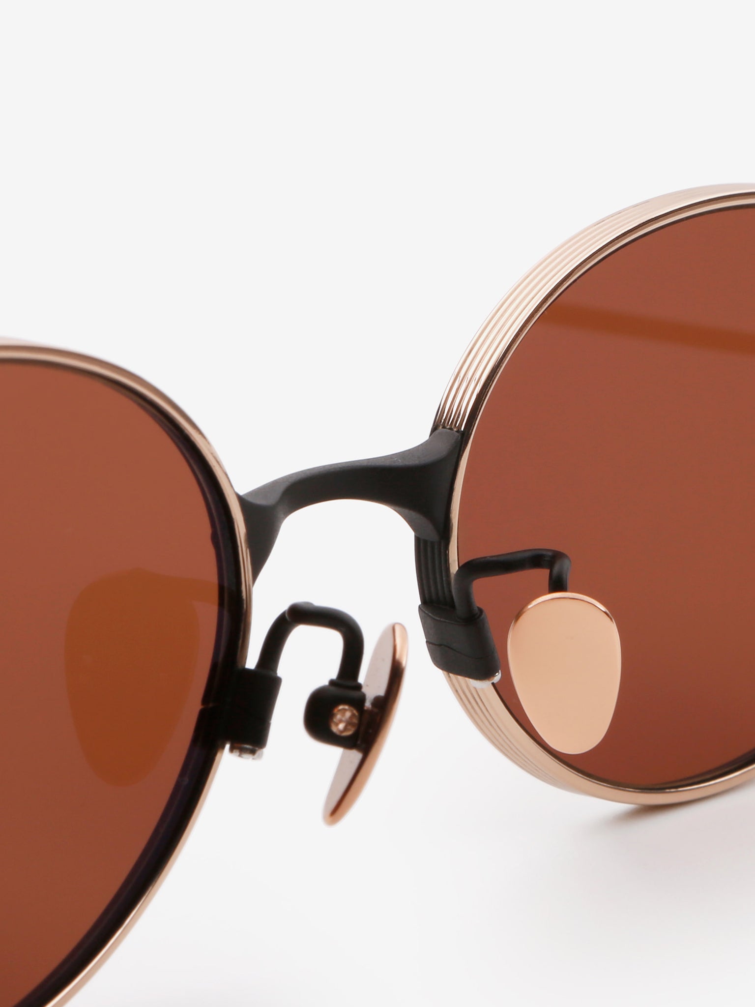 - flat CR39 dark brown lenses with backside anti-reflective coat