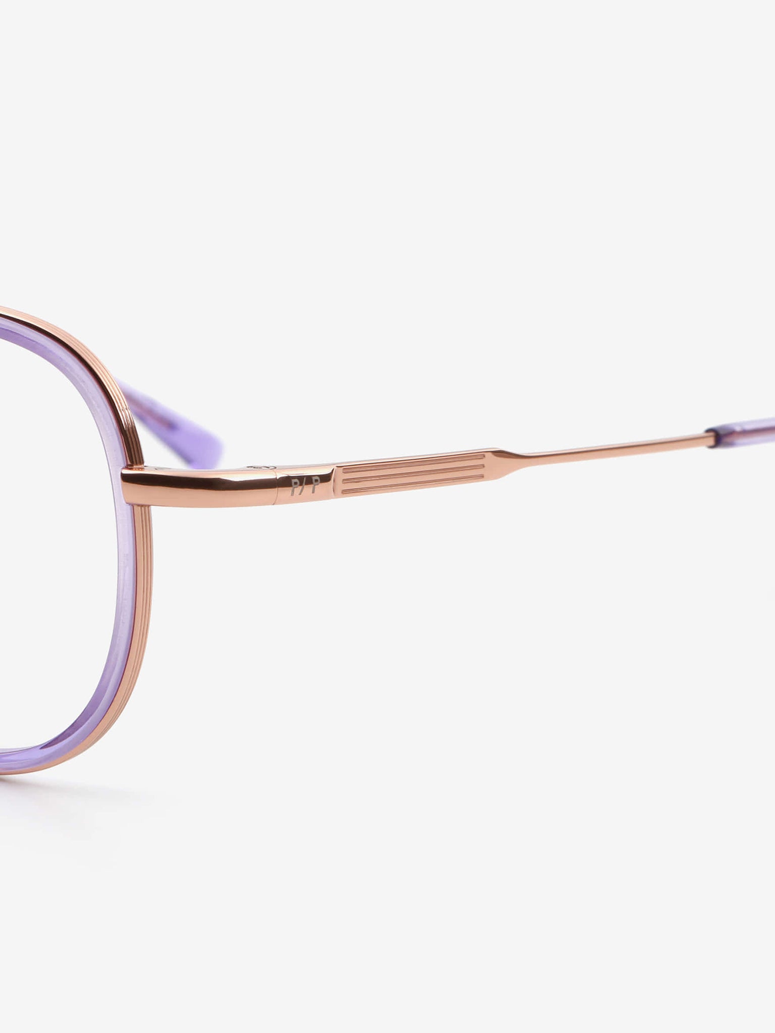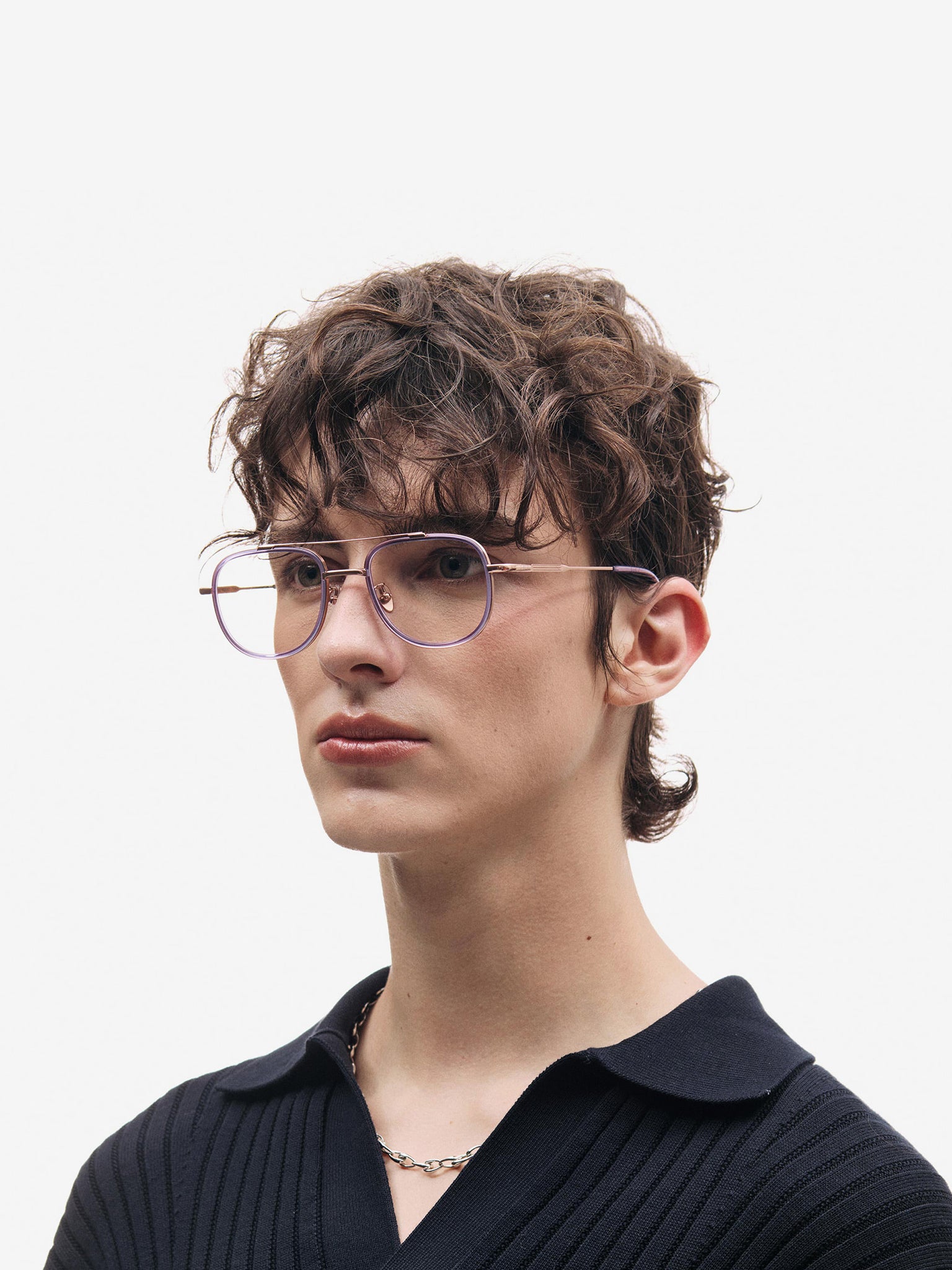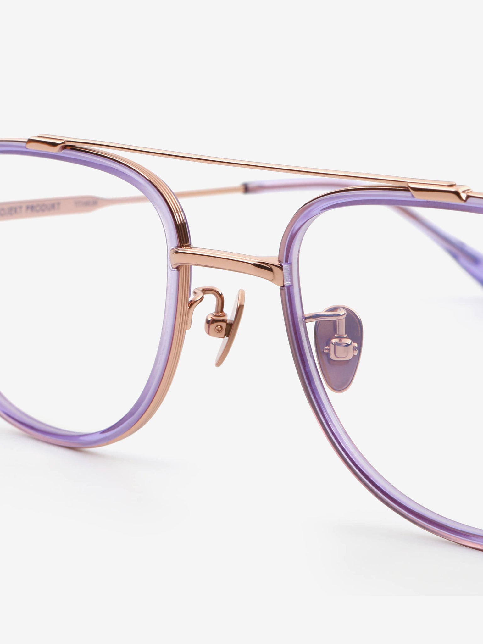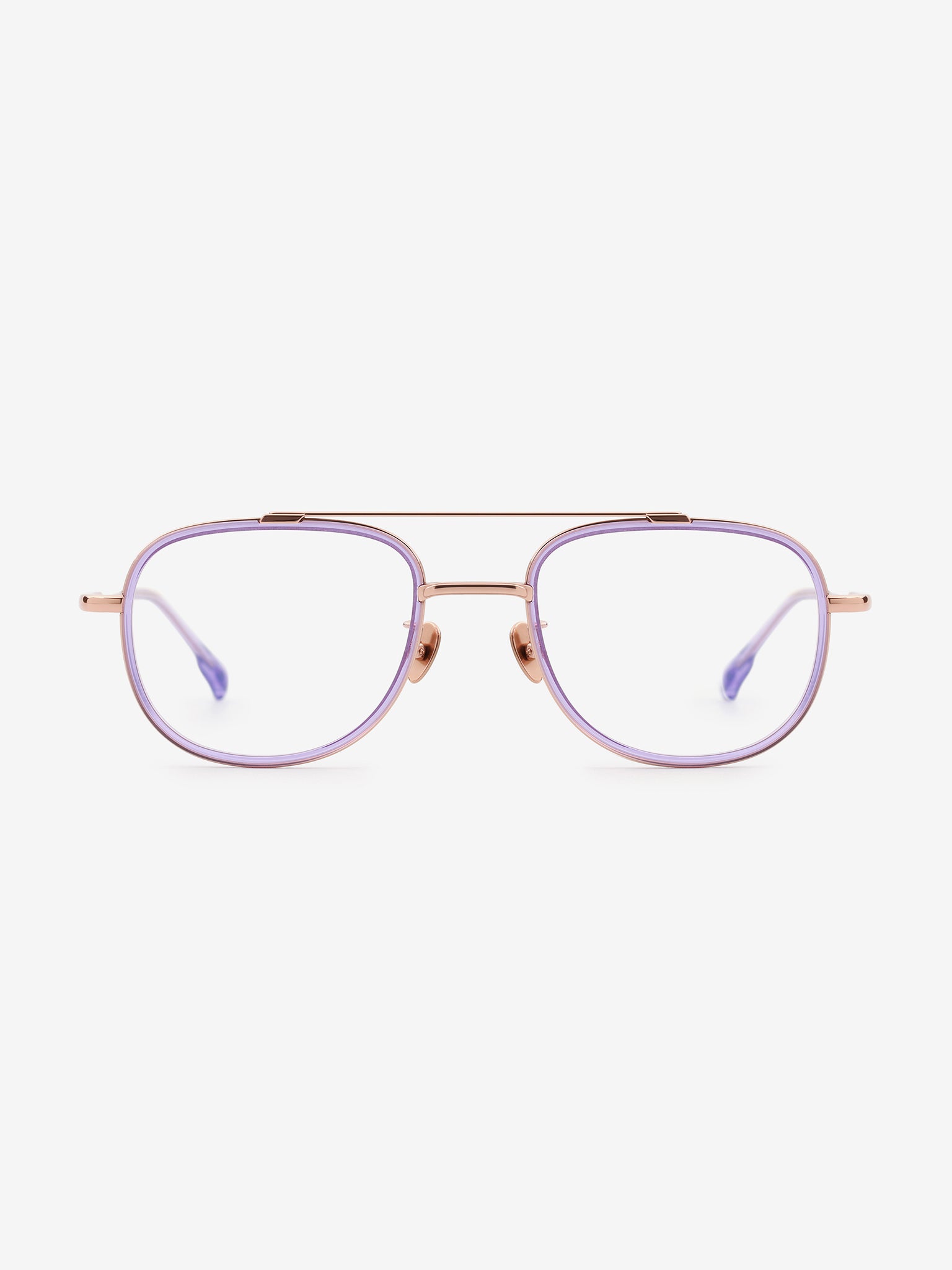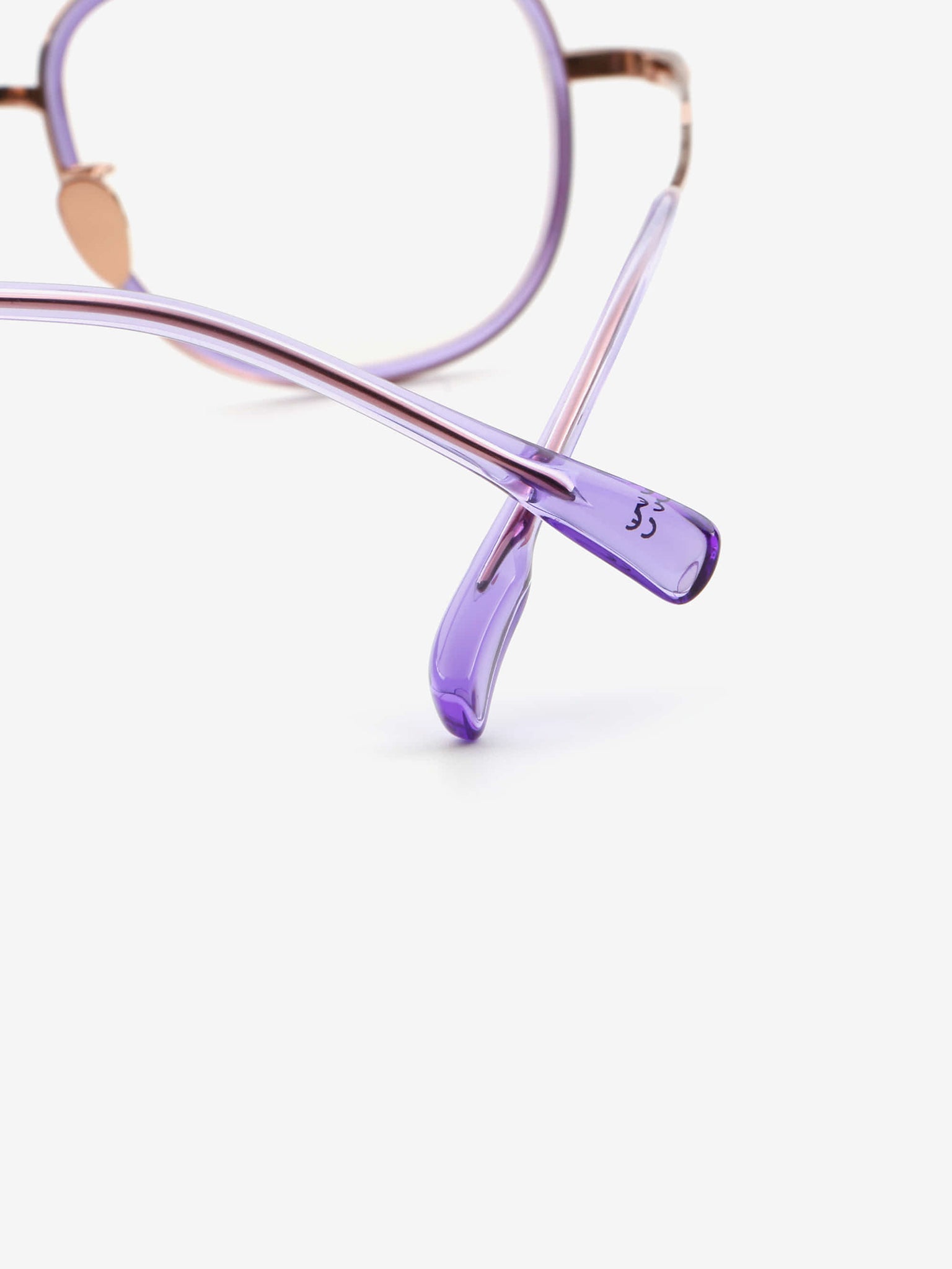These two-bridge rounded square of HM14 spectacles feature diverse color combinations. The glamorous shape of the temple and elaborate embossed pattern harmonize to express contemporary and signature unique features.