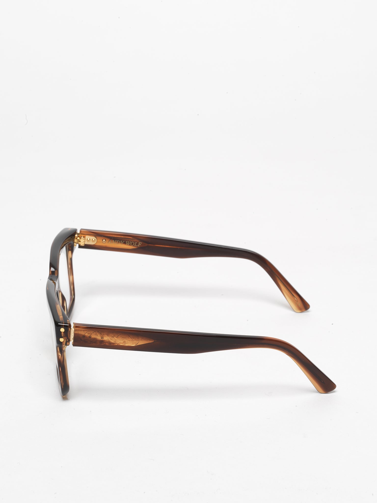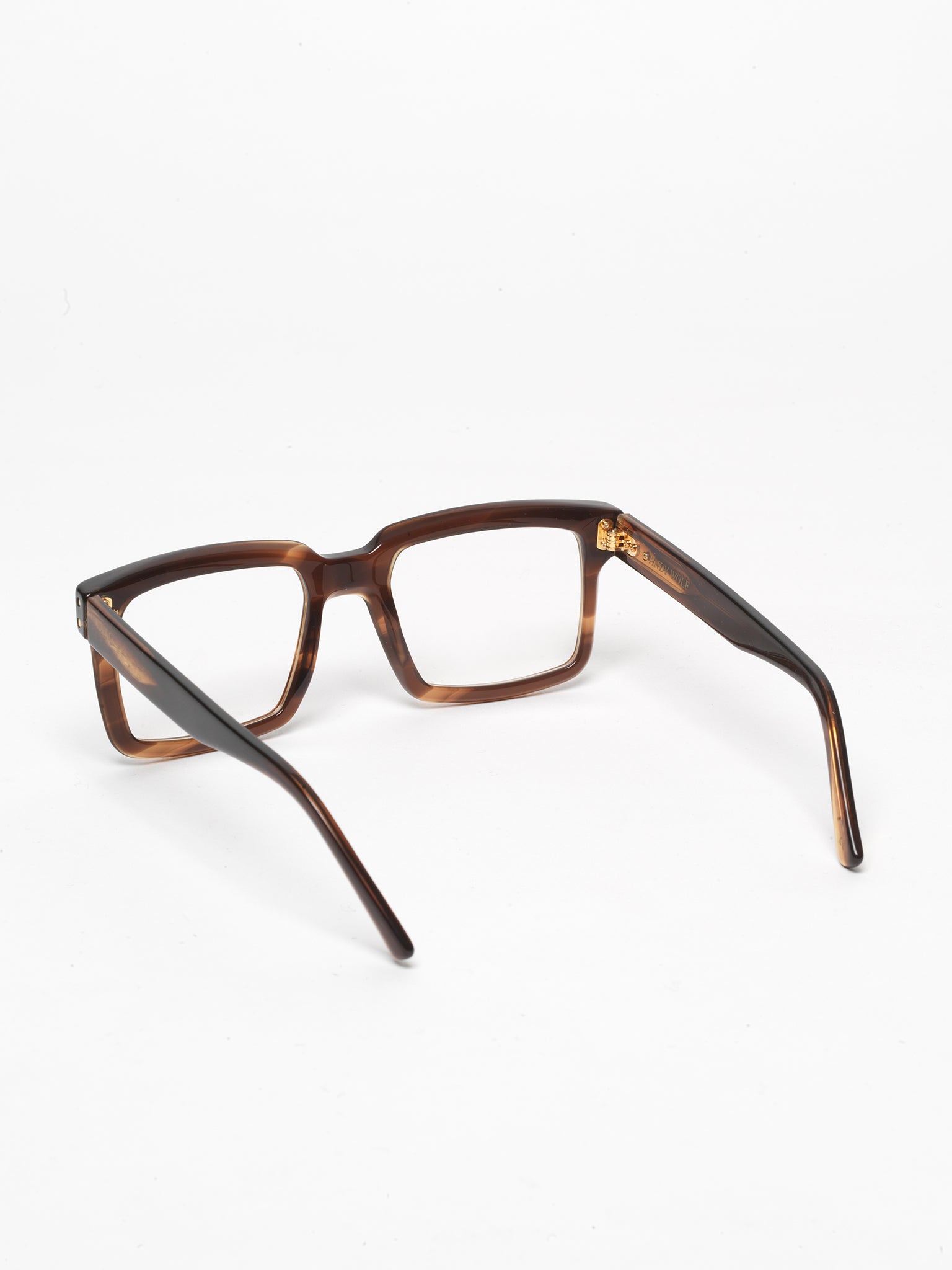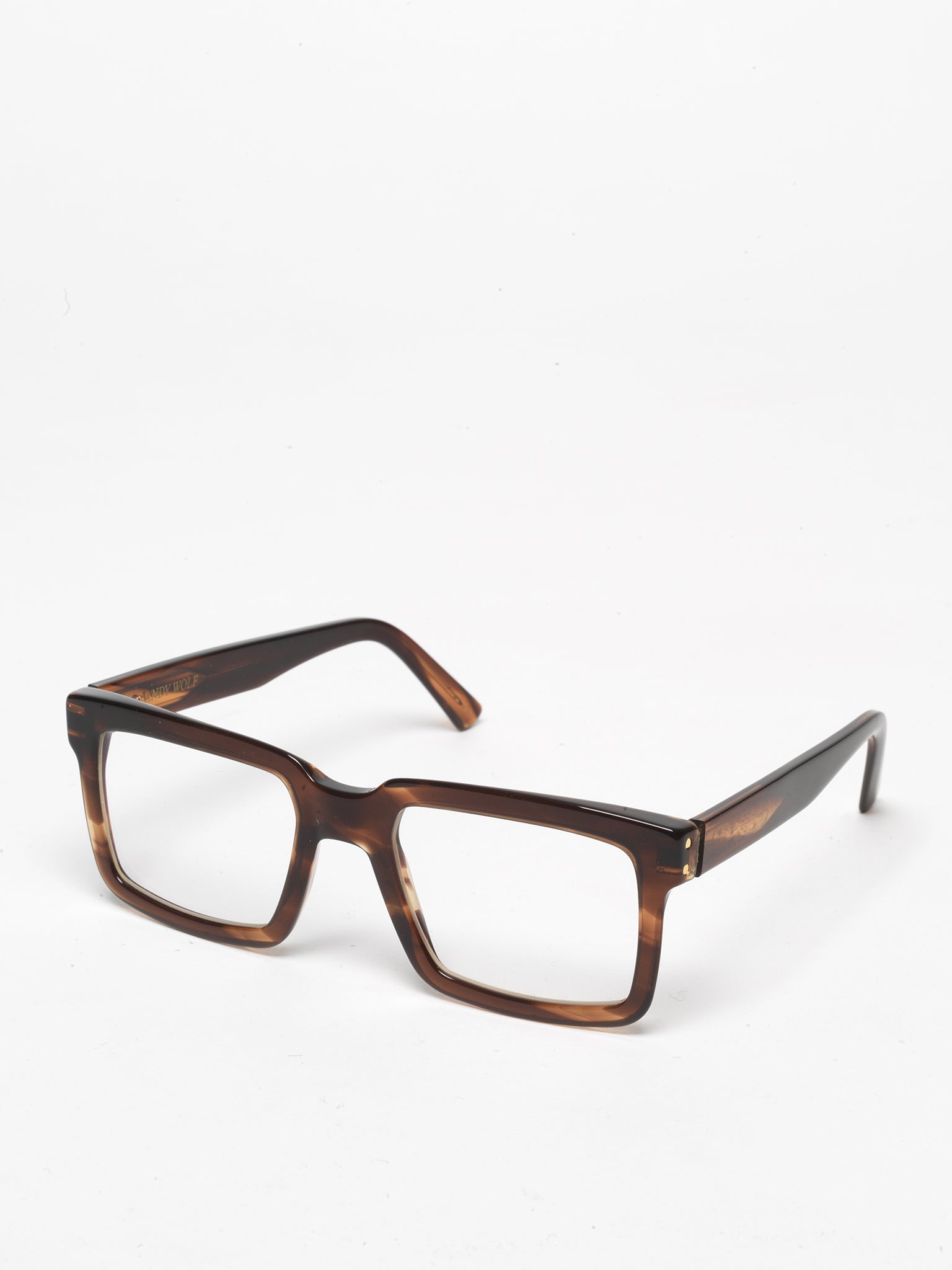 Striking lines and a clear shape give this unisex frame in XL size its unmistakable character and make it effortless chic. For the AW05 there is a matching Clip-On that skillfully transforms the frame into an expressive pair of sunglasses.
