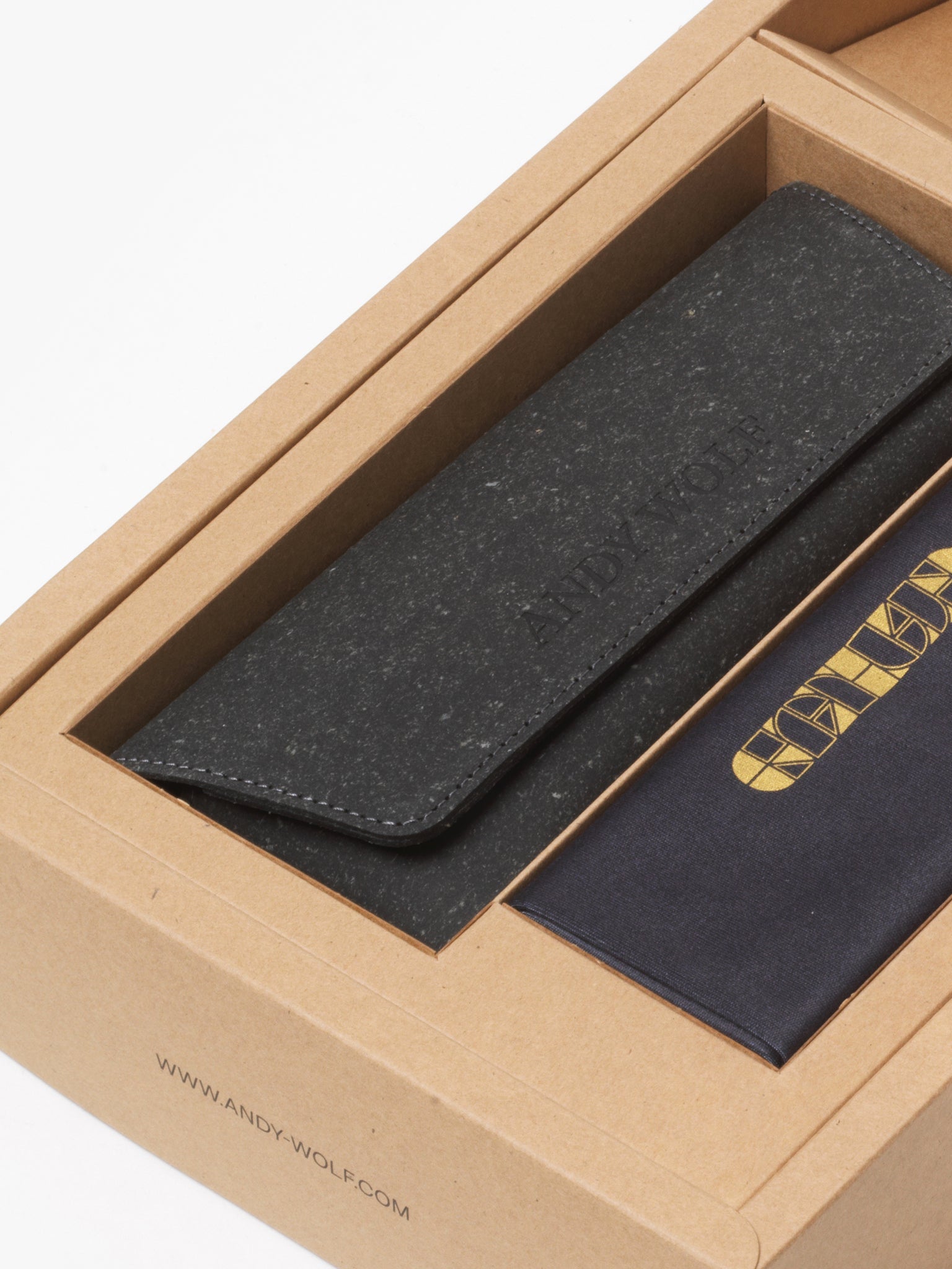 - comes in an exquisite paper box, made in Germany, complete with guarantee card, case and cleaning cloth; the inlay of the box can be removed later, it then turns into a storage box up to four pair of glasses