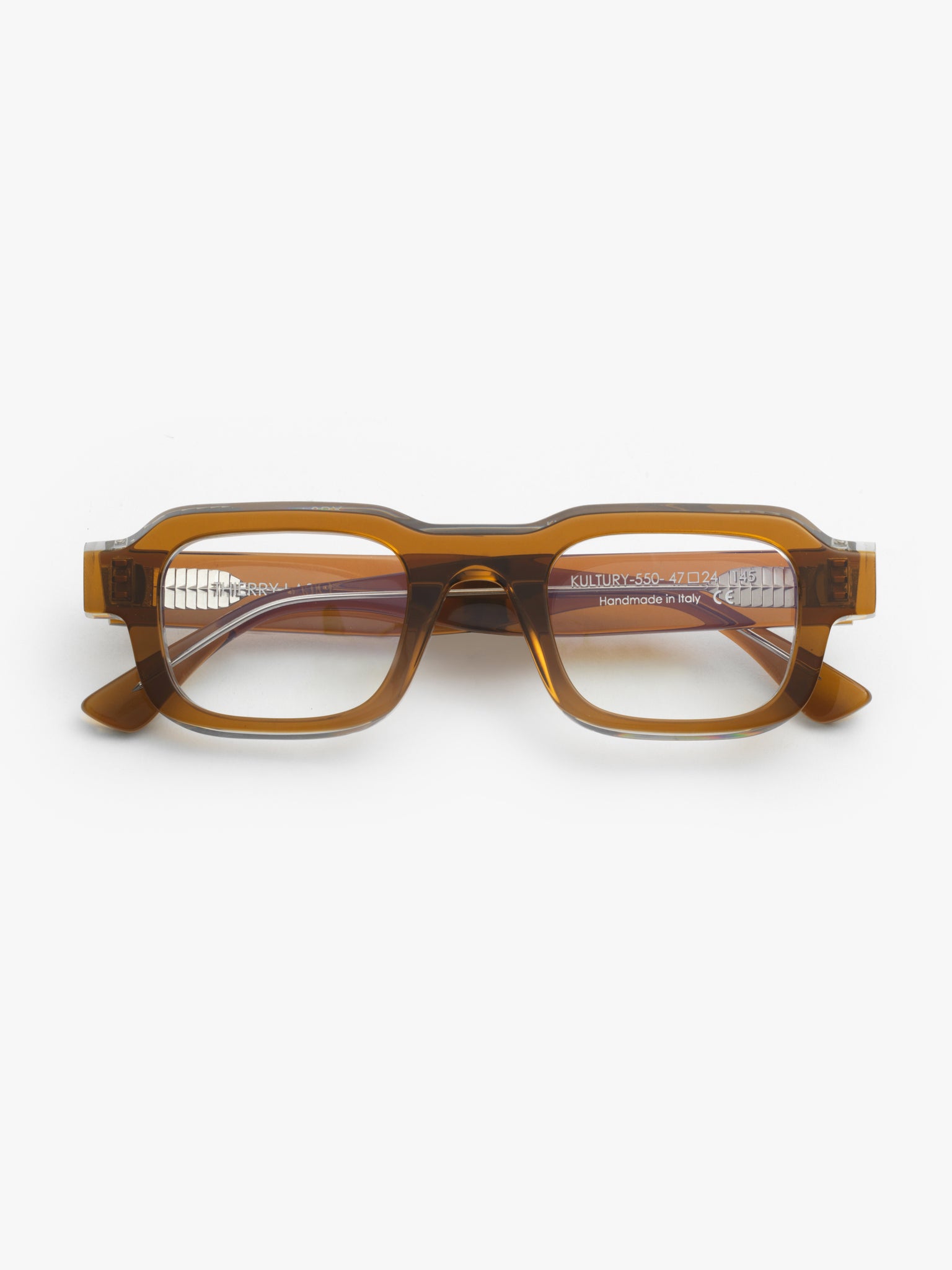 Handcrafted in Italy from authentic Italian acetate, KULTURY is a retro-futuristic rectangular frame complemented by an edgy, beveled browline.