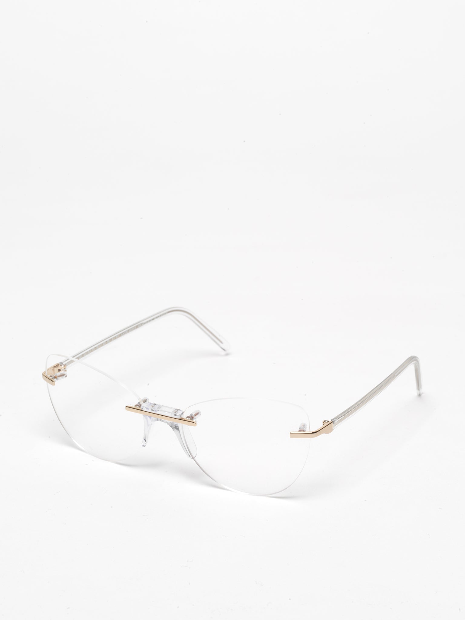 New model in Andy Wolf's iconic rimless series, from the White Heat Collection: the new design features a cat-eye shape with a soft and gentle line.