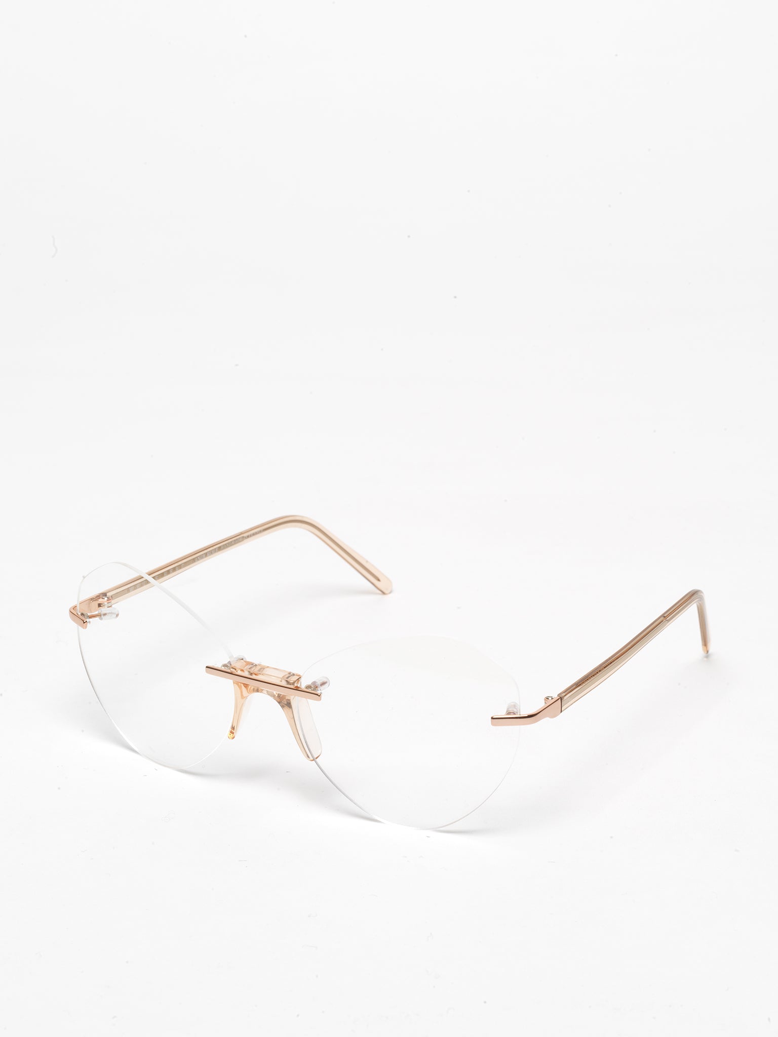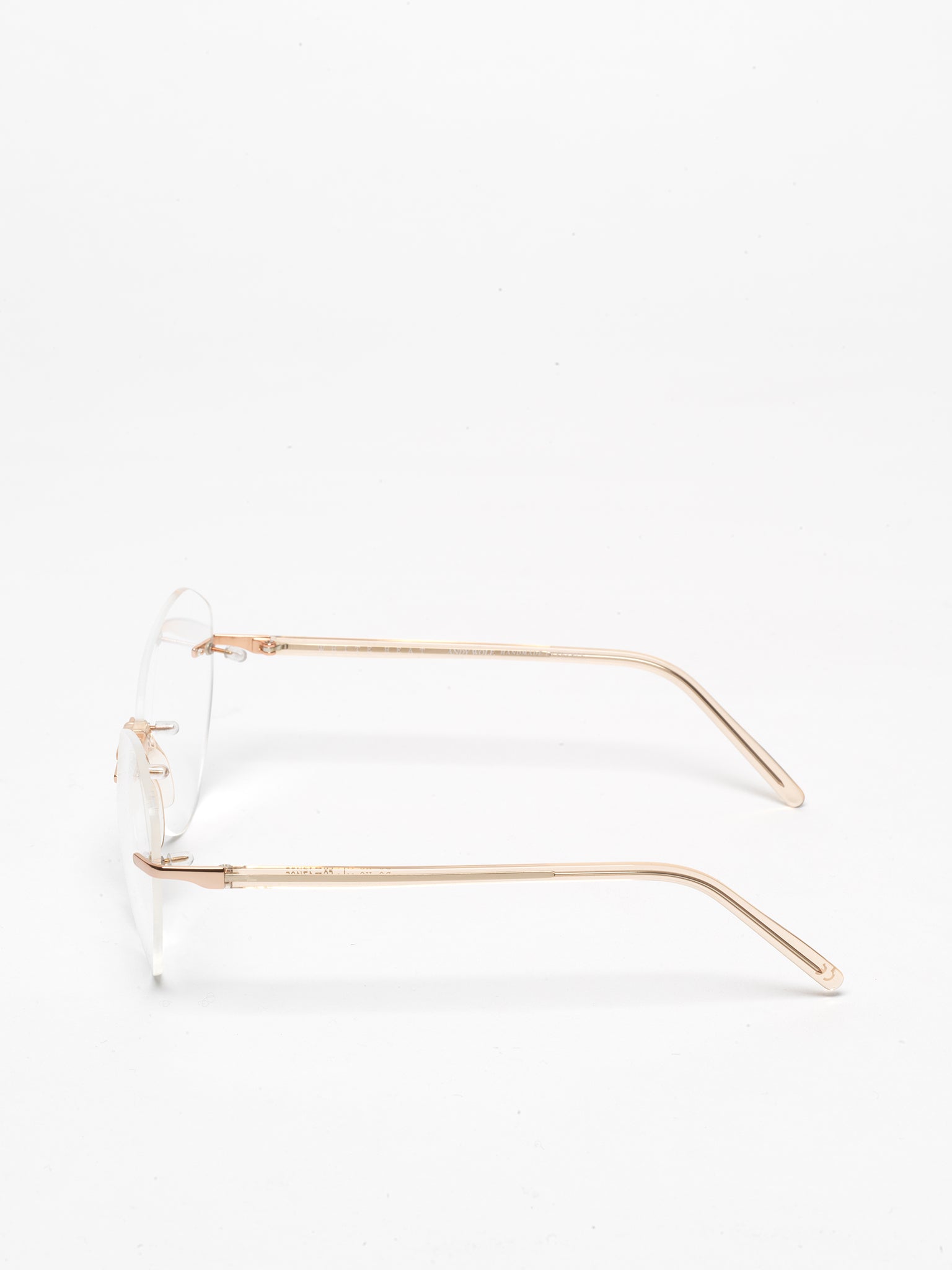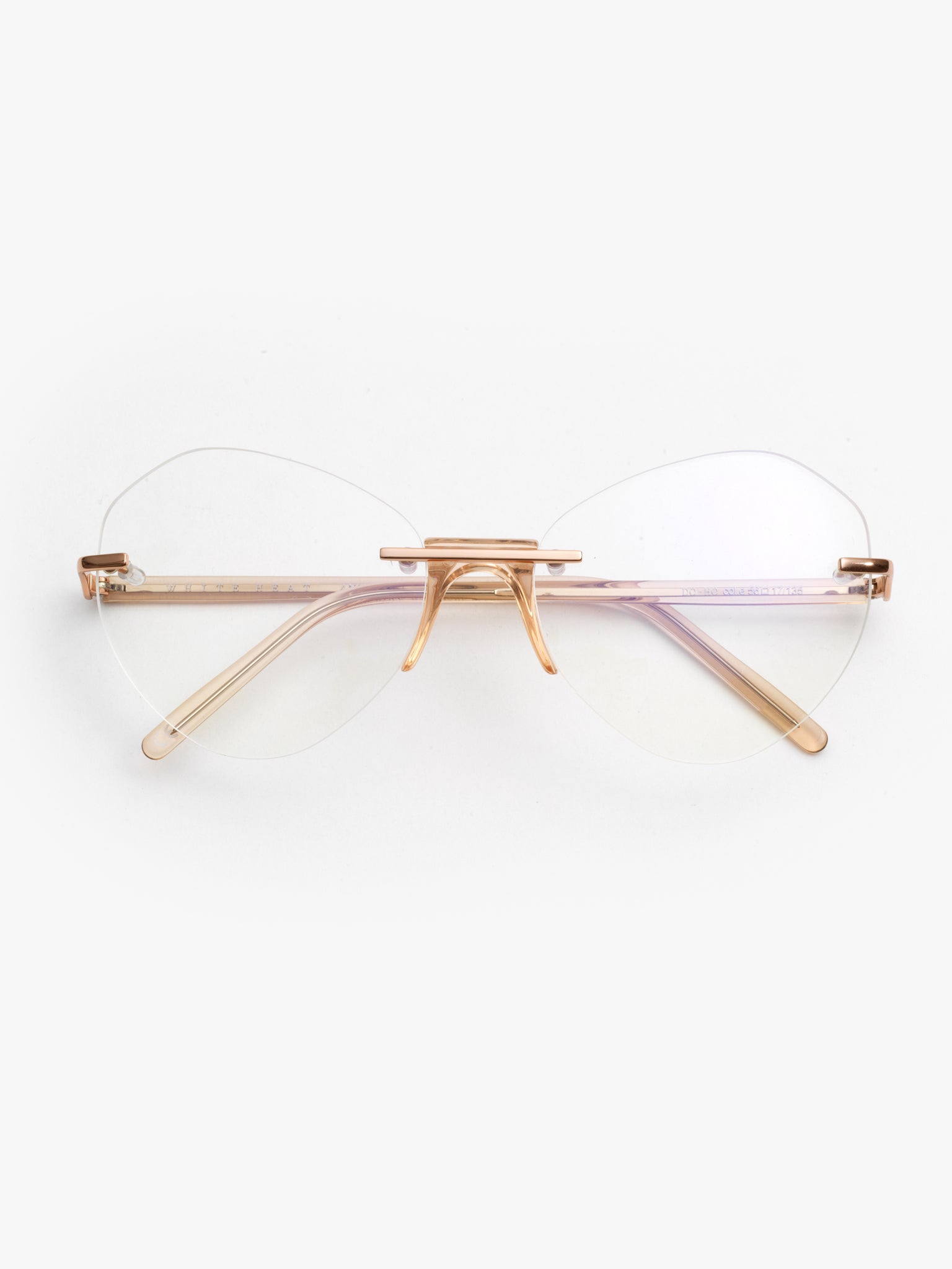 New model in Andy Wolf's iconic rimless series, from the White Heat Collection: the new design features a re-visited cat-eye shape, ultra feminine and lightweight.