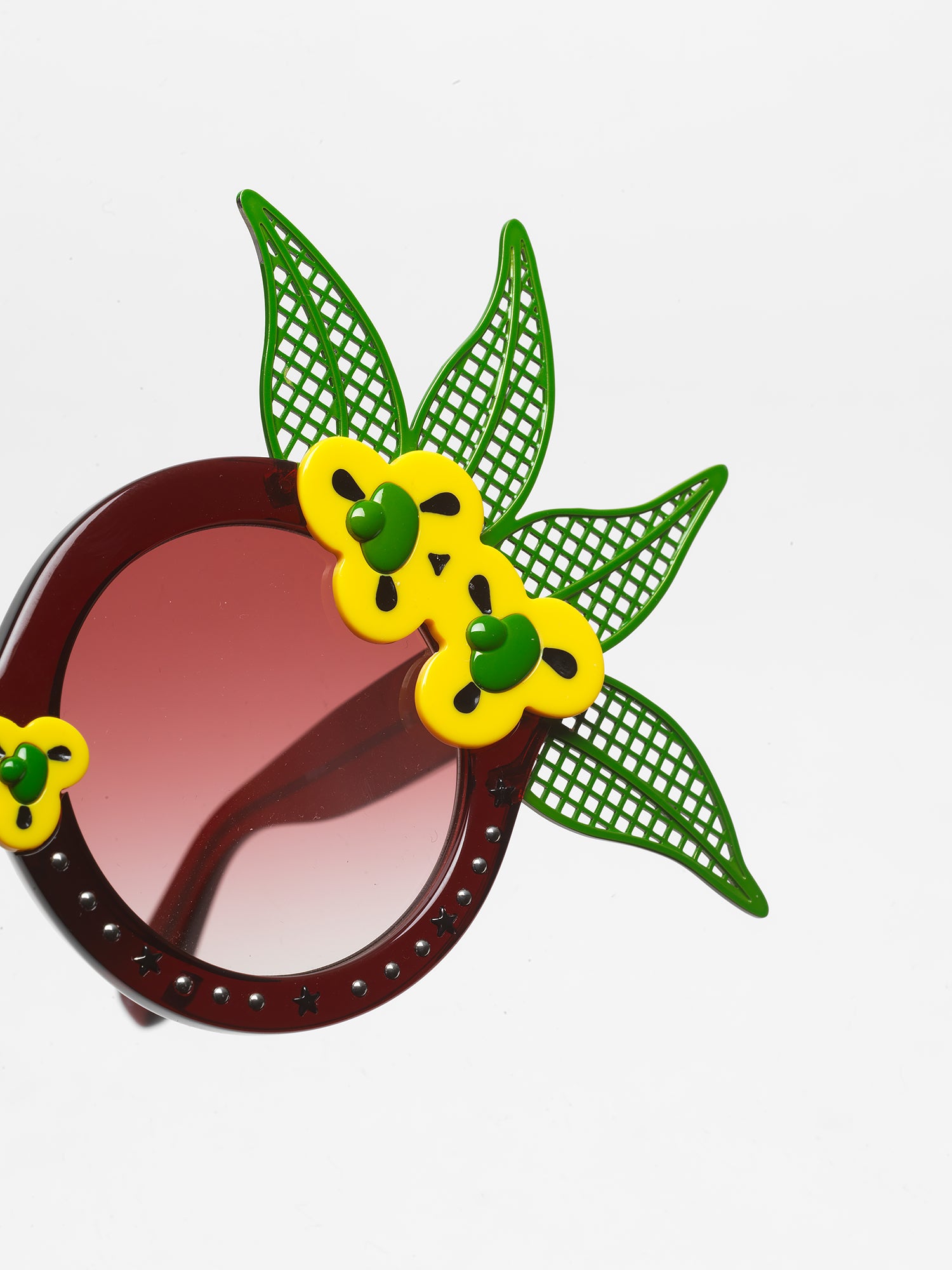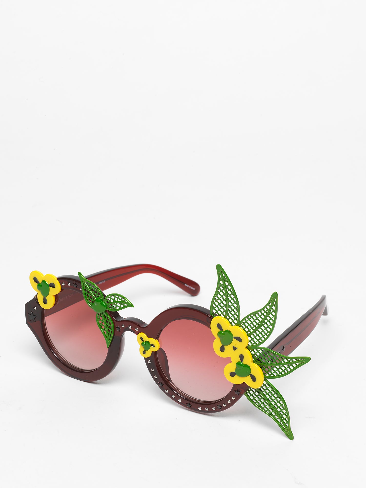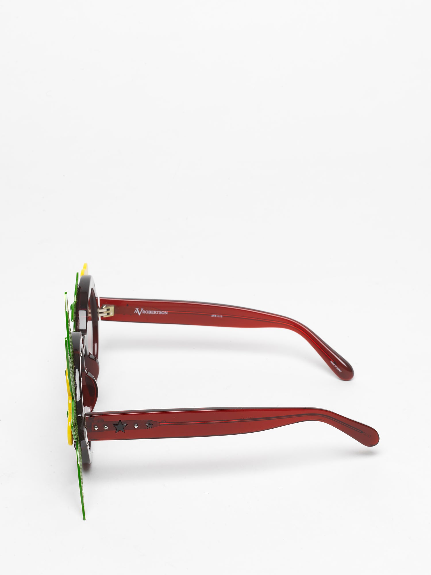 Amie Victoria Robertson x Linda Farrow / Round Sunglasses With Flowers / Red Green Yellow