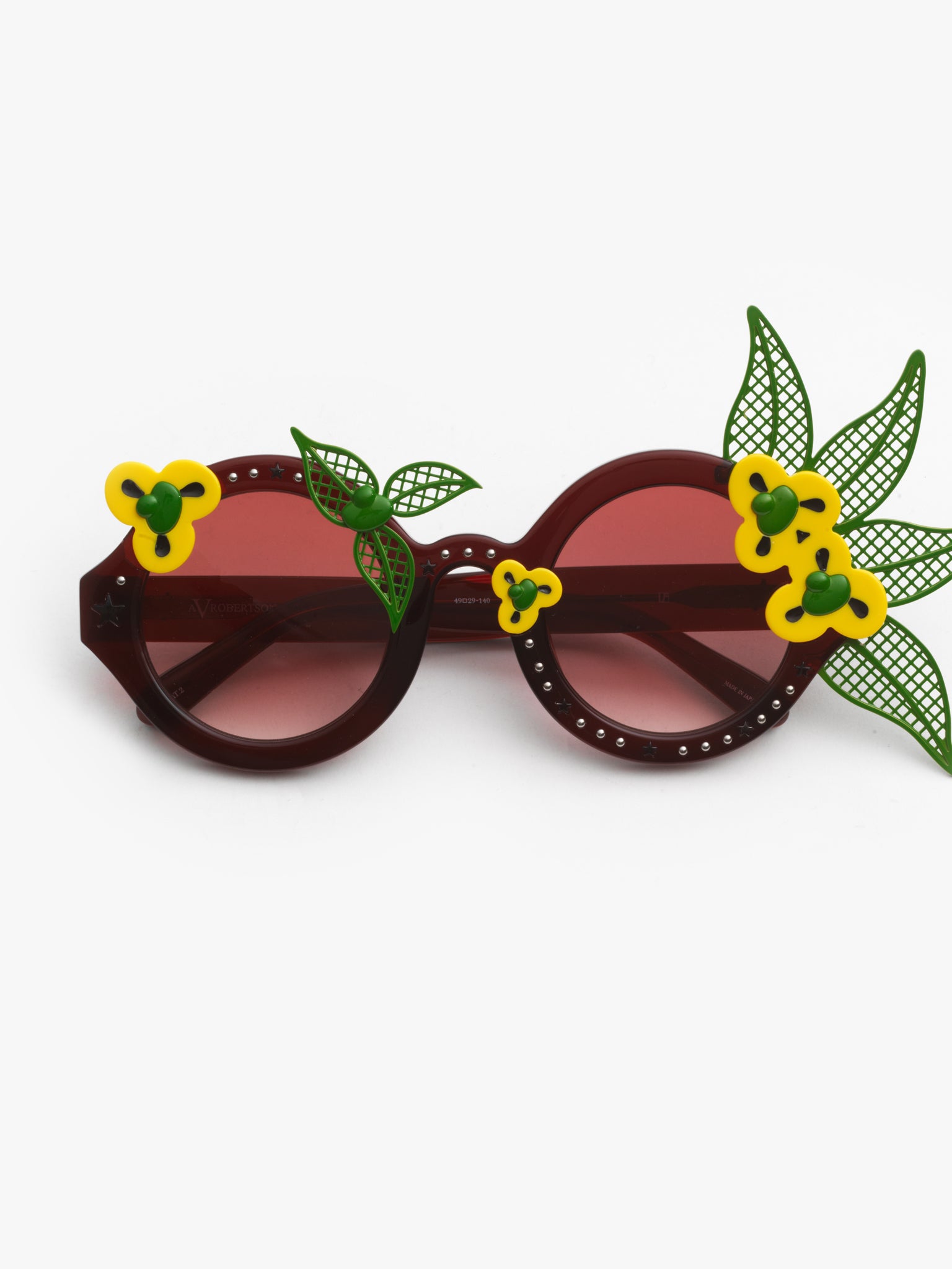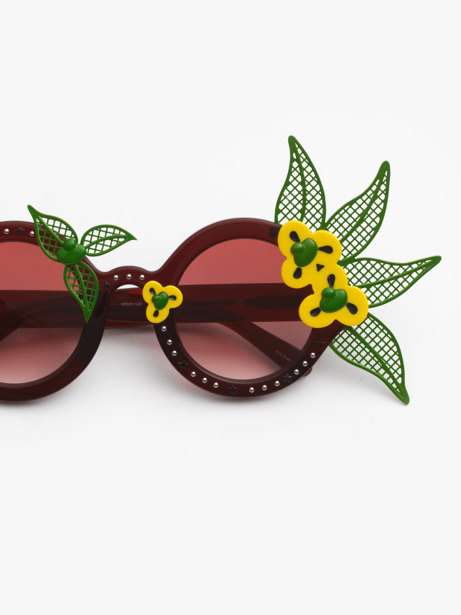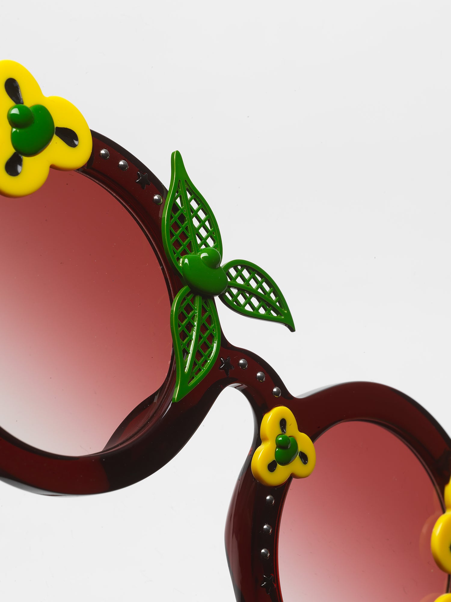 Amie Victoria Robertson x Linda Farrow / Round Sunglasses With Flowers / Red Green Yellow