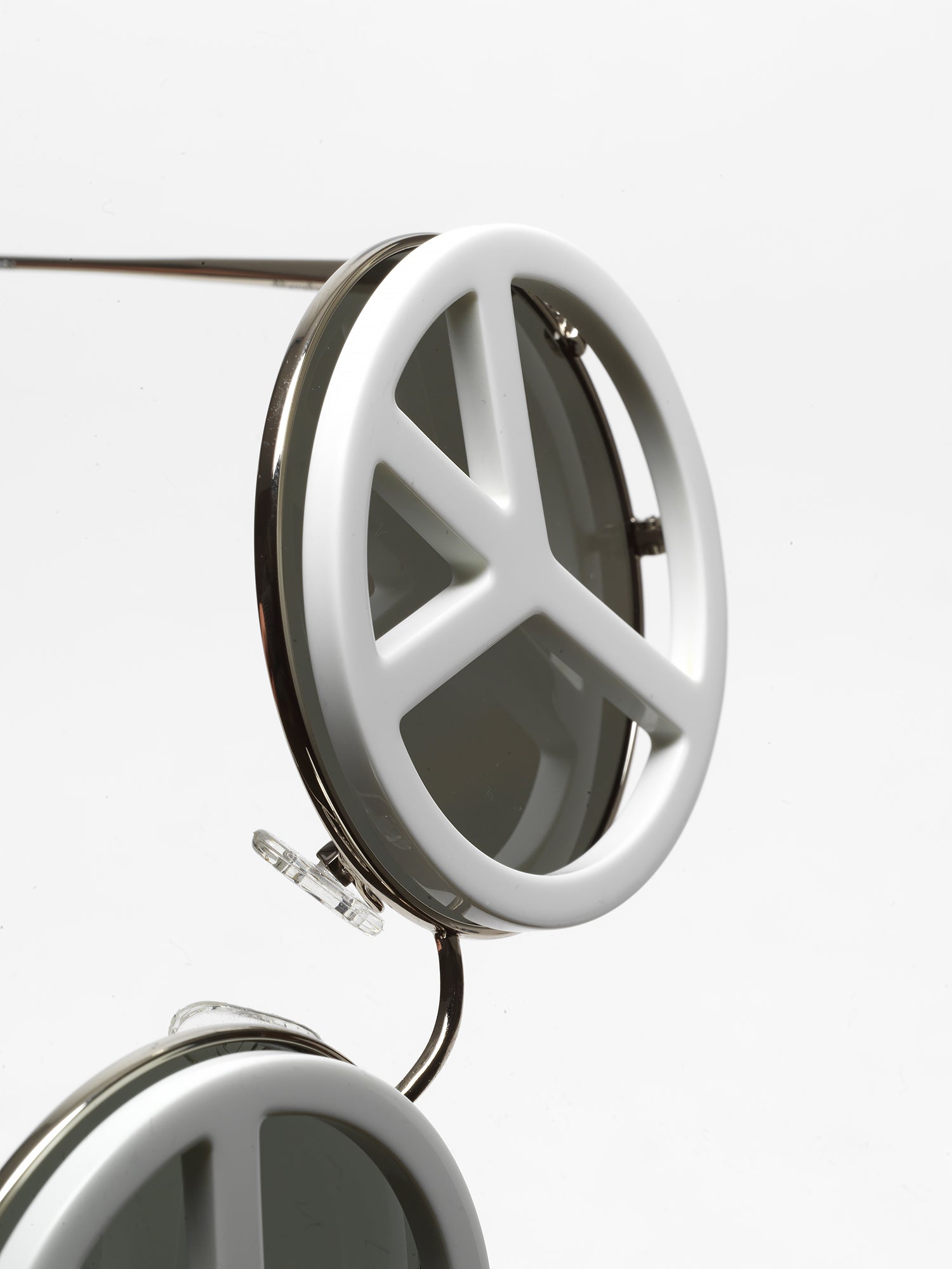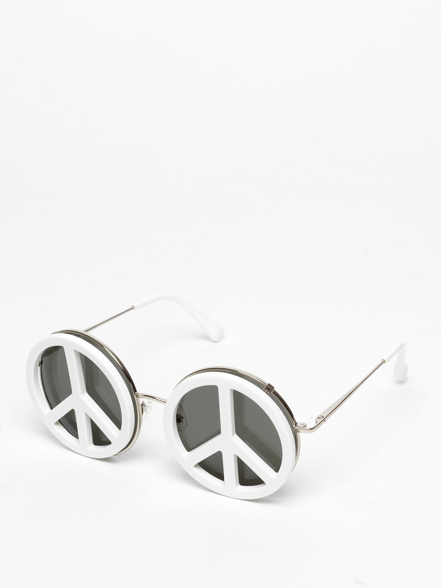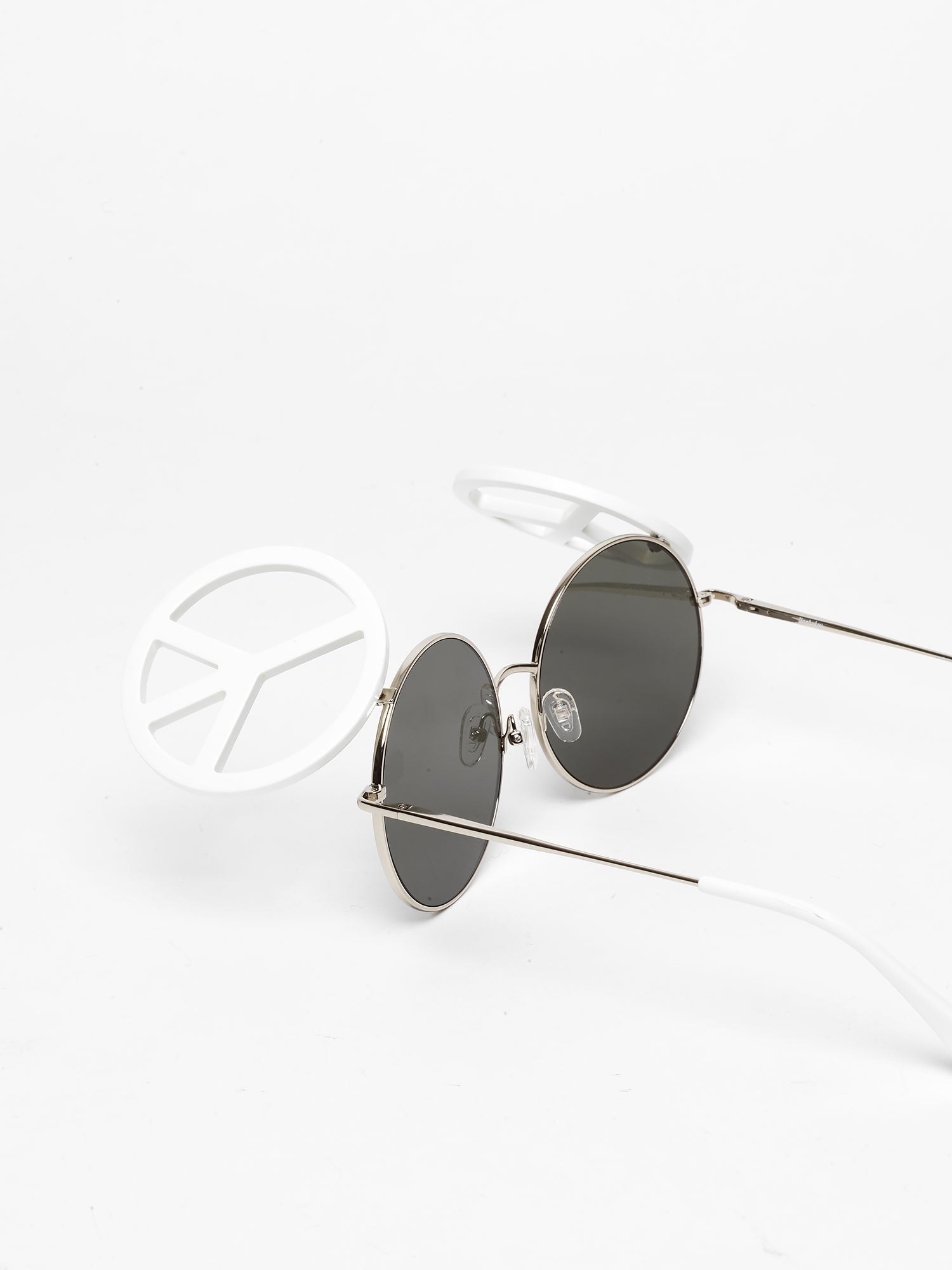 Embrace positive energy with Yazbukey's fun and playful Peace sign sunglasses. Featuring silver and white frames, these flip-up round sunglasses with grey lenses offer a stylish touch of peace and joy ;-)