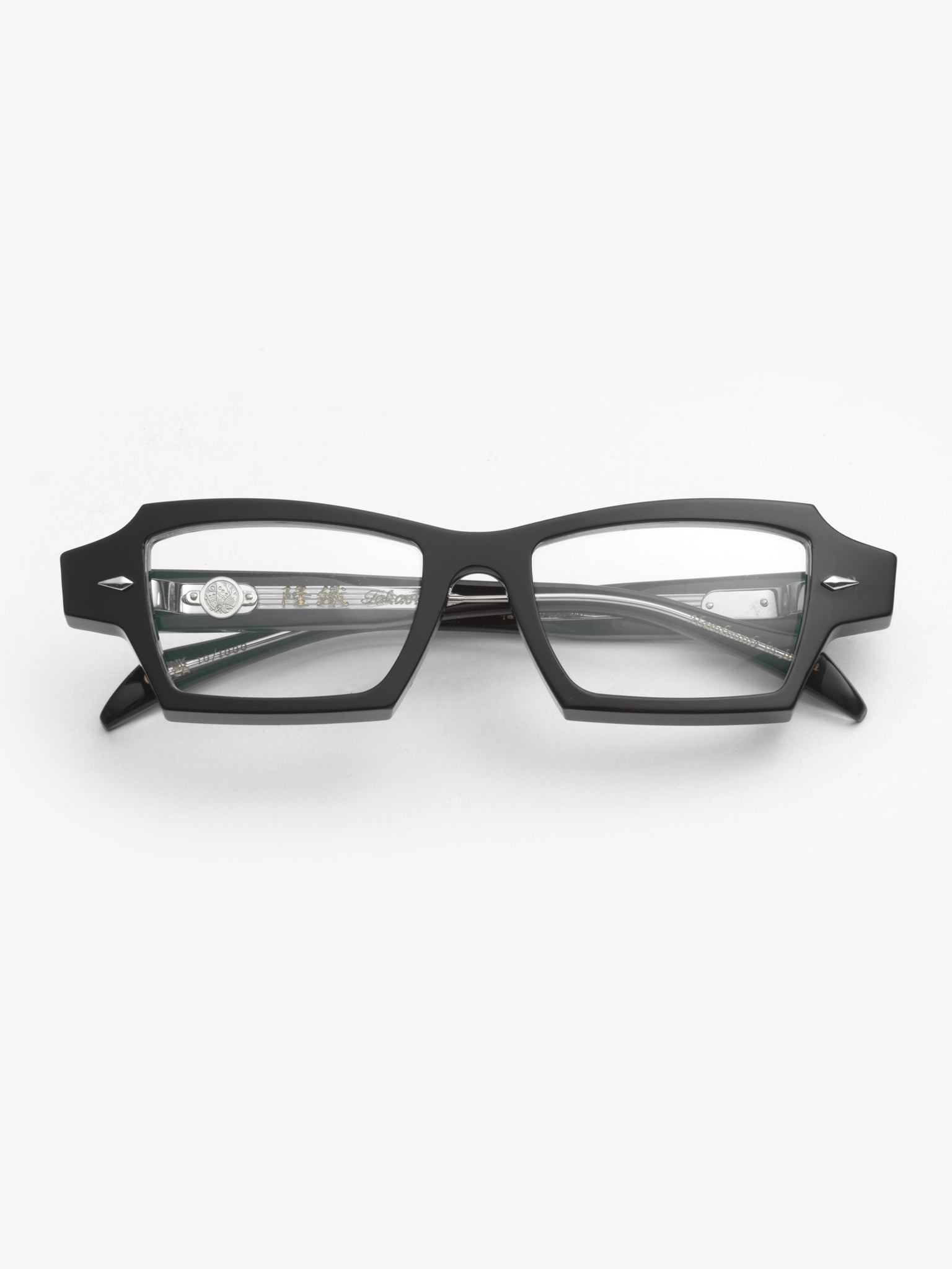 - the ancestral family crest, tracing its heritage to the Middle Ages, elegantly adorns the right temple of the Beta Titanium hinges.