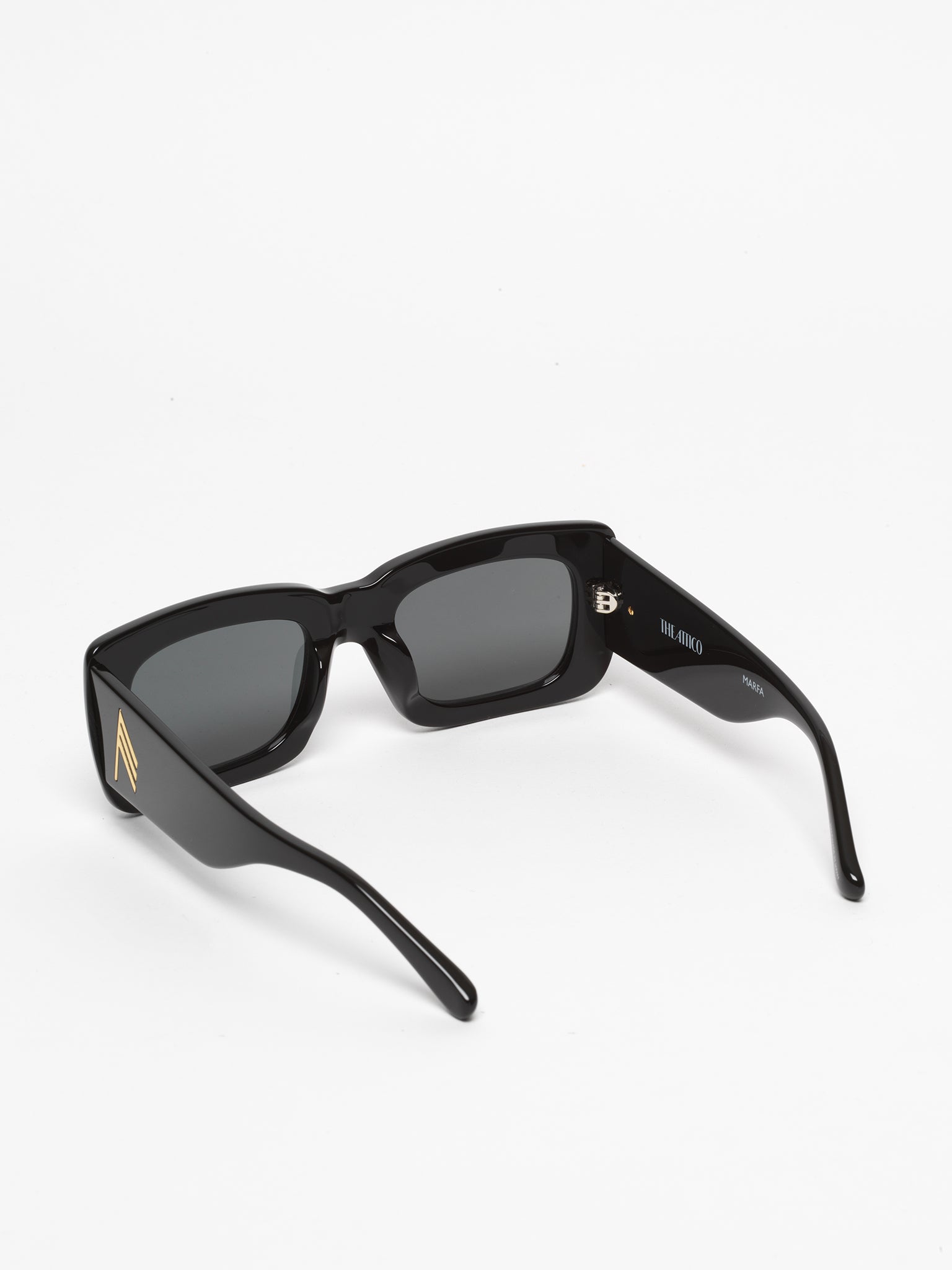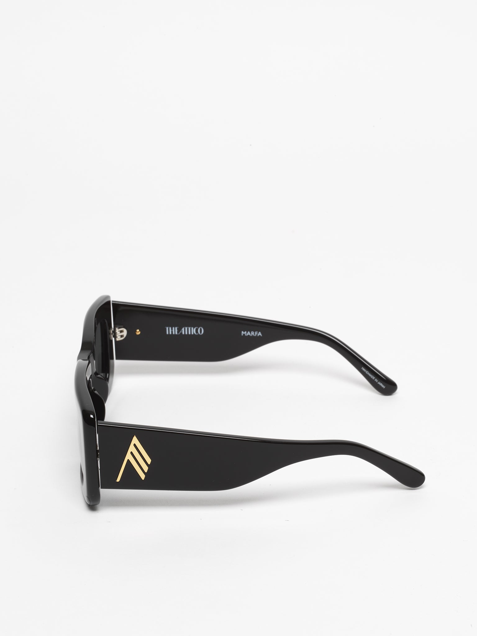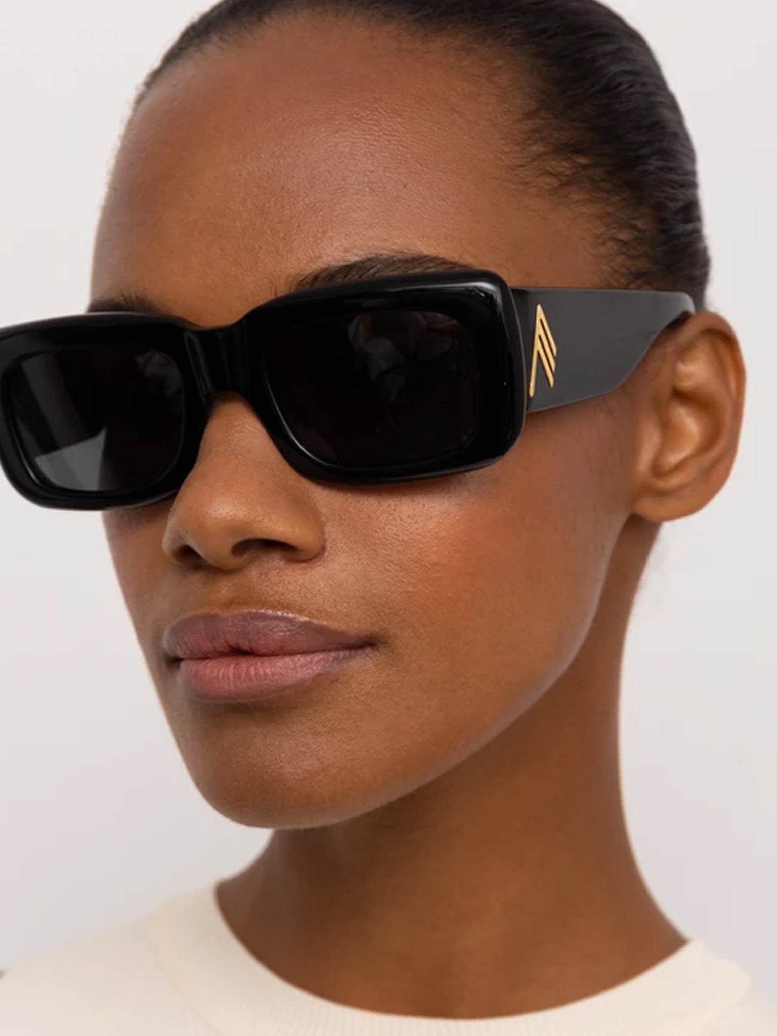 The Marfa from the Linda Farrow collaboration with The Attico features a sculpted square silhouette in chunky blue acetate, highly polished for a standout look. It's complete with gold "A" branding to the temple for a glamorous finish.