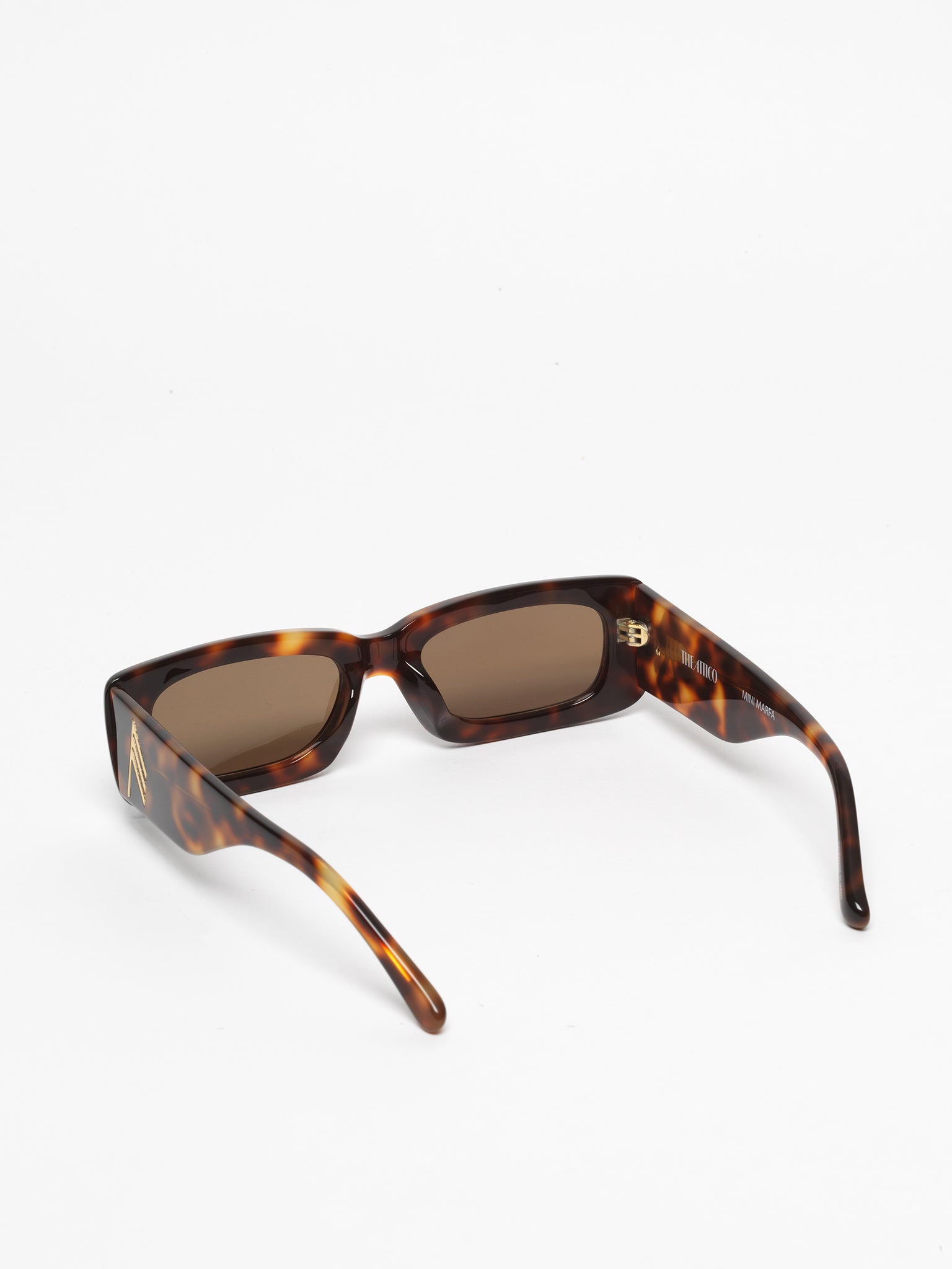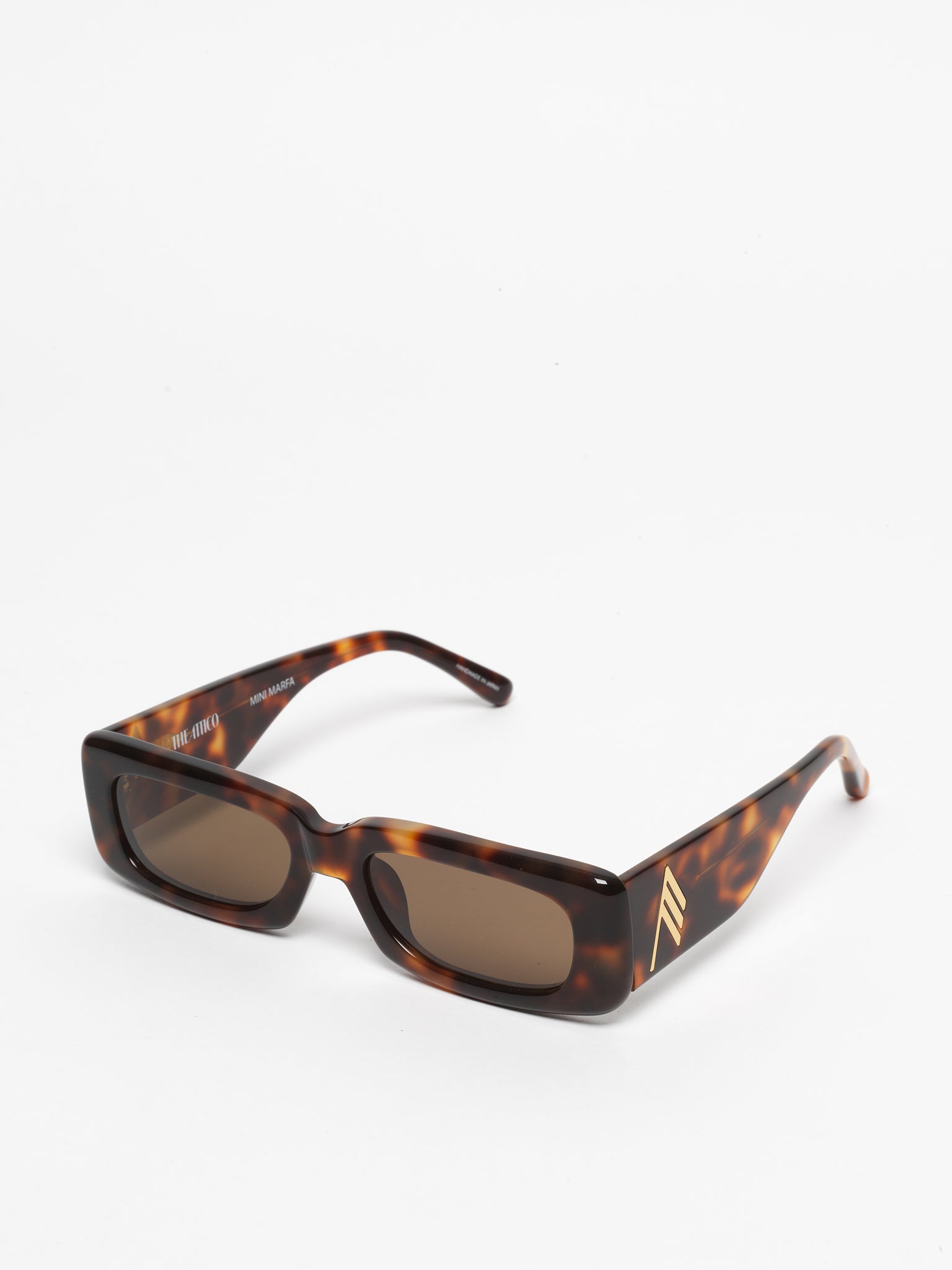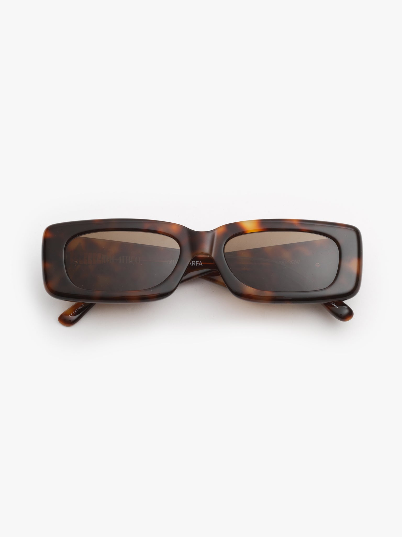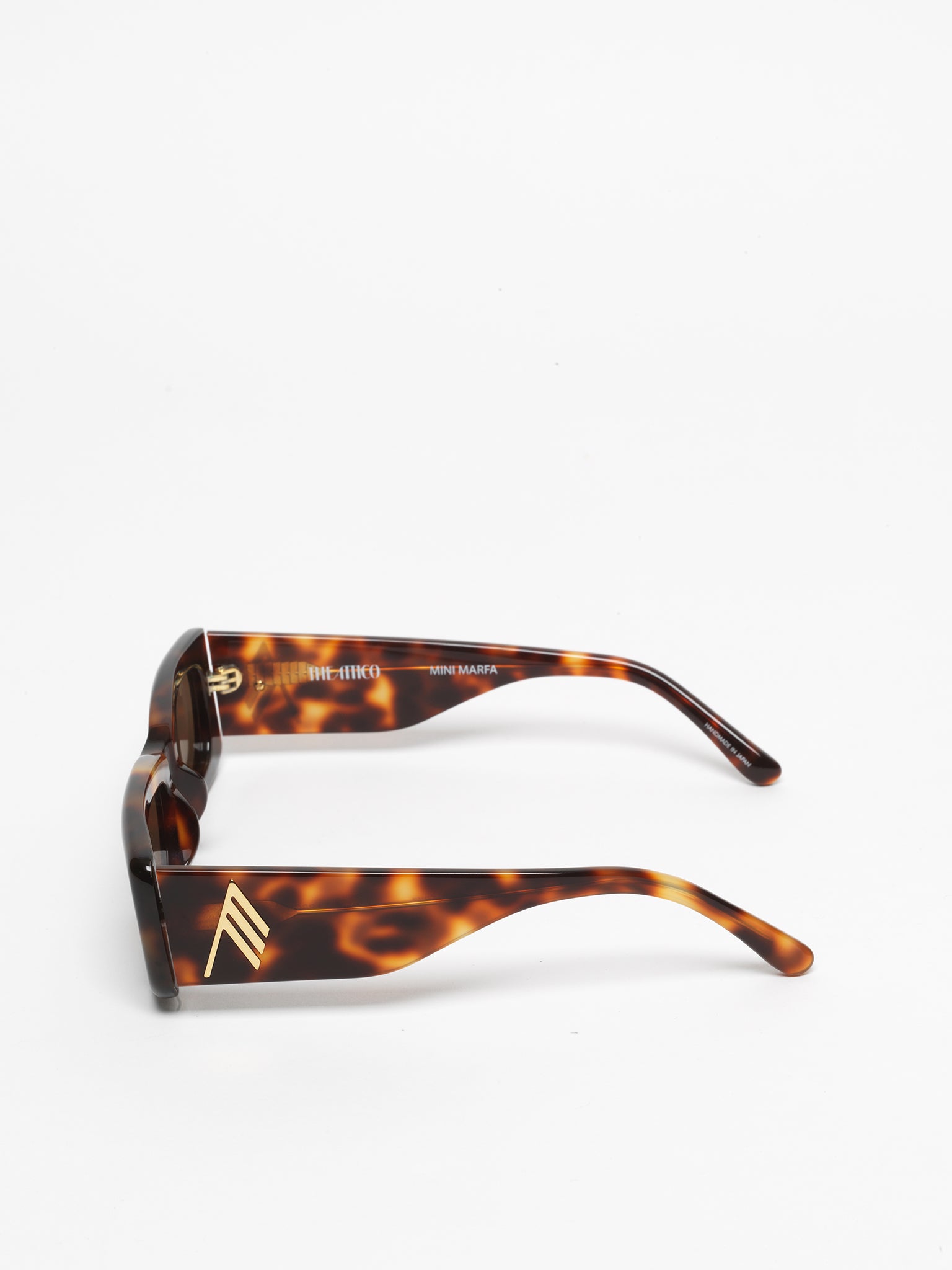 Introducing the Mini Marfa - little sister to the Marfa frame from the Linda Farrow collaboration with Milan fashion house The Attico. The slim rectangular sunglasses are hewn from tortoiseshell acetate, beveled and highly polished for a luxurious soft edge finish. Wide temples are detailed with gold branding and brown nylon lenses offer 100% UV protection. Sculpted nose pads and temple tips provide comfort to the wearer.
