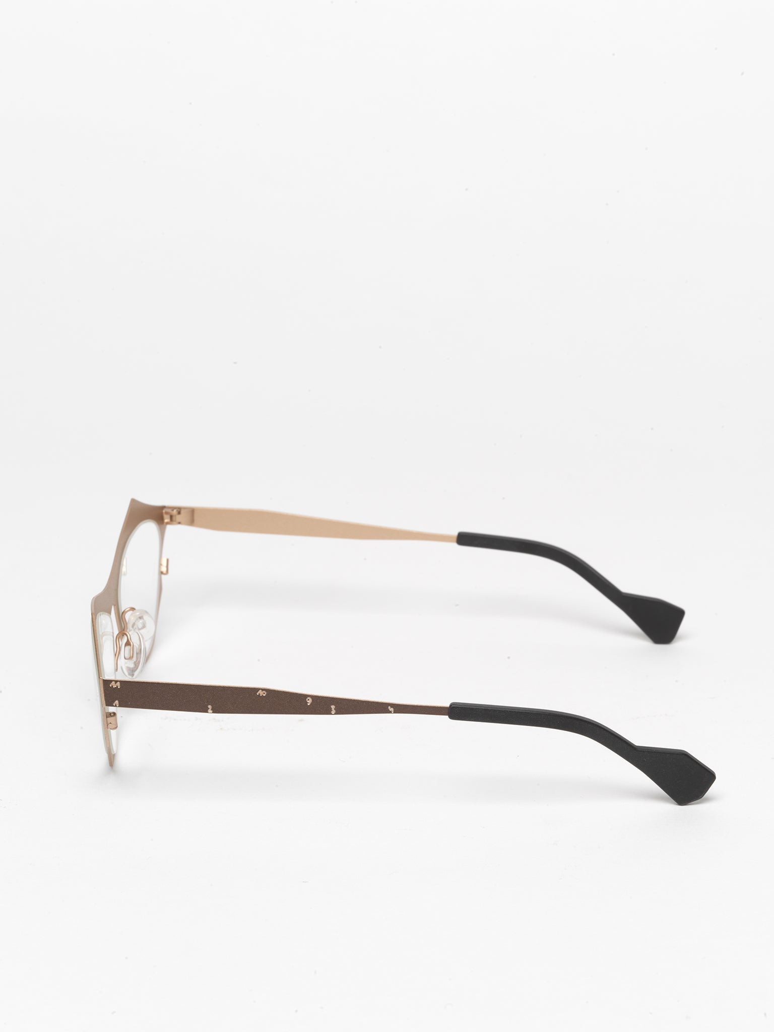 Modern and gentle cat-eye silhouette that features the idea of connecting the dots (small numbers engraved on the frame) to represent a drawing.