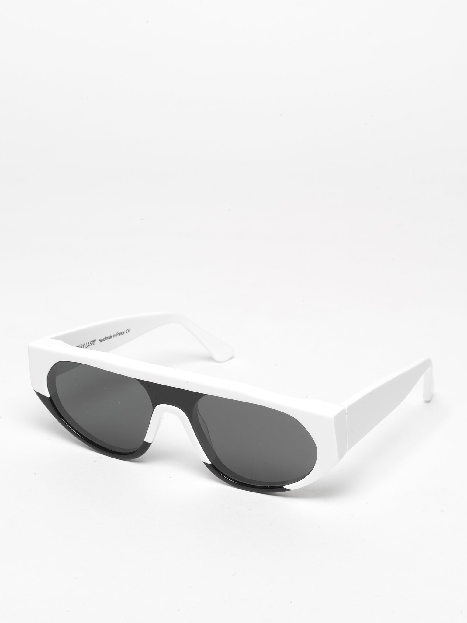 Handcrafted in France from authentic Italian acetate, KANIBALY is a retro-futuristic shield frame complemented by an edgy acetate collage look.
