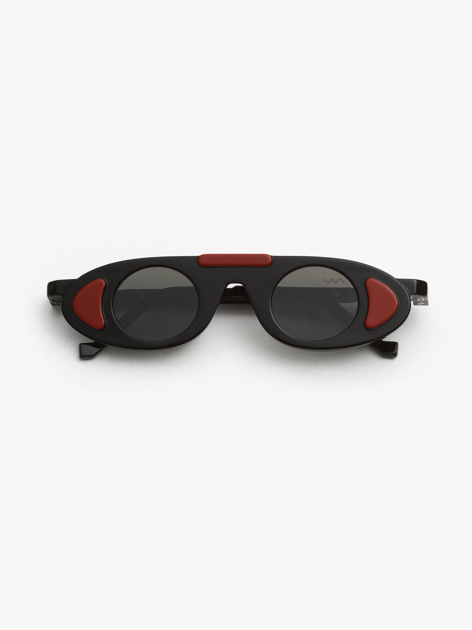 One-of-a kind straight frame made of bio acetate featuring a double combination of colors.
