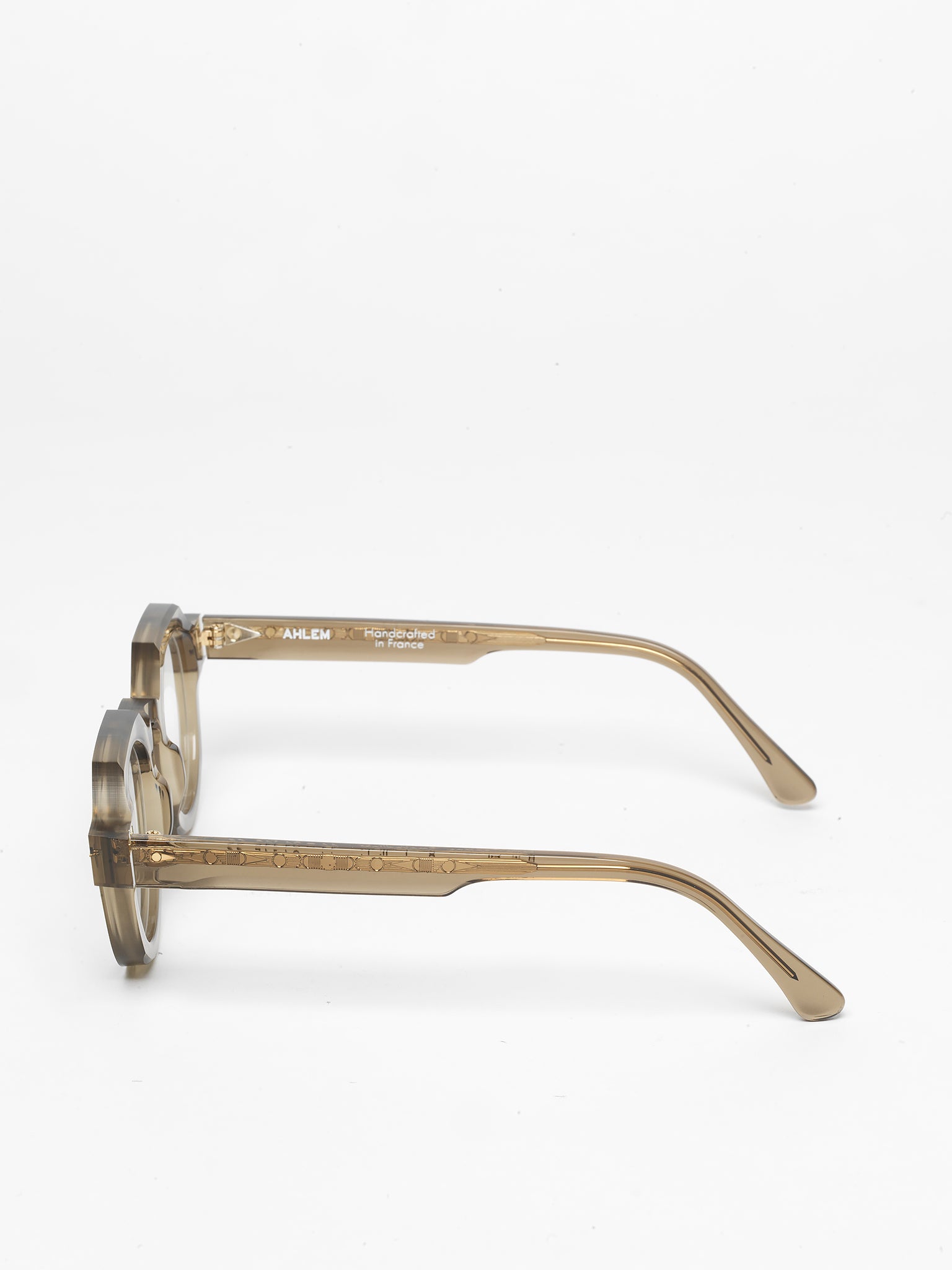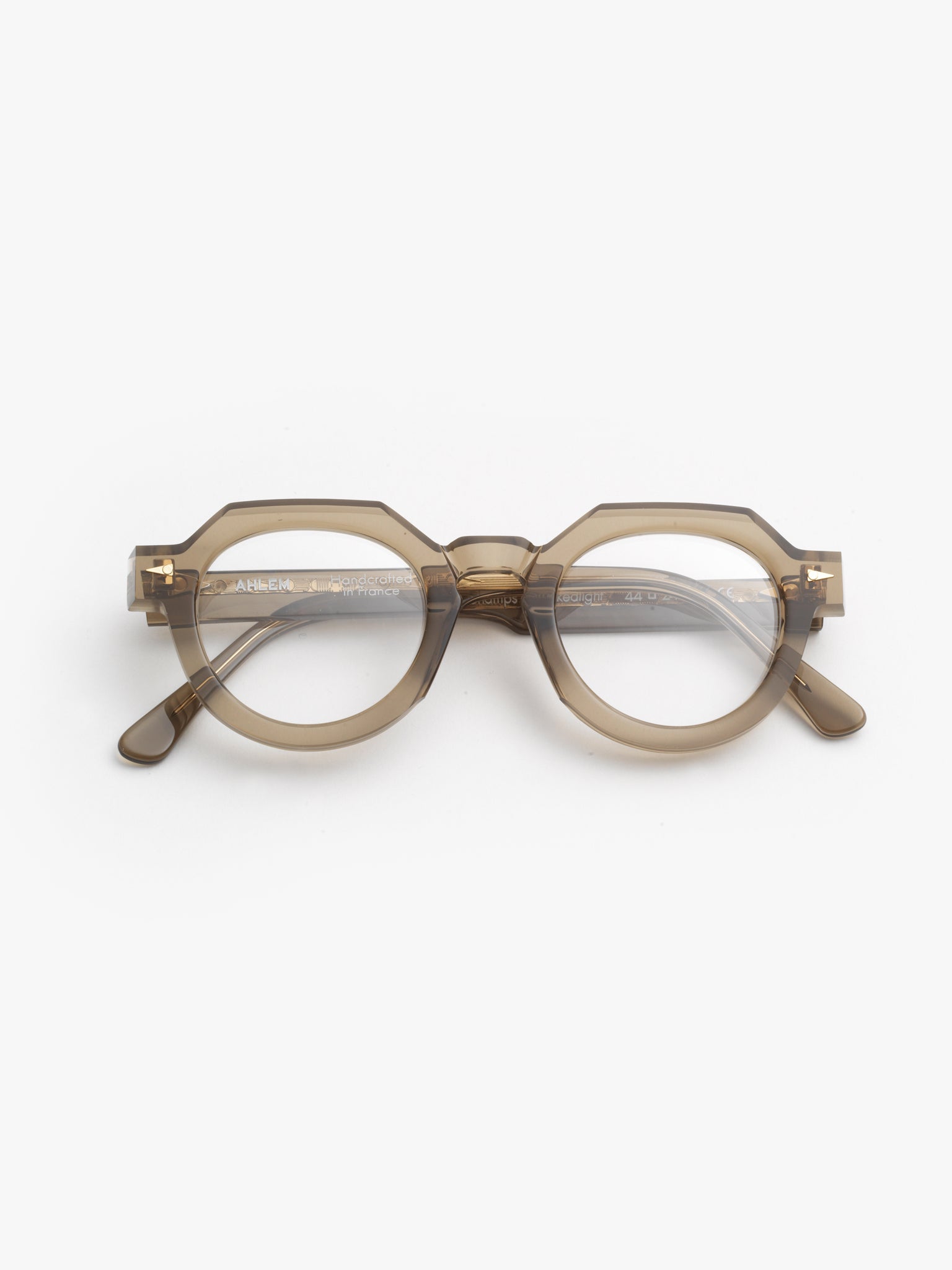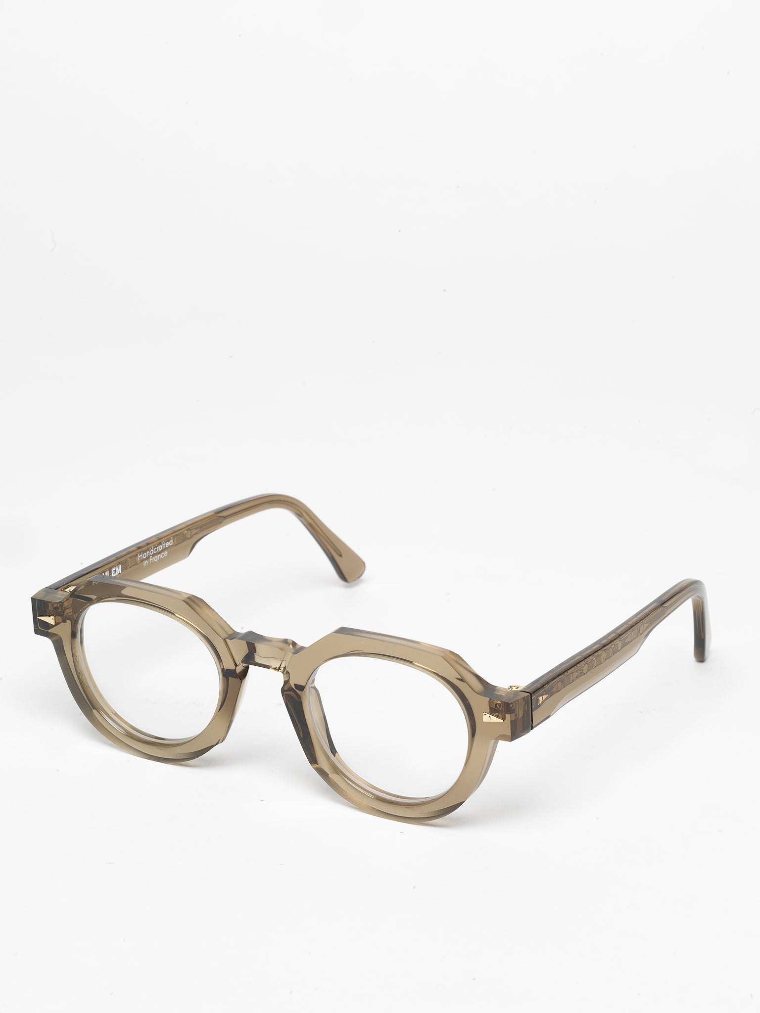 A direct and charming bookish frame with real presence and originality. Thick acetate, unconventional lines and a refined keyhole bridge team up in a style that marries intelligence and sophistication.