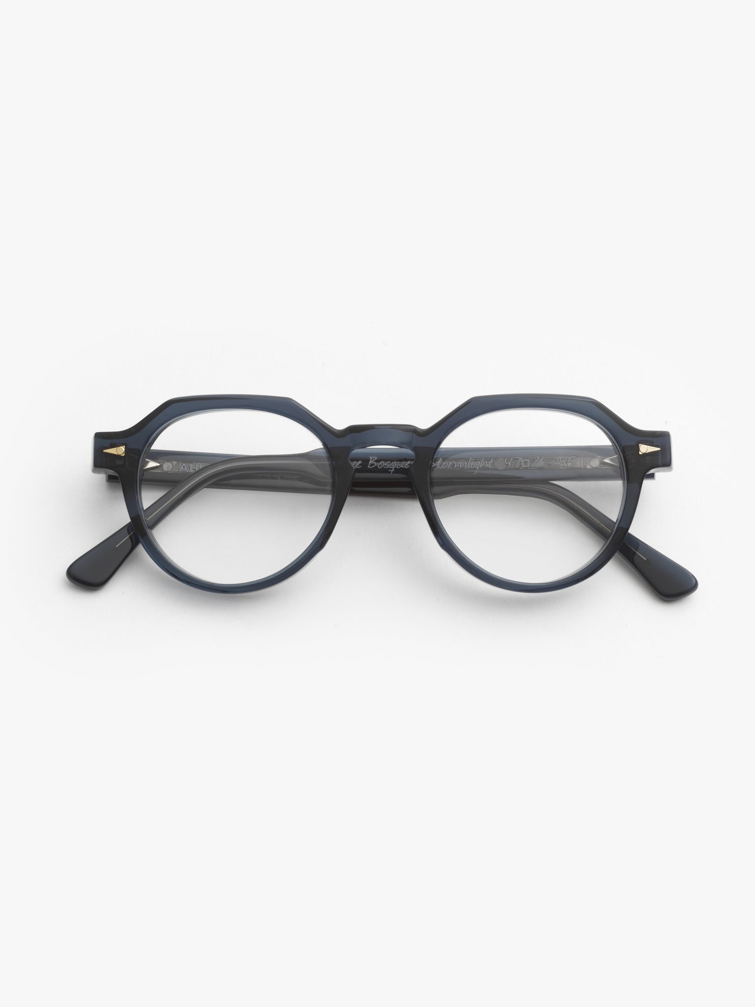 Rue Bosquet’s striking shape-round, but geometric—is simultaneously classic and current. Face-on, the polished acetate frame presents a slim silhouette, but depth is revealed in the side view and along the beveled temples. The keyhole bridge is sculpted for an easy and secure fit.