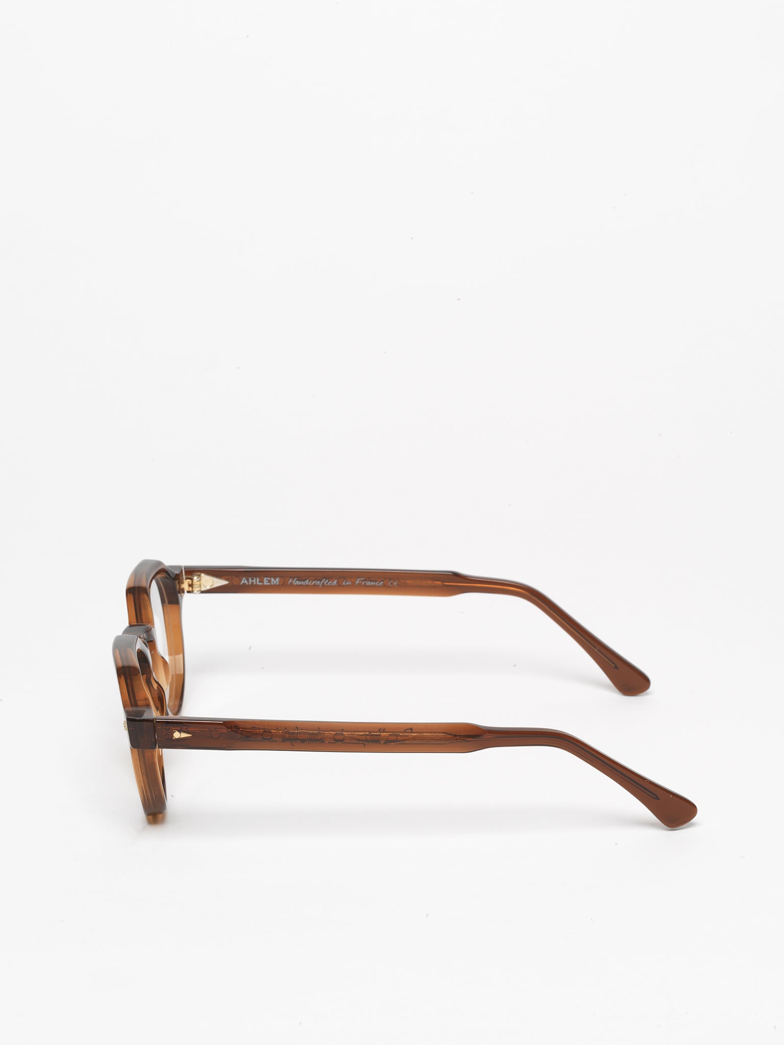 Rue Bosquet’s striking shape-round, but geometric—is simultaneously classic and current. Face-on, the polished acetate frame presents a slim silhouette, but depth is revealed in the side view and along the beveled temples. The keyhole bridge is sculpted for an easy and secure fit.