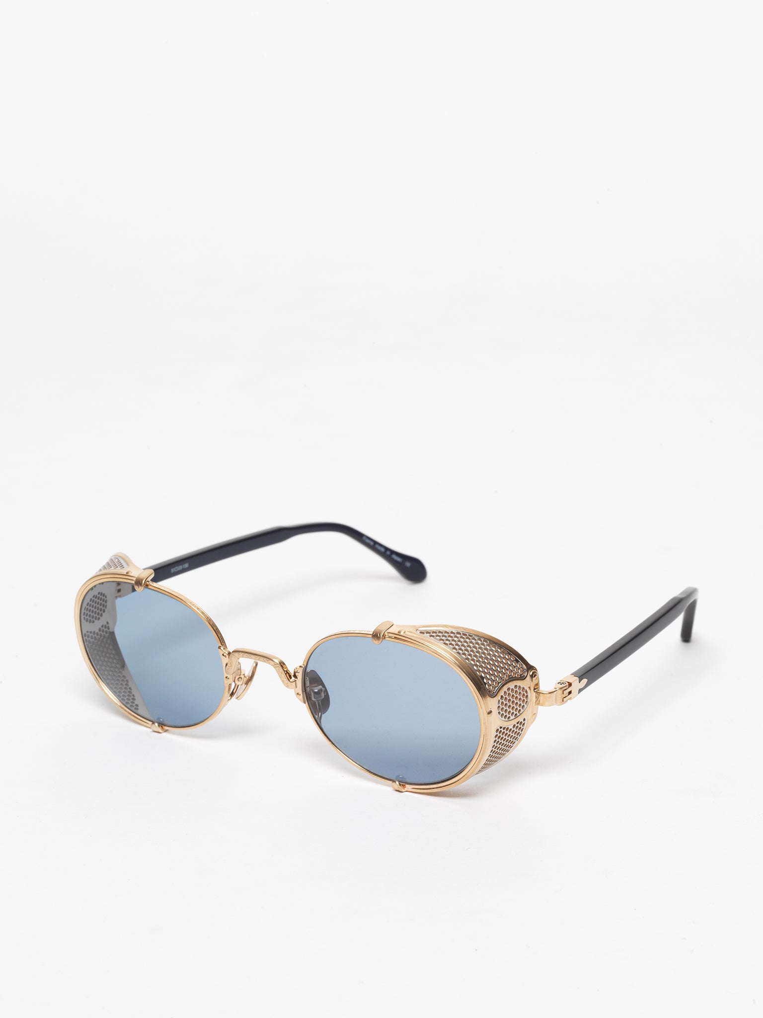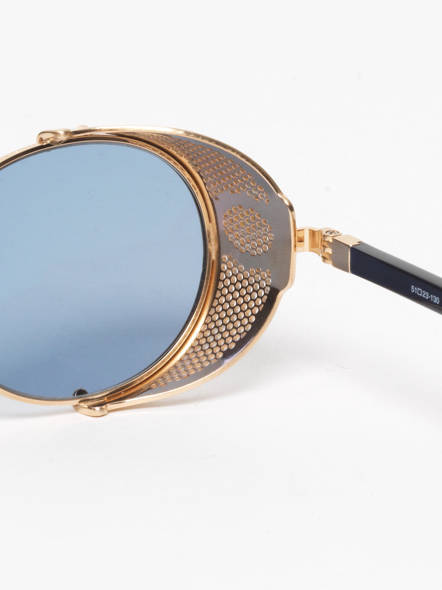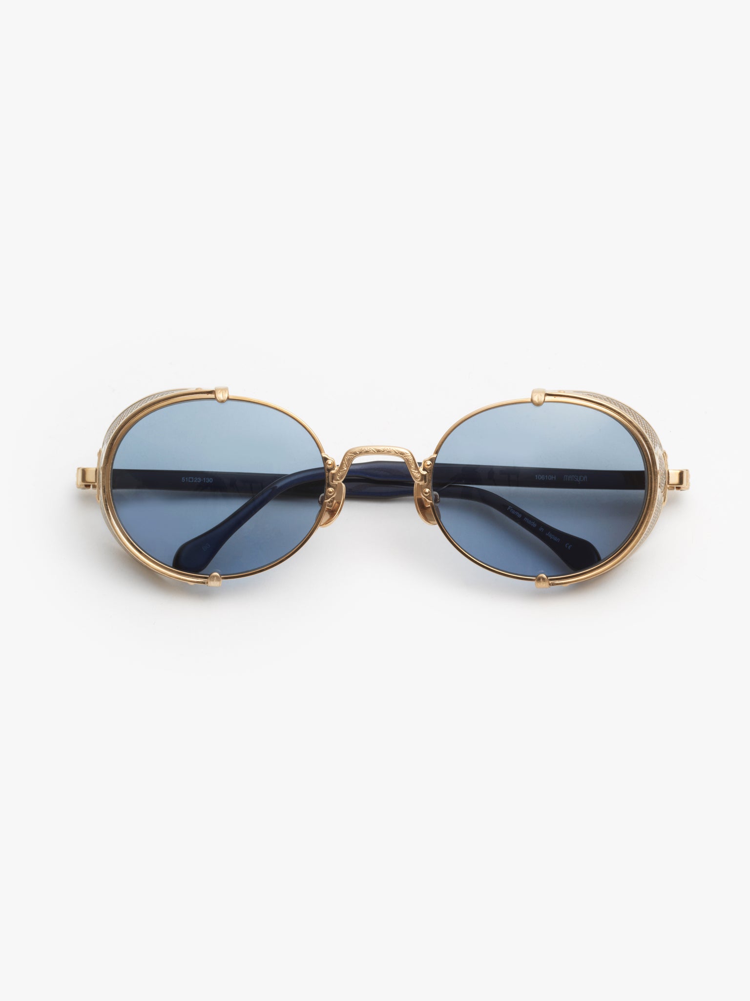 Inspired by safety glasses worn during the machine era of the early 20th century, the 10610H features a round lens shape with contrasting perforated side shield and sculpted Japanese acetate temples.