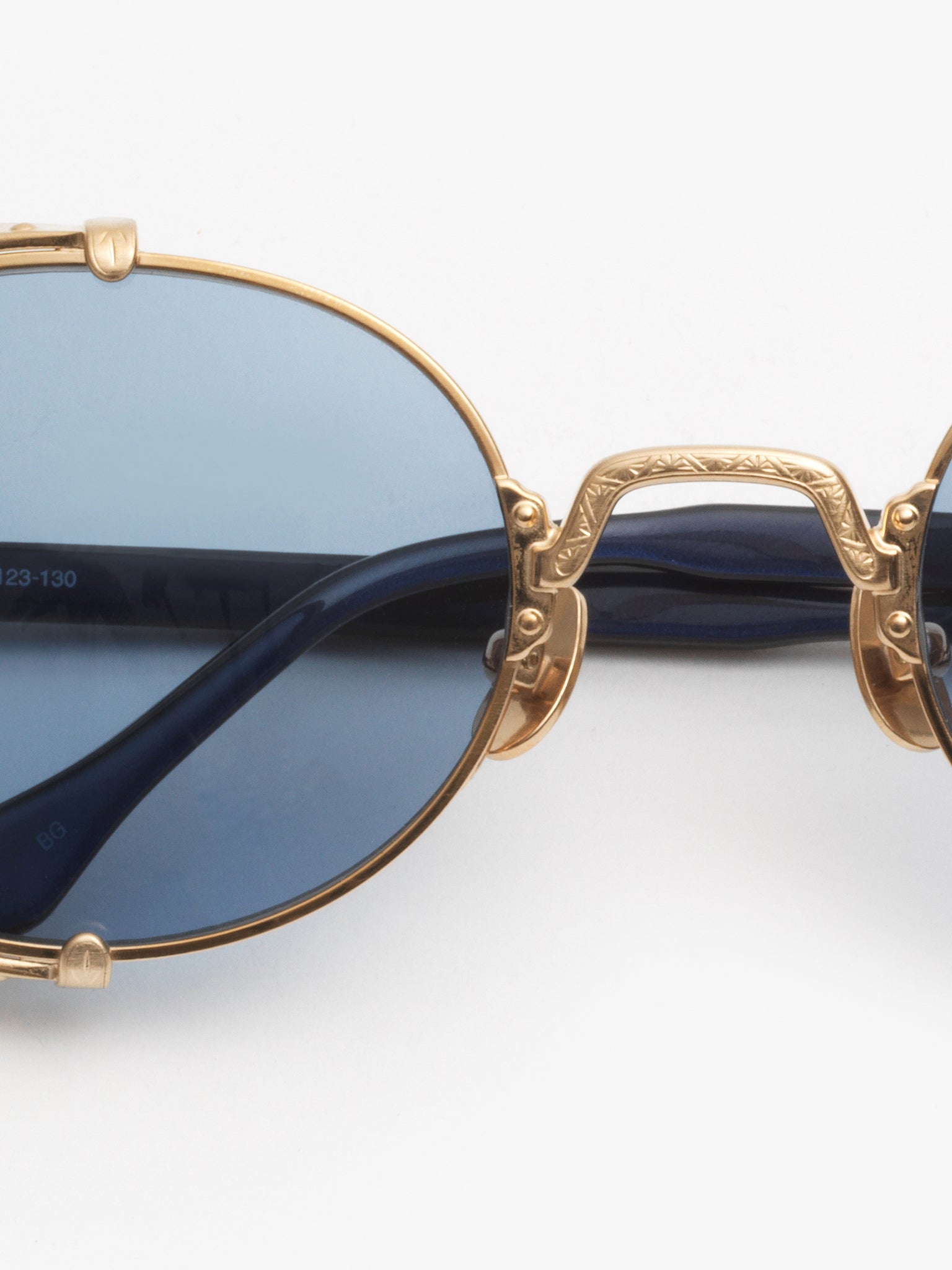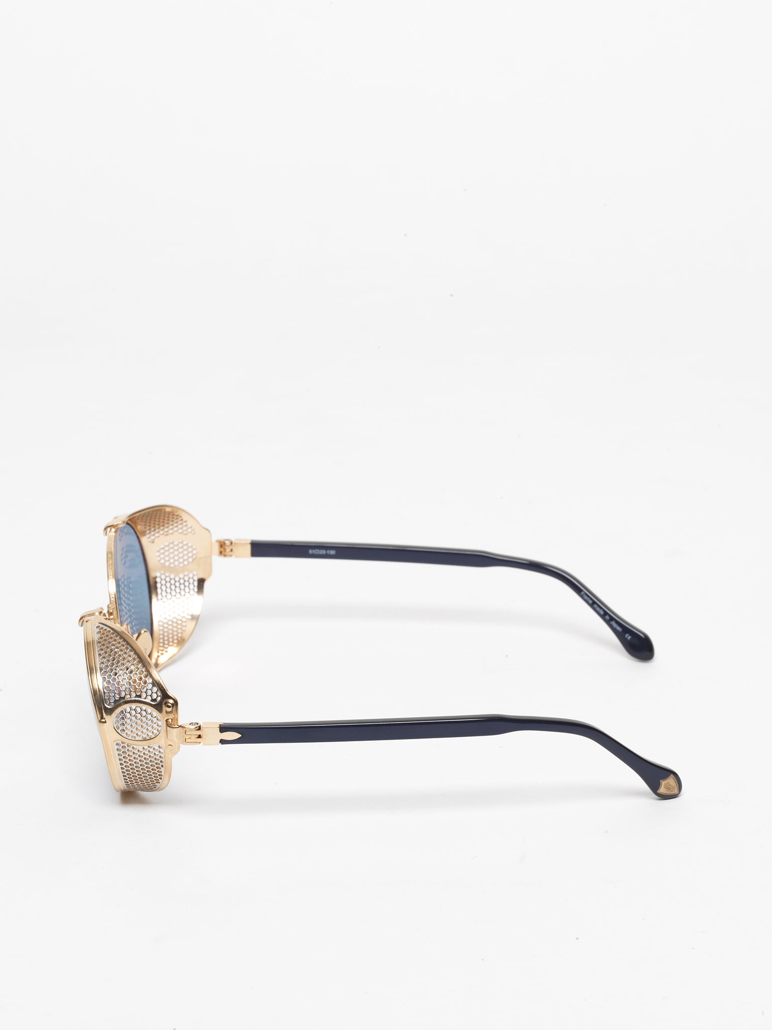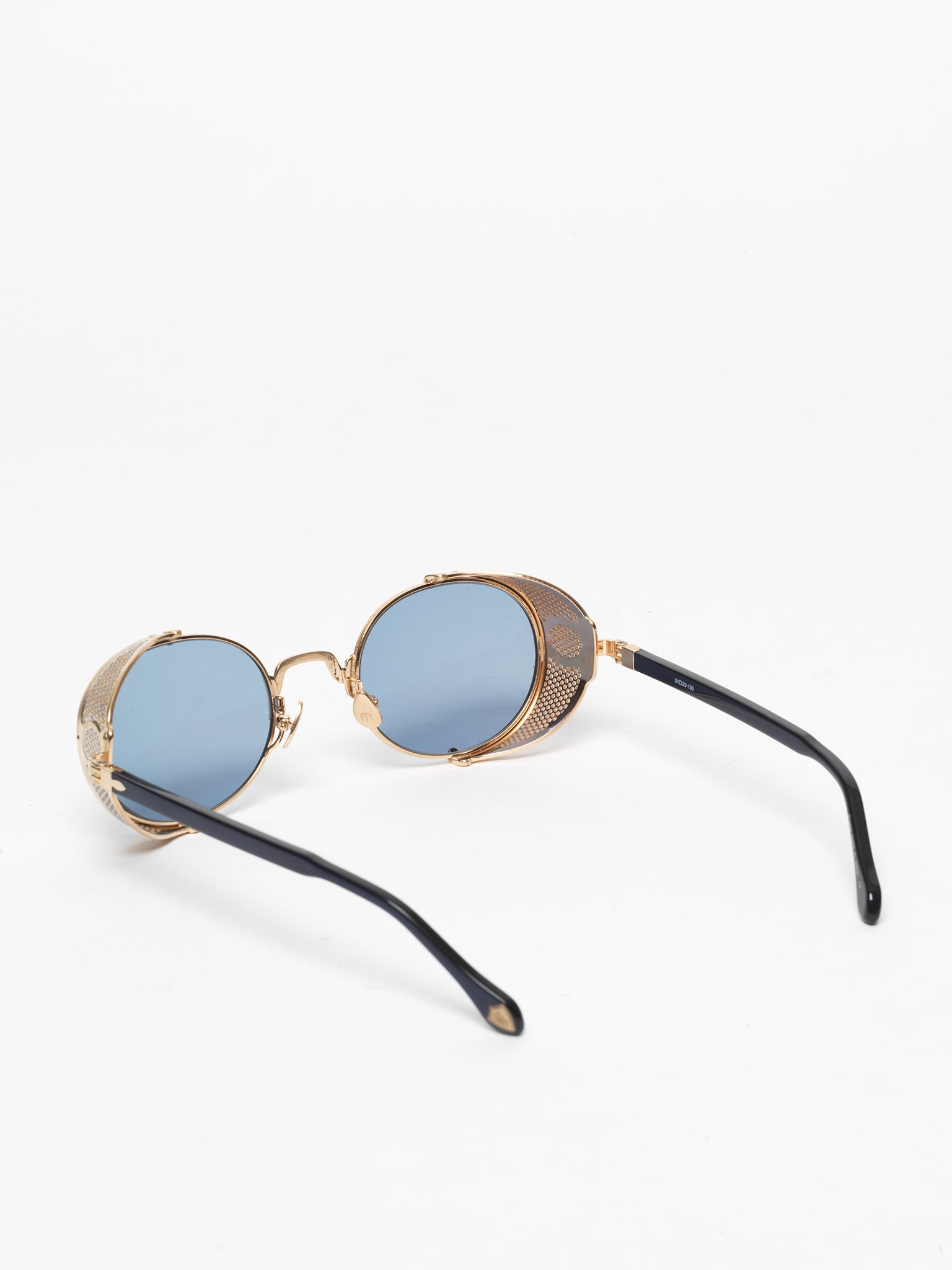 Inspired by safety glasses worn during the machine era of the early 20th century, the 10610H features a round lens shape with contrasting perforated side shield and sculpted Japanese acetate temples.