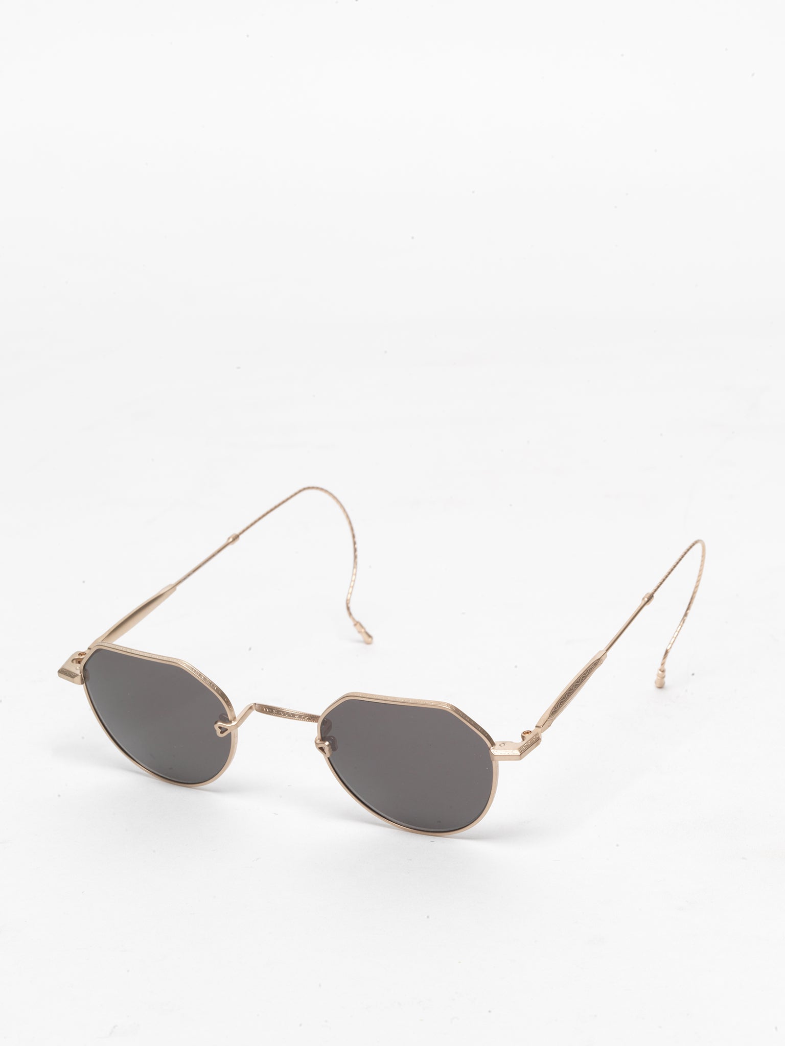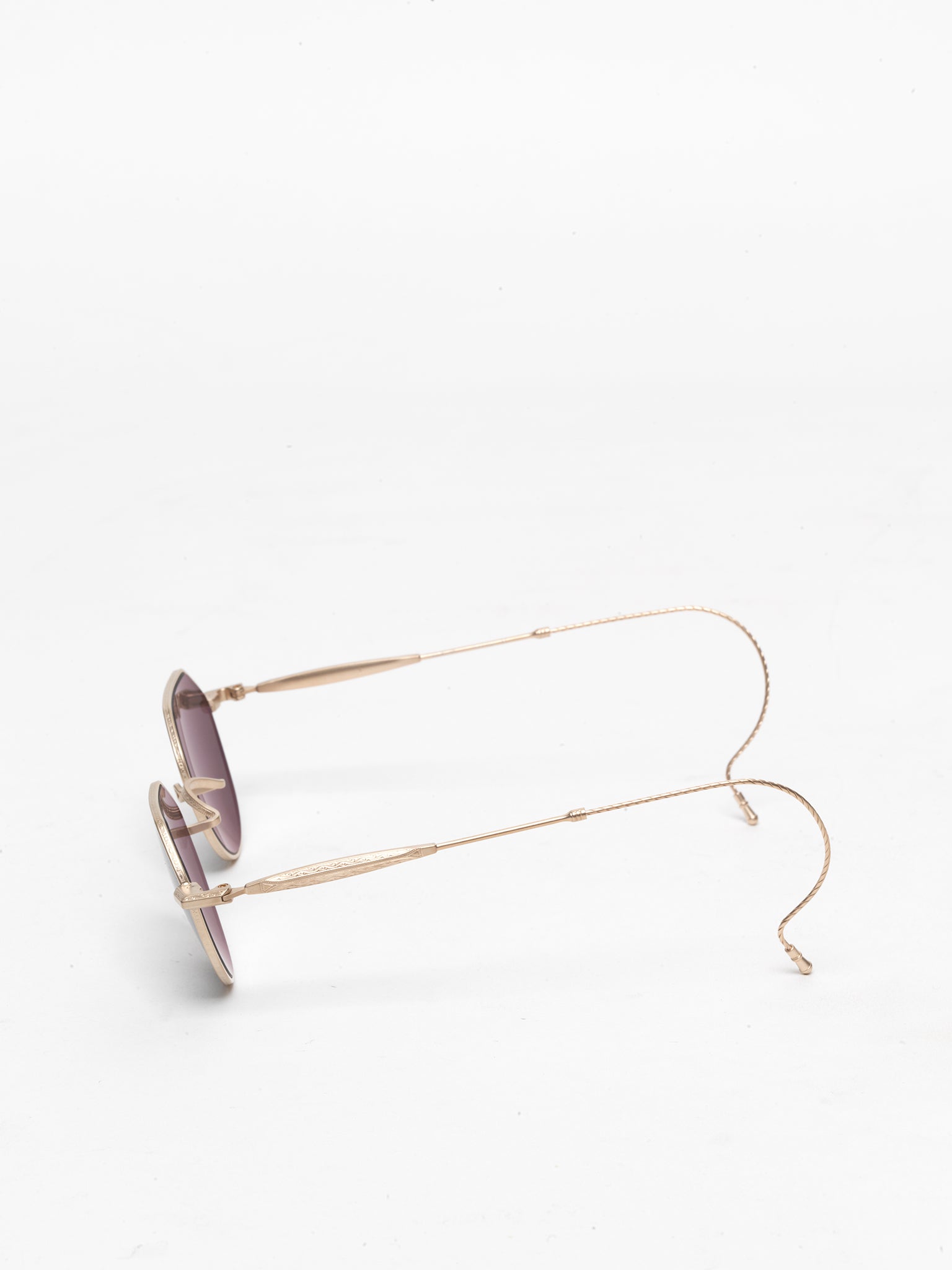 They feature lightweight antique gold titanium structure, curlside temple design, and grey lens with 100% UV protection.