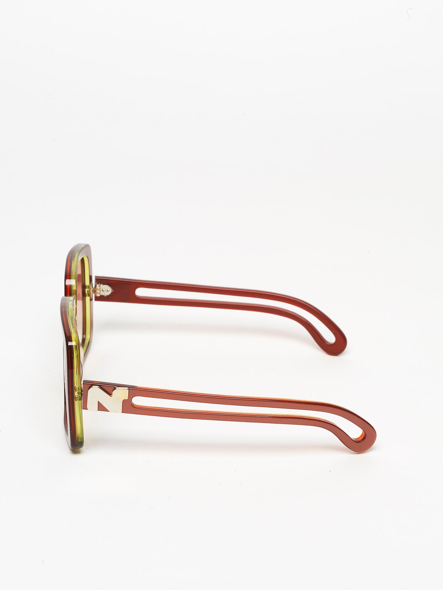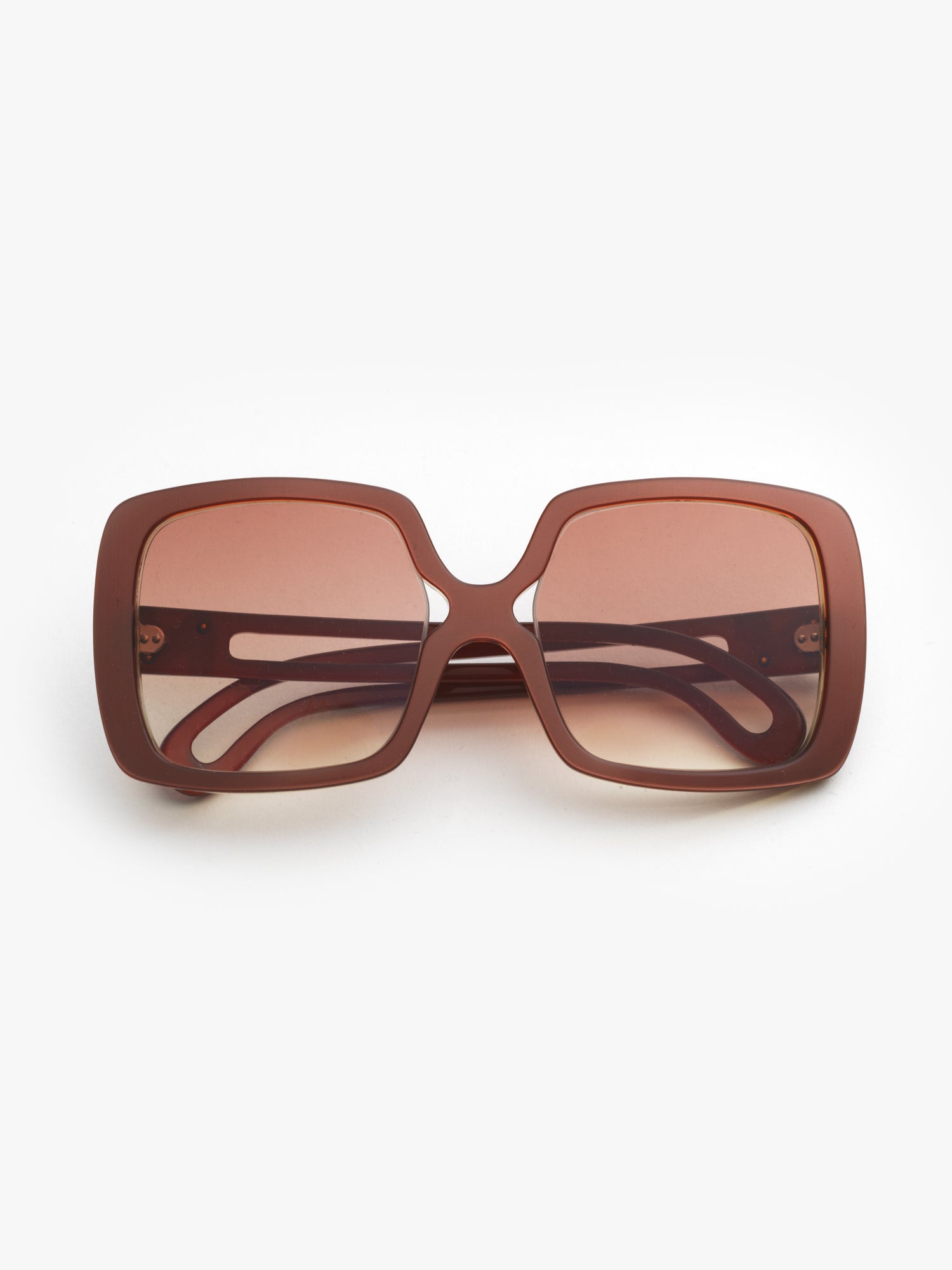 Nina Ricci / 70s Oversized Square Sunglasses / Metallic Pink
