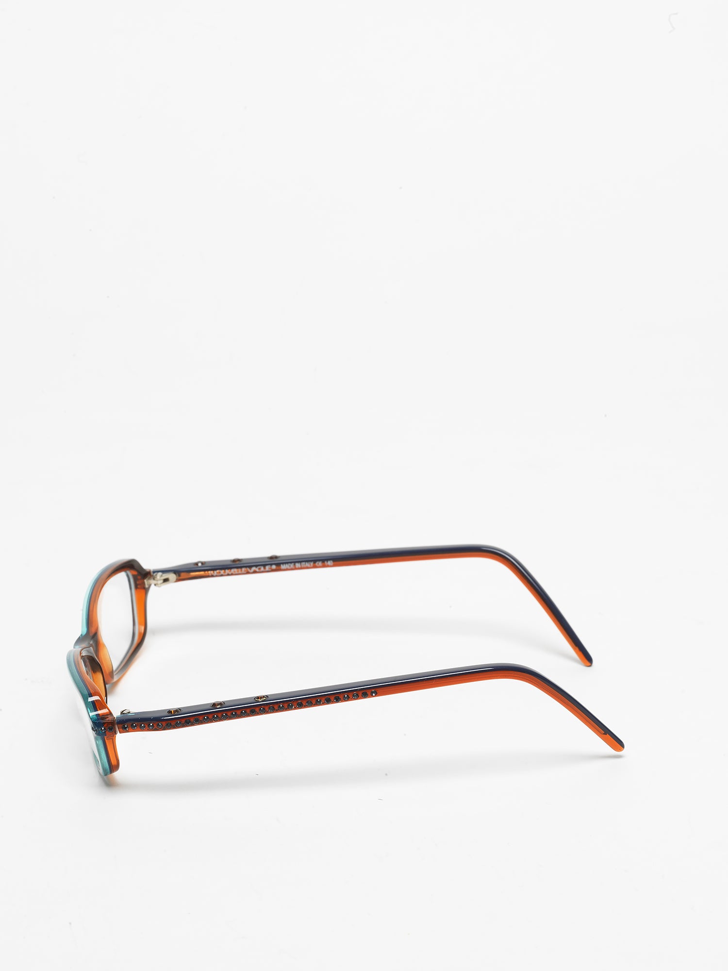 Nouvelle Vague is an example of unconventional Italian design that spanned the 70s, 80s, and 90s, reaching the early 2000s with the creation of eyewear in shapes and colors unmatched in imagination. Nouvelle Vague introduced the first glasses adorned with gold, rhinestones, and pearls. As Italians, we can proudly say that this brand represented a visionary dream rooted deeply in traditional eyewear craftsmanship, distinguished by creativity, imagination, the use of high-quality materials, and undeniable technical expertise.