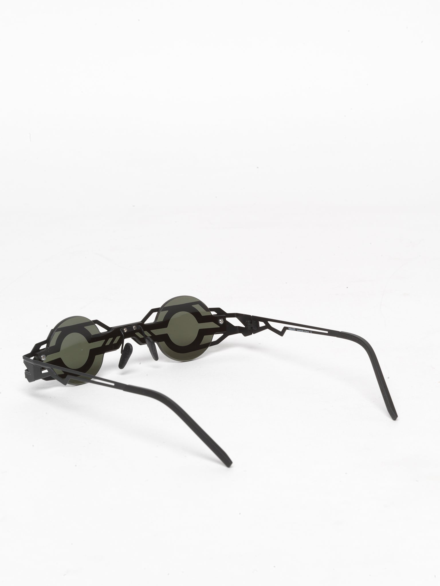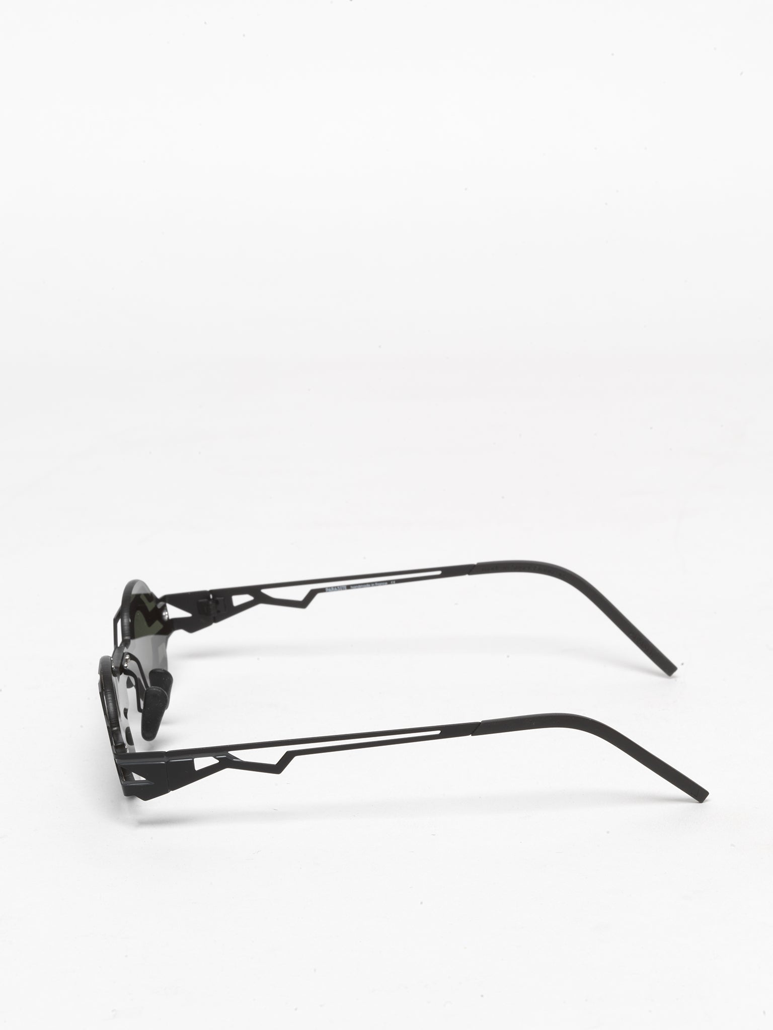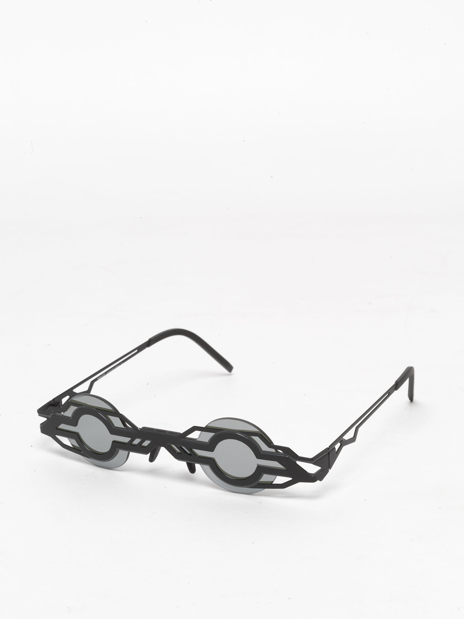 Futuristic sunglasses, truly one of a kind. The frameless lens is embellished with a metal design.