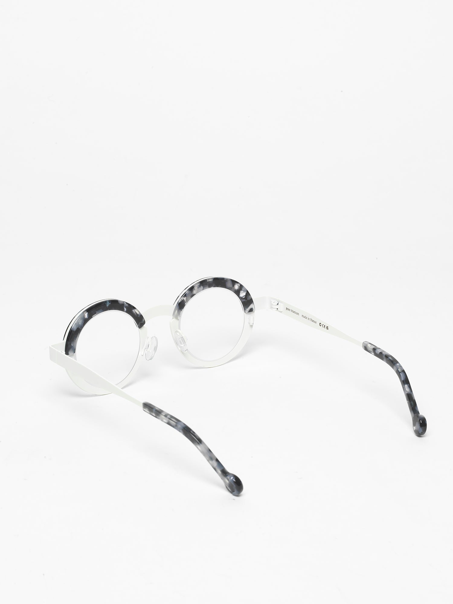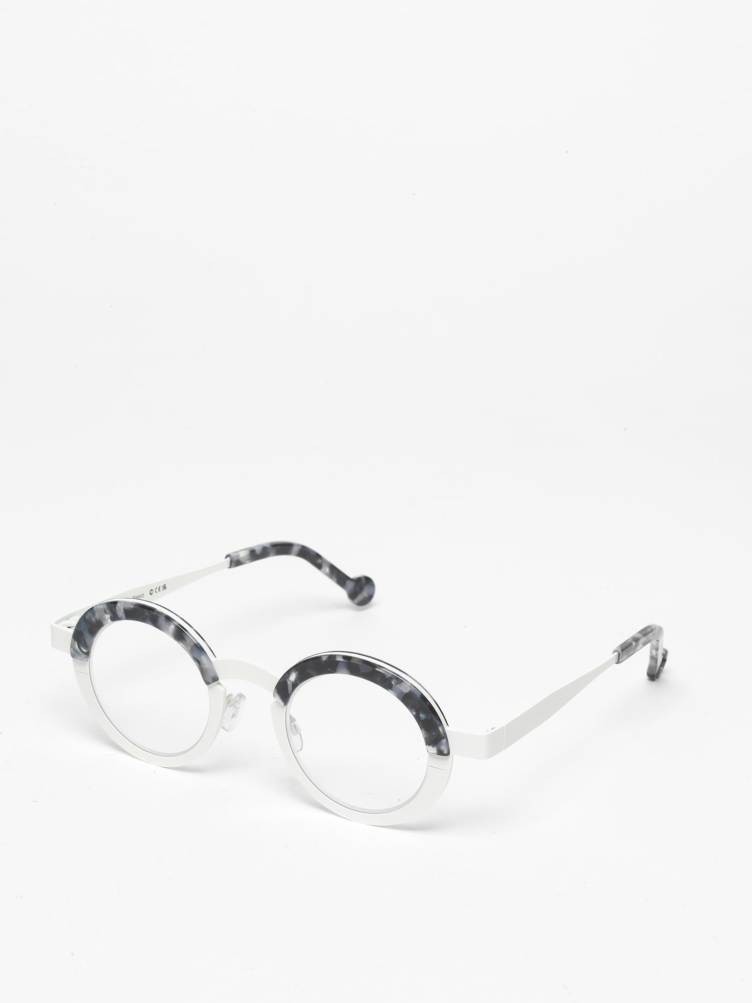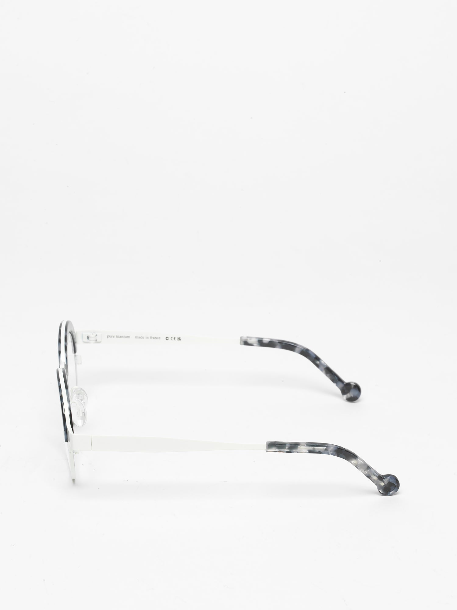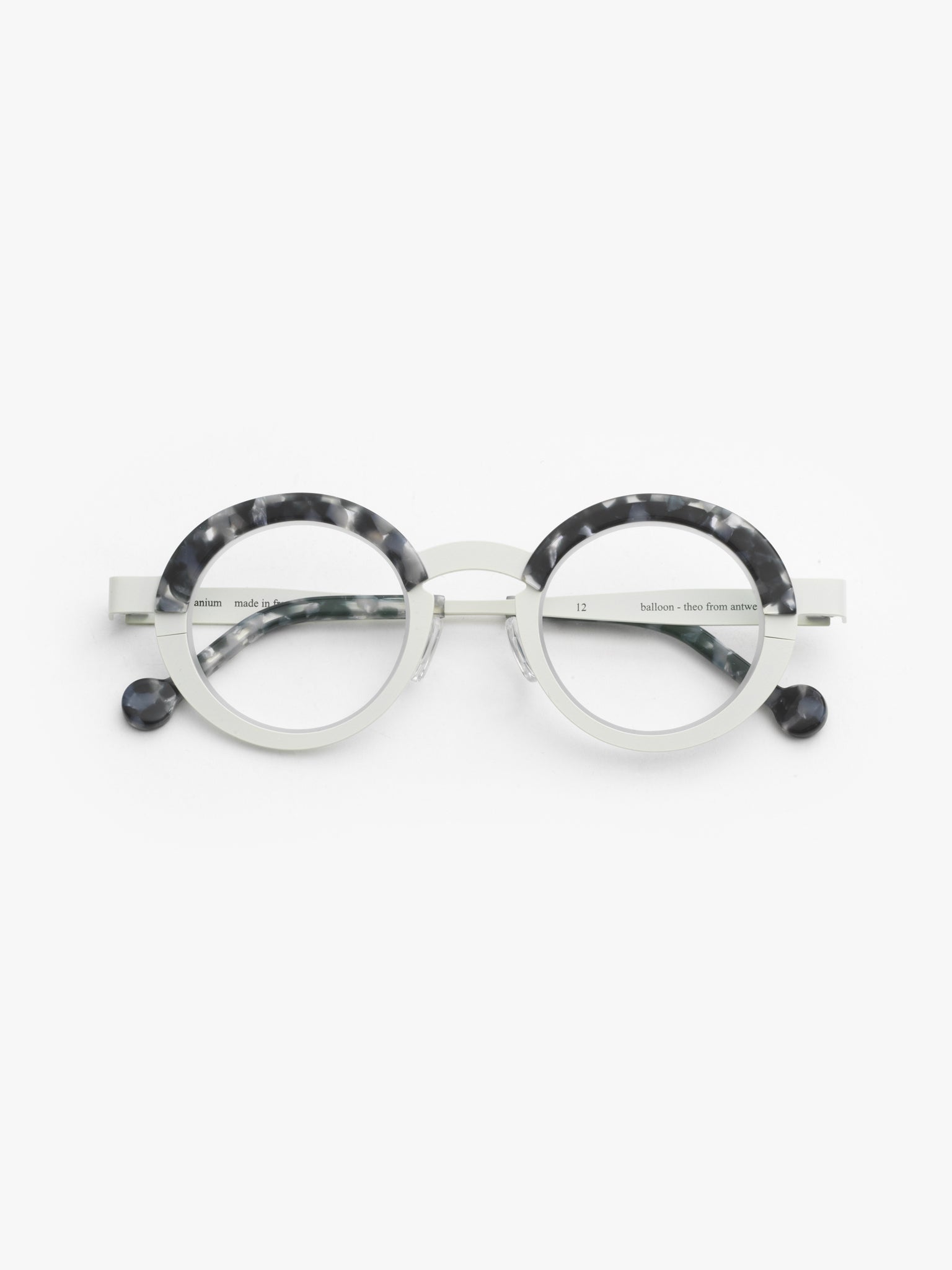 The Balloon model showcases a round design with straight front frame, made from titanium with acetate finishes