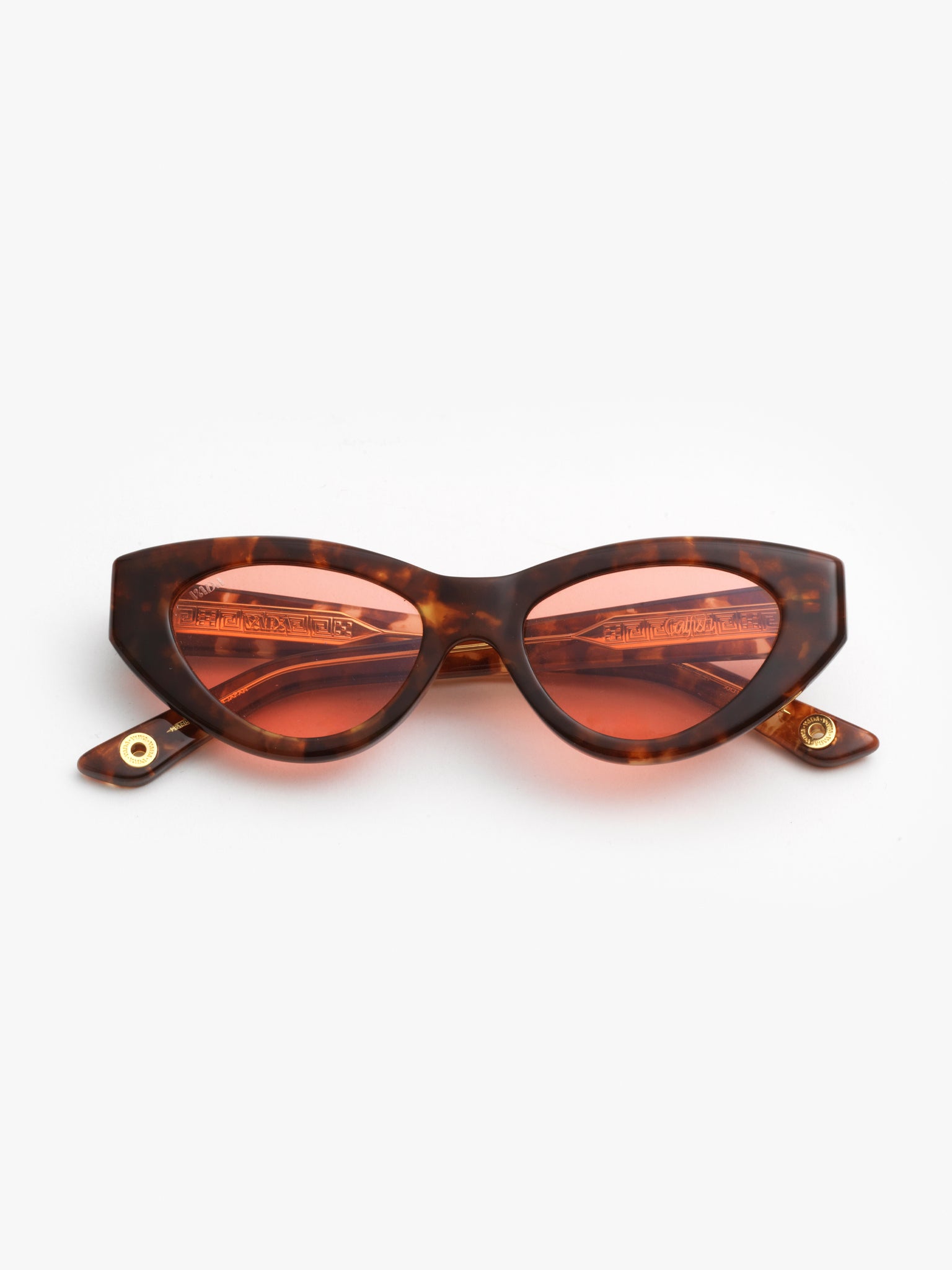 - tear-dropped cateye frame w/ turned-up temples