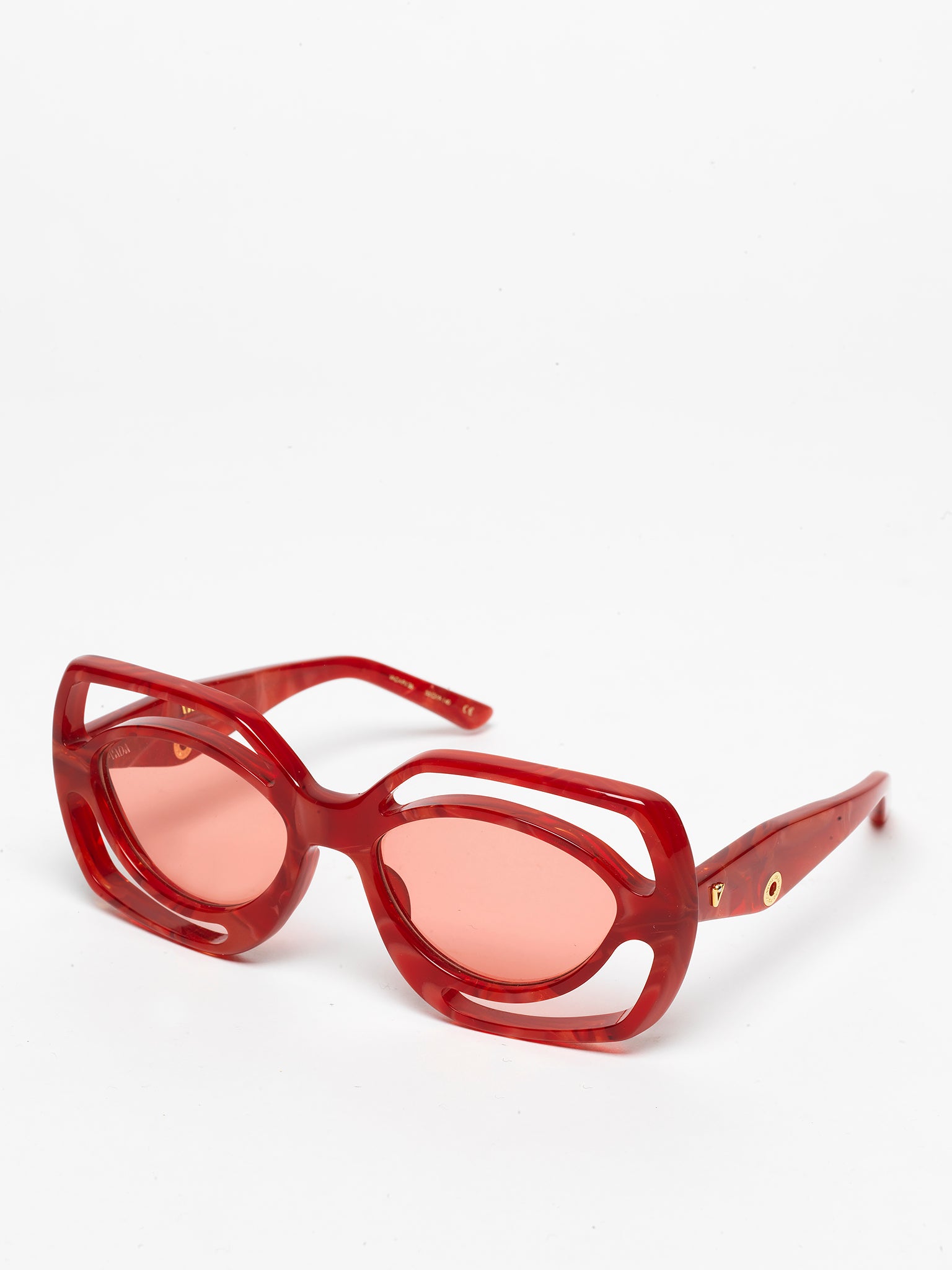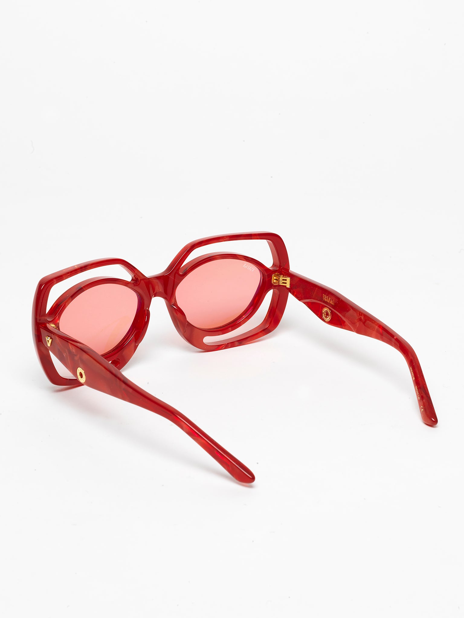 oversized cut-out frame w/ almond lenses and wide wing-tip temple