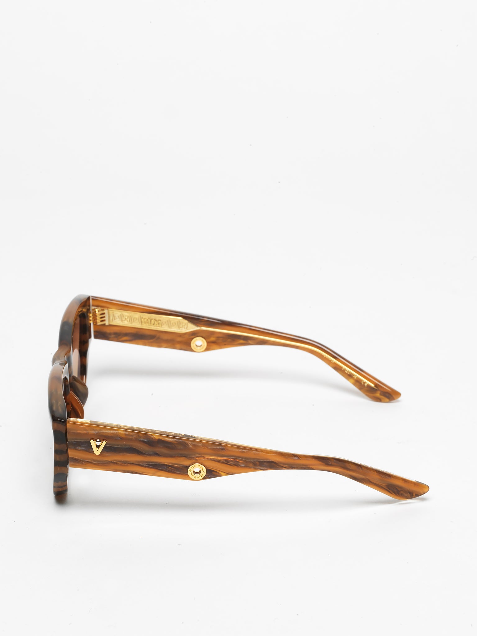 - custom 18k Gold plated VADA logo inlay & Gold filled engraved markings on inner temples