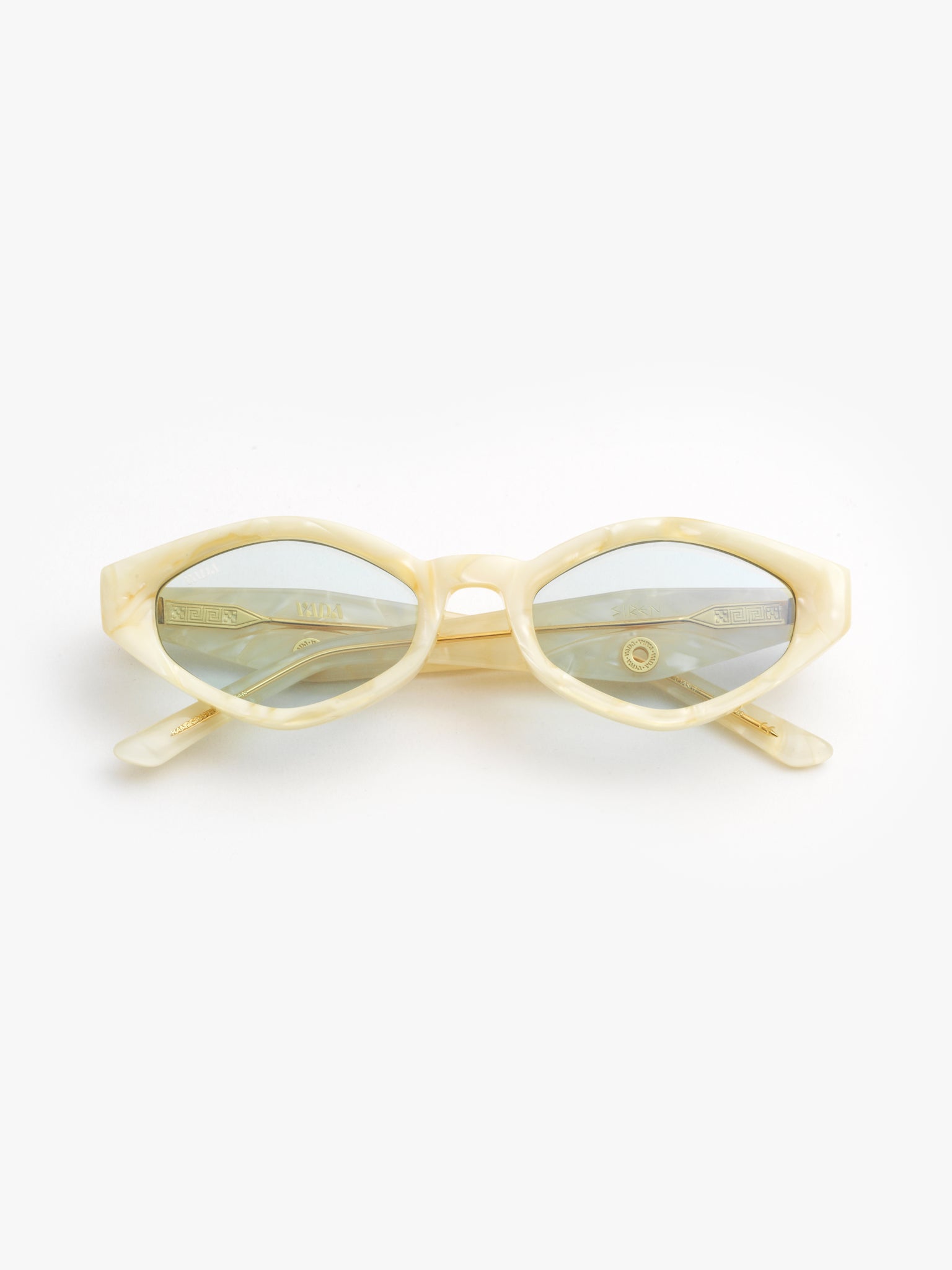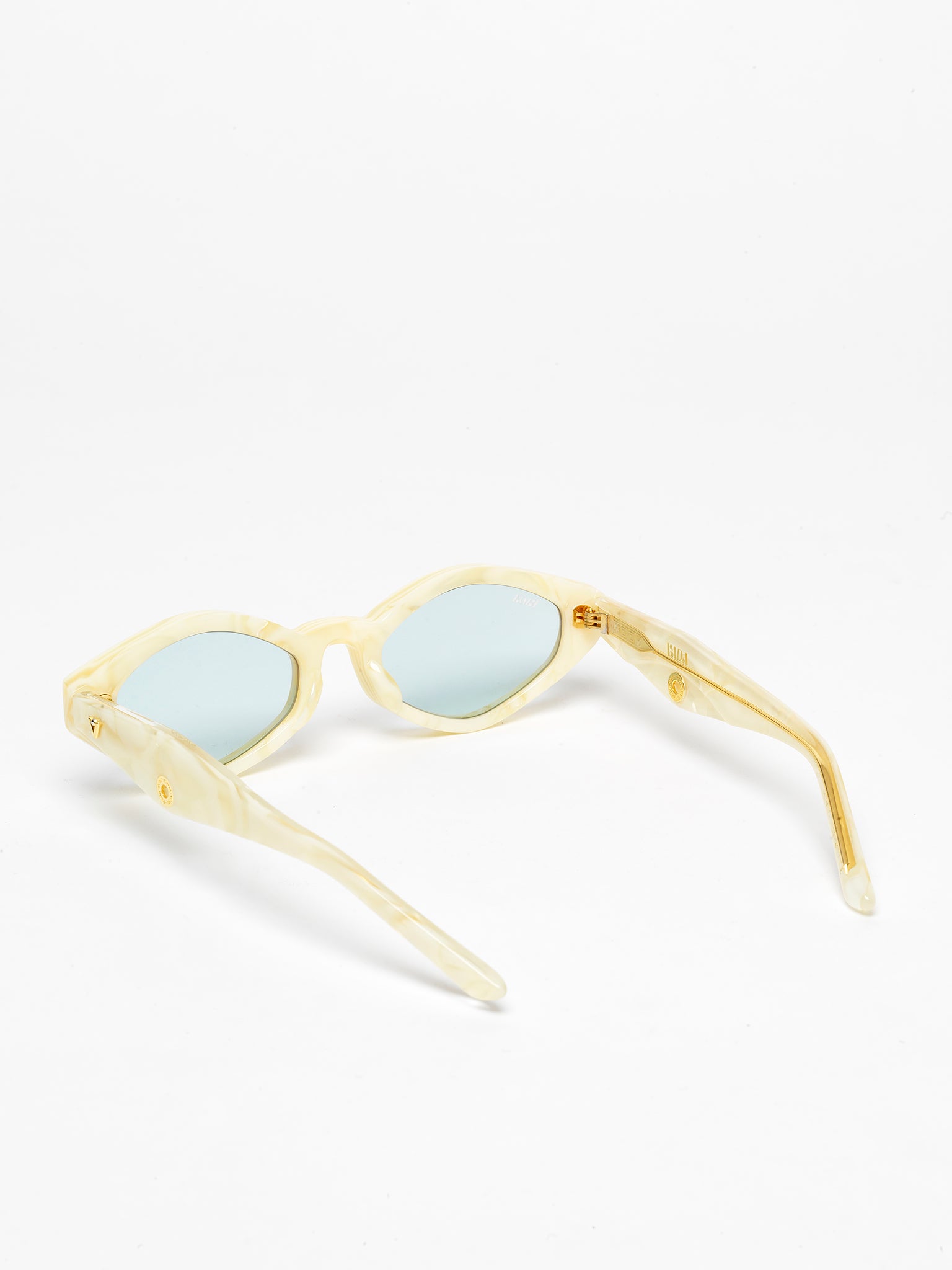 The sunglass features gemstone-inspired shapes, gold-tone details, and rivets designed to hold VADA's gold chain retainers, making this pair eyewear and jewelry at once.