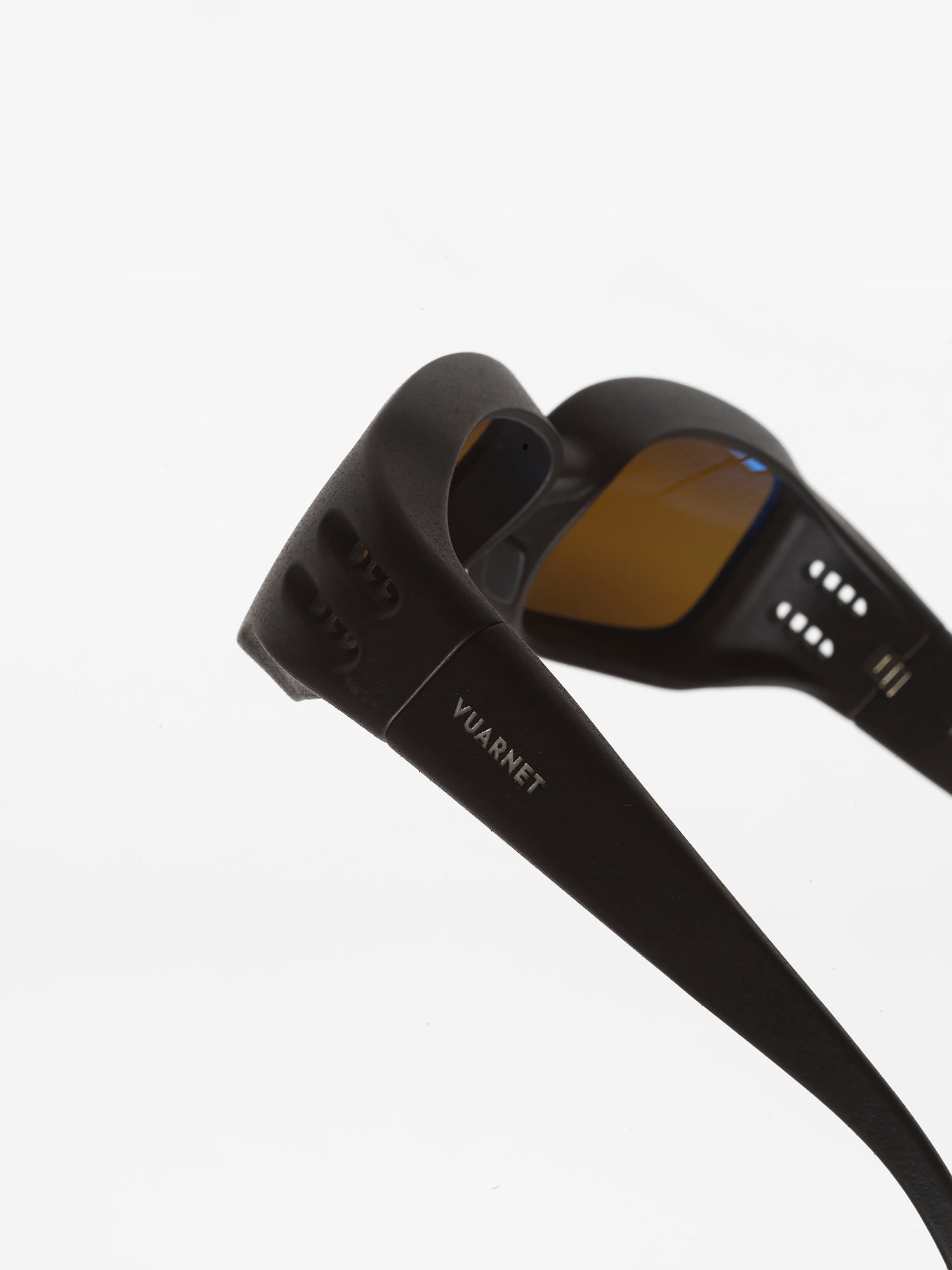 Adventure is developed with state-of-the-art technology. It is manufactured by a 3D printer using a 100% bio-based polymer made from castor oil beans. The 3D printing process only uses the amount of material needed. The eco-friendly Adventure is light, highly durable and with shape memory. Equipped with Vuarnet mineral lenses, 100% natural and recyclable.