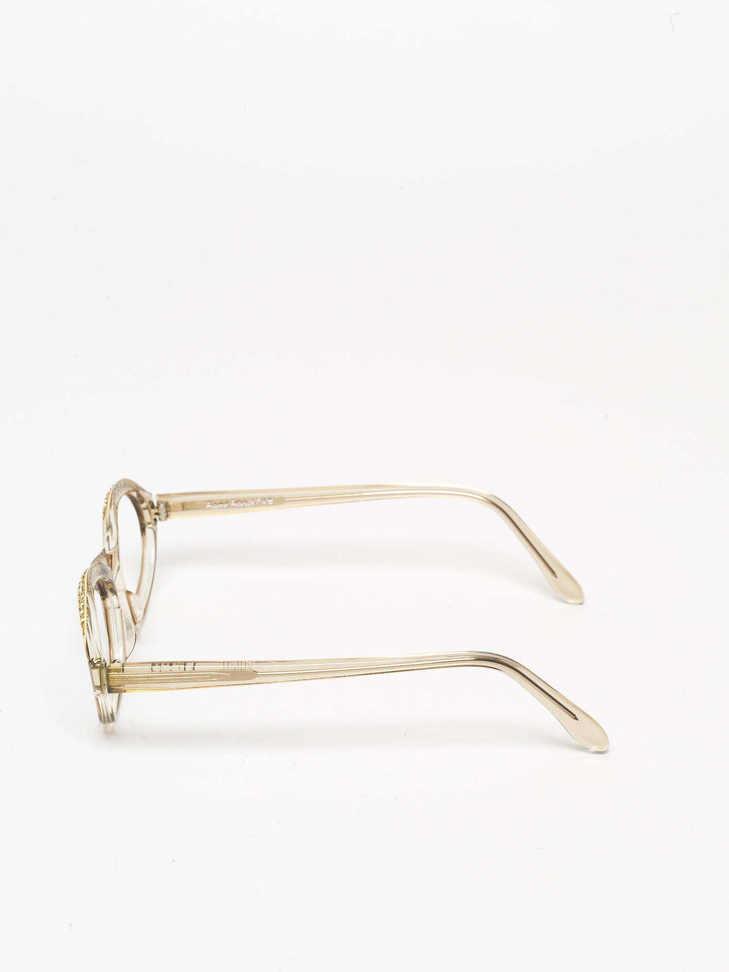 Enchanting oval shape, feminine and with a timeless allure. The high-quality material is embellished with rhinestones and a delicate decoration on the upper part of the frame.