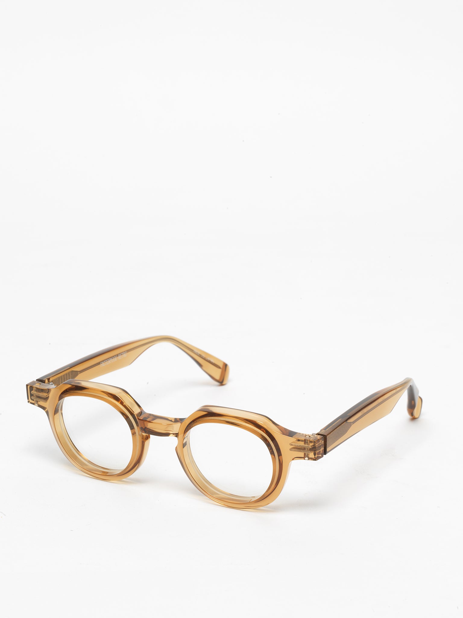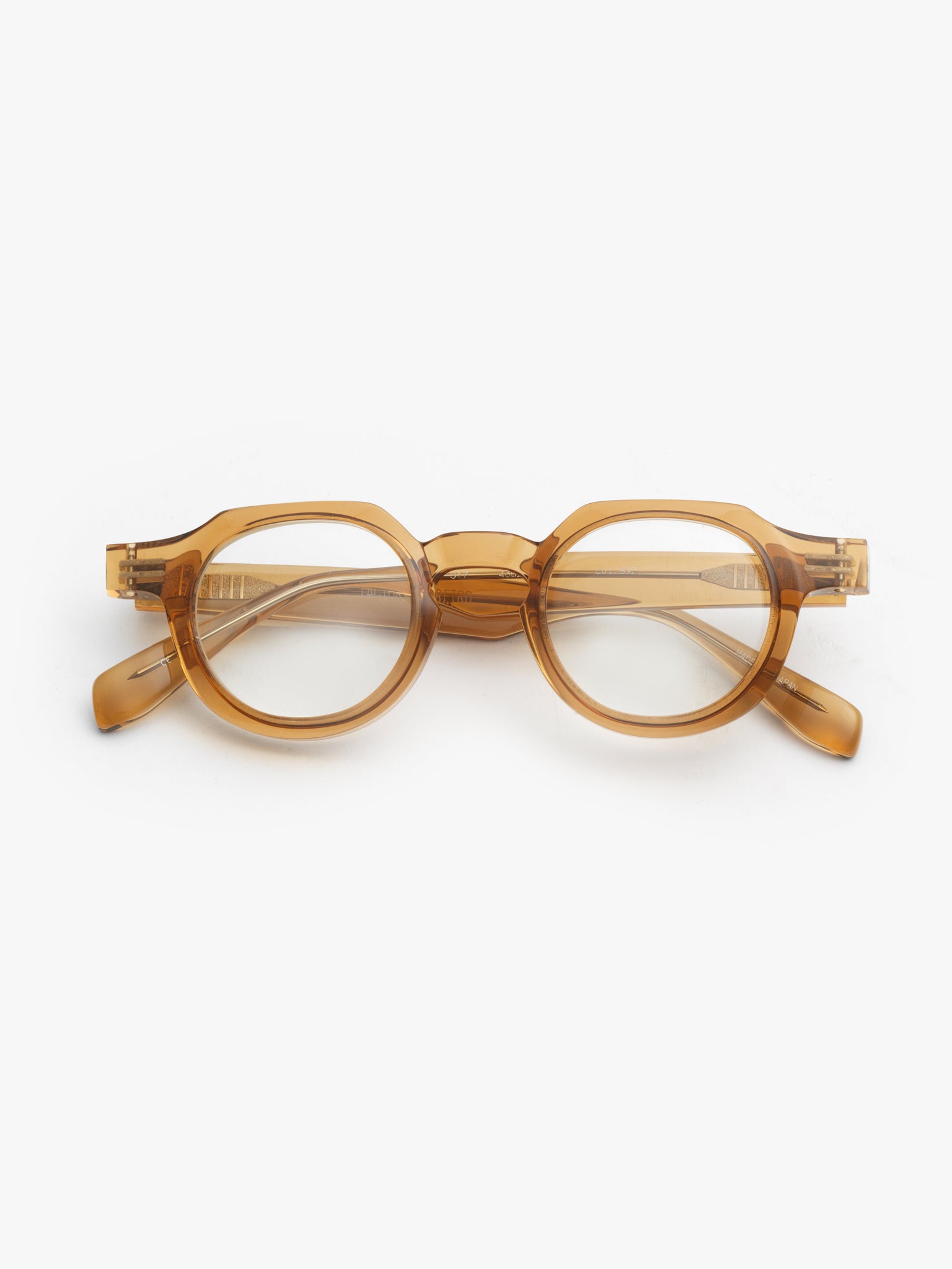 From the Retro Series, an iconic silhouette with balanced proportions, in a shiny transparent amber