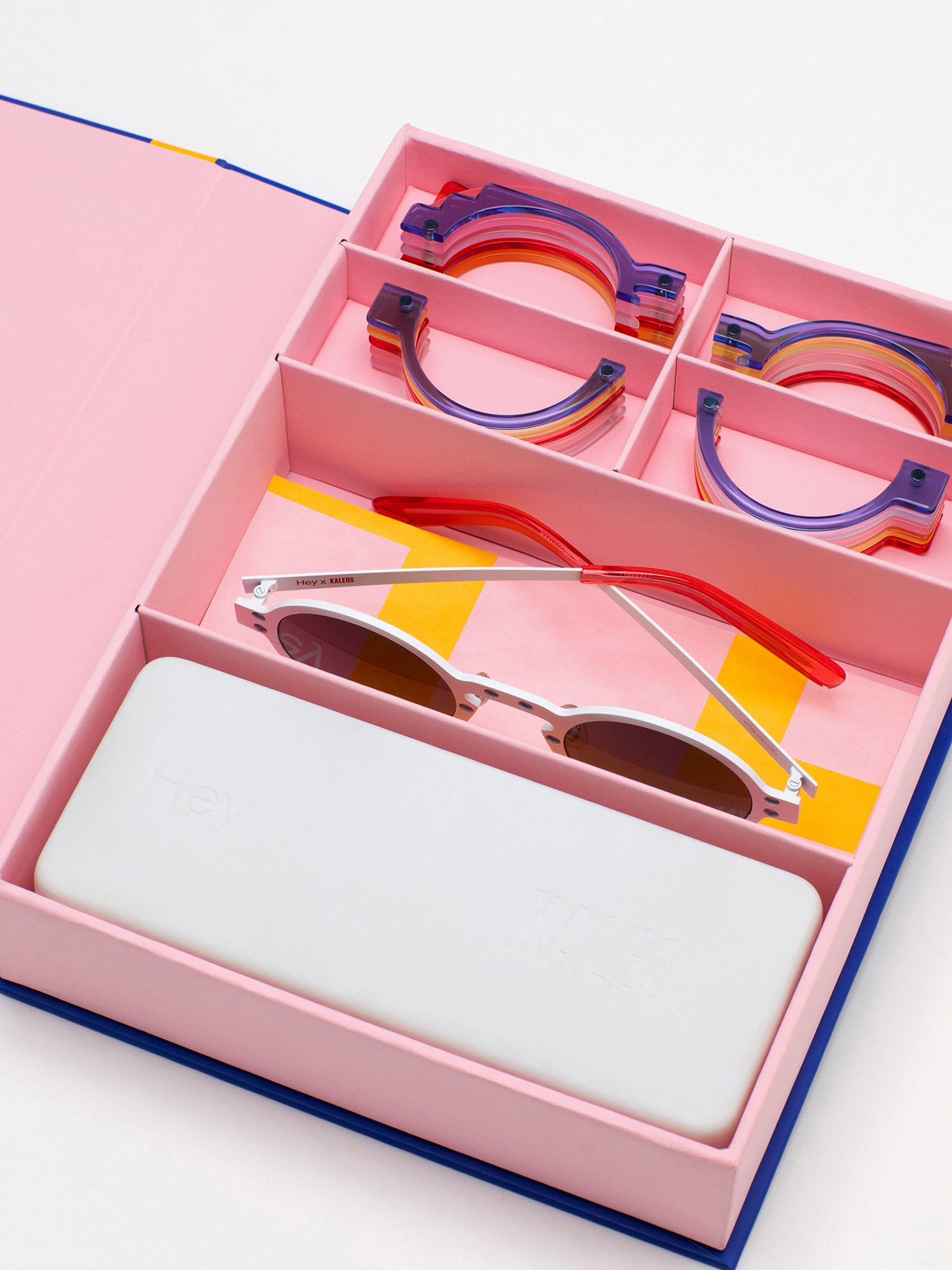 HEY x KALEOS eyewear evokes the playful essence of HEY’s colorful drawings while being technically very complex.